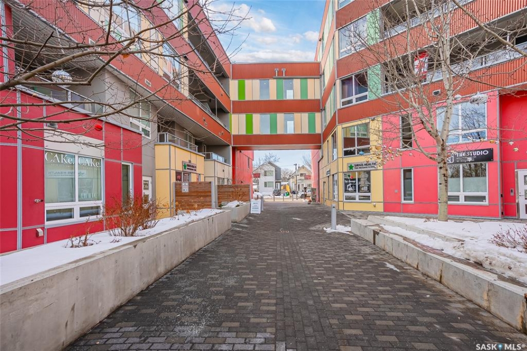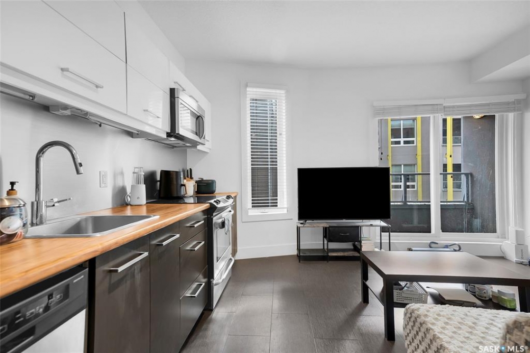 When you buy in The Banks, you're not just purchasing a condo — you're stepping into a lifestyle. A vibrant, walkable, community-driven way of living where minimalism meets convenience, and everything you need is just outside your door. Welcome to #325 – 404 Ave C North. A stylish studio designed for modern living, complete with underground parking and offered at an attractive $199,900. The true magic here is the setting. Step outside into a beautifully designed courtyard surrounded by local coffee shops, farmers' markets, salons, massage studios, and boutique services. Grab your morning latte downstairs, meet friends for an evening drink, or take a short stroll to River Landing and the river trails. This is urban Saskatoon living at its best. Inside, the space is thoughtfully designed to maximize function without sacrificing style. The fully equipped kitchen includes fridge, stove, dishwasher, and microwave hood fan. The multi-functional den with dual sliding doors creates flexibility for a bedroom, office, or guest space. A full four-piece bathroom and in-suite laundry add everyday convenience. Whether you're a first-time buyer embracing a simplified lifestyle, a student wanting walkability, or an investor seeking a high-demand property, this unit checks the boxes. The seller reports zero vacancy and consistent demand — plus there is excellent short-term rental potential. The underground parking stall is the cherry on top, offering safety and comfort year-round, along with a dedicated storage unit. And as an owner, you'll enjoy access to multiple rooftop patios — ideal for relaxing evenings, entertaining friends, or soaking in the city skyline. Students. Investors. First-time buyers. If you've been waiting for an opportunity to live where energy, community, and convenience meet — this is it.