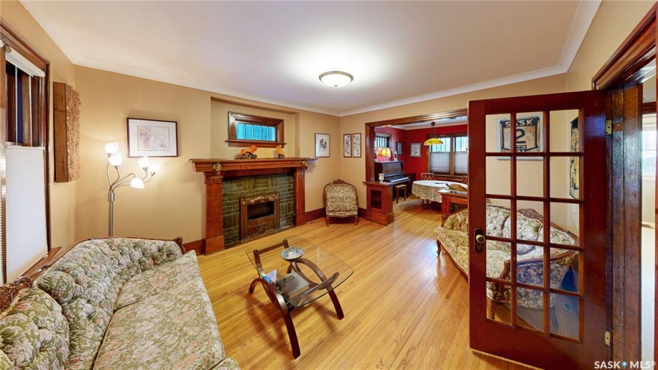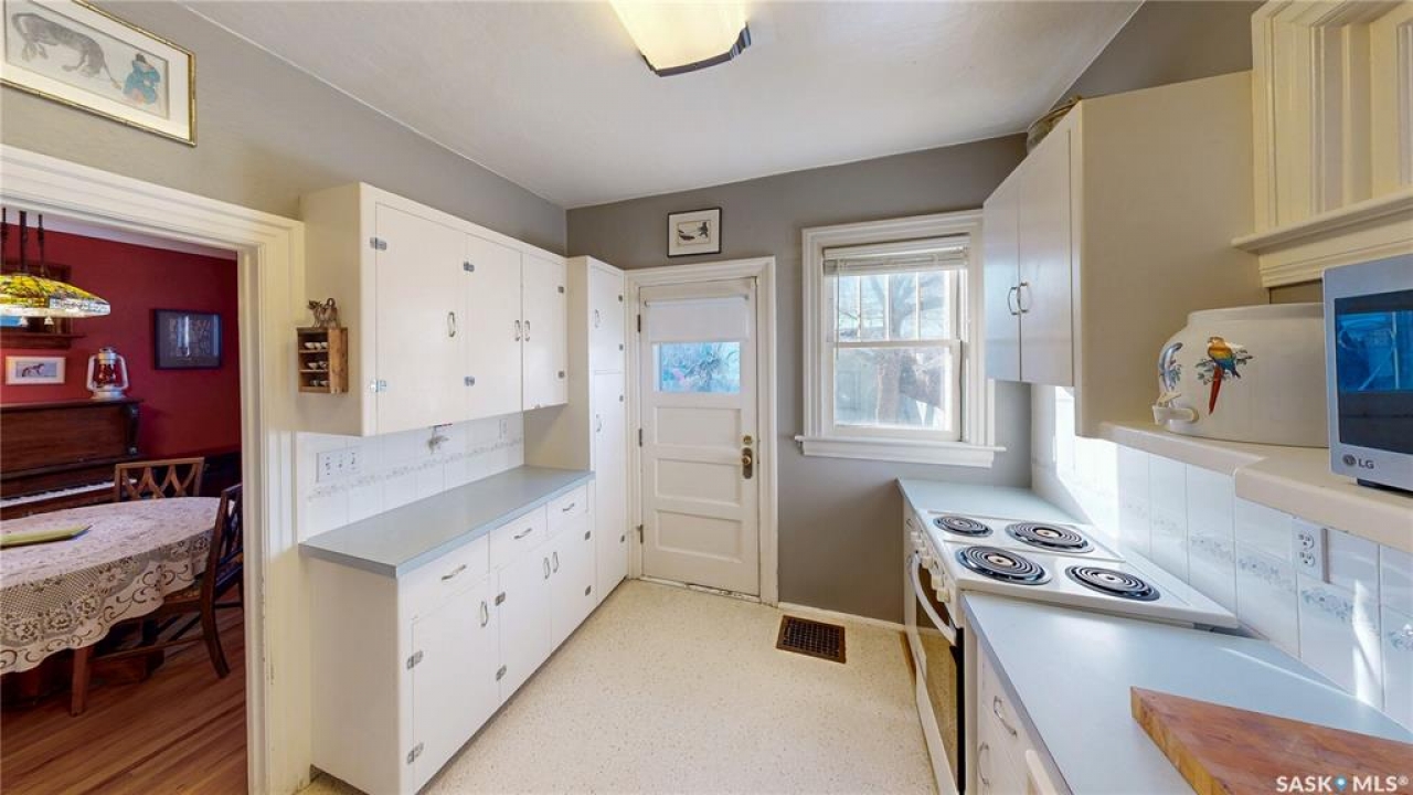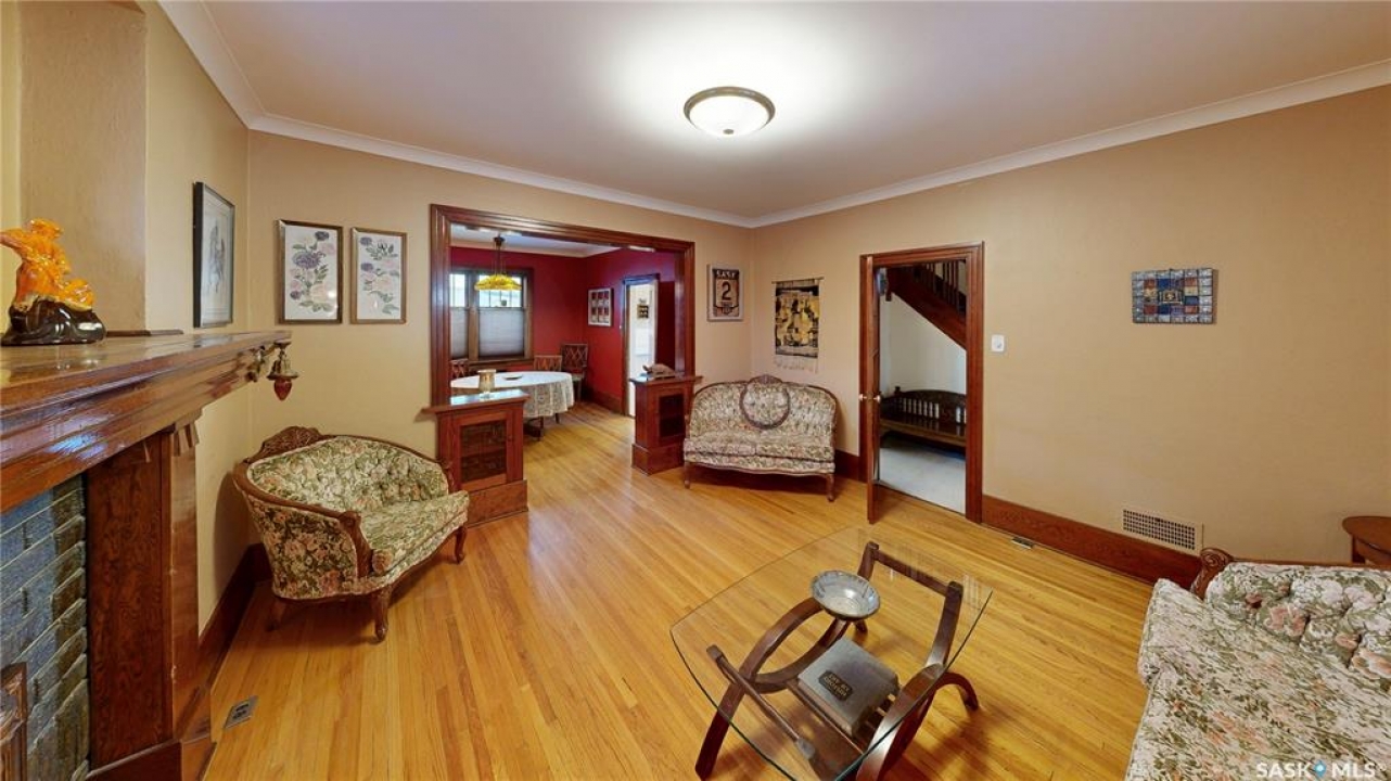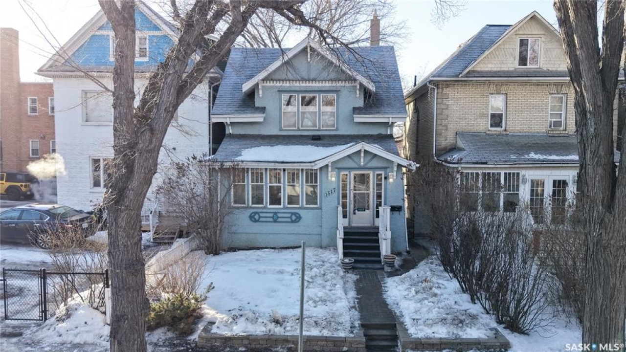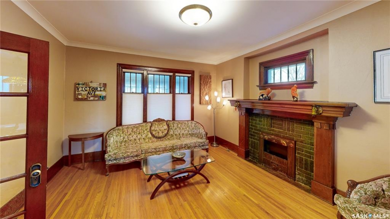 Welcome to 1517 Victoria Avenue in the General Hospital neighborhood area of Regina just minutes from downtown, as well as multiple local restaurants and the General Hospital itself. This 3 bedroom, One and � Storey house was built in 1925 and is 1085 sqft in size and sits on a 3377 sqft lot. The front of the home has landscaping and a brick path to the front door. The fully fenced, south facing backyard has a lawn, patio and garden area. There is also access to the oversized single detached garage which has both 220 V plug-in and a heater. There's also an additional parking pad adjacent to garage. You enter the home into the adorable covered porch. The living room is overflowing with original character with its hardwood floors, crown moulding, built-in cabinetry, classic piano windows and large picture windows with bottom up top down blinds and a decorative fireplace. The dining room has ample space for a table and chairs, and has a vintage, stained glass hanging feature light that enhances the home's historic appeal. The kitchen thoughtfully blends modern convenience with classic style. Something rarely found in homes of this era. It has a plethora of electrical outlets to run every kitchen appliance, a pull out cabinet, pantry space, lots of counter space and the fridge, stove, dishwasher and microwave are all included. Upstairs on the second floor the first stop is a good sized bedroom followed by the larger primary bedroom complete with two closets and crown moulding. There's a 4 piece bathroom with a clawfoot tub followed by the third bedroom. The full basement is unfinished but offers plenty of potential to expand your living space. It features a cold storage room, laundry area with included washer and dryer and the owned furnace. This home also has central air conditioning, an owned alarm system and the water and sewer lines were both replaced last year proving peace of mind for years to come. Some of the vintage furniture is also negotiable!