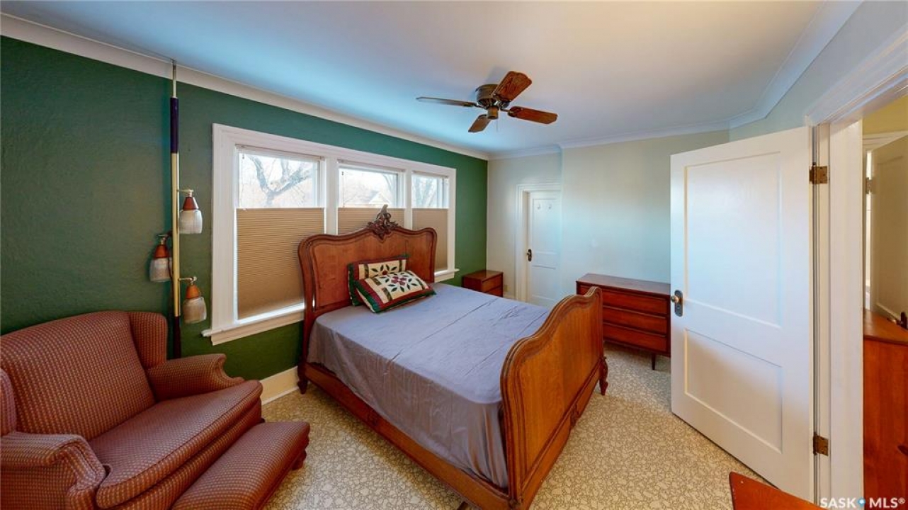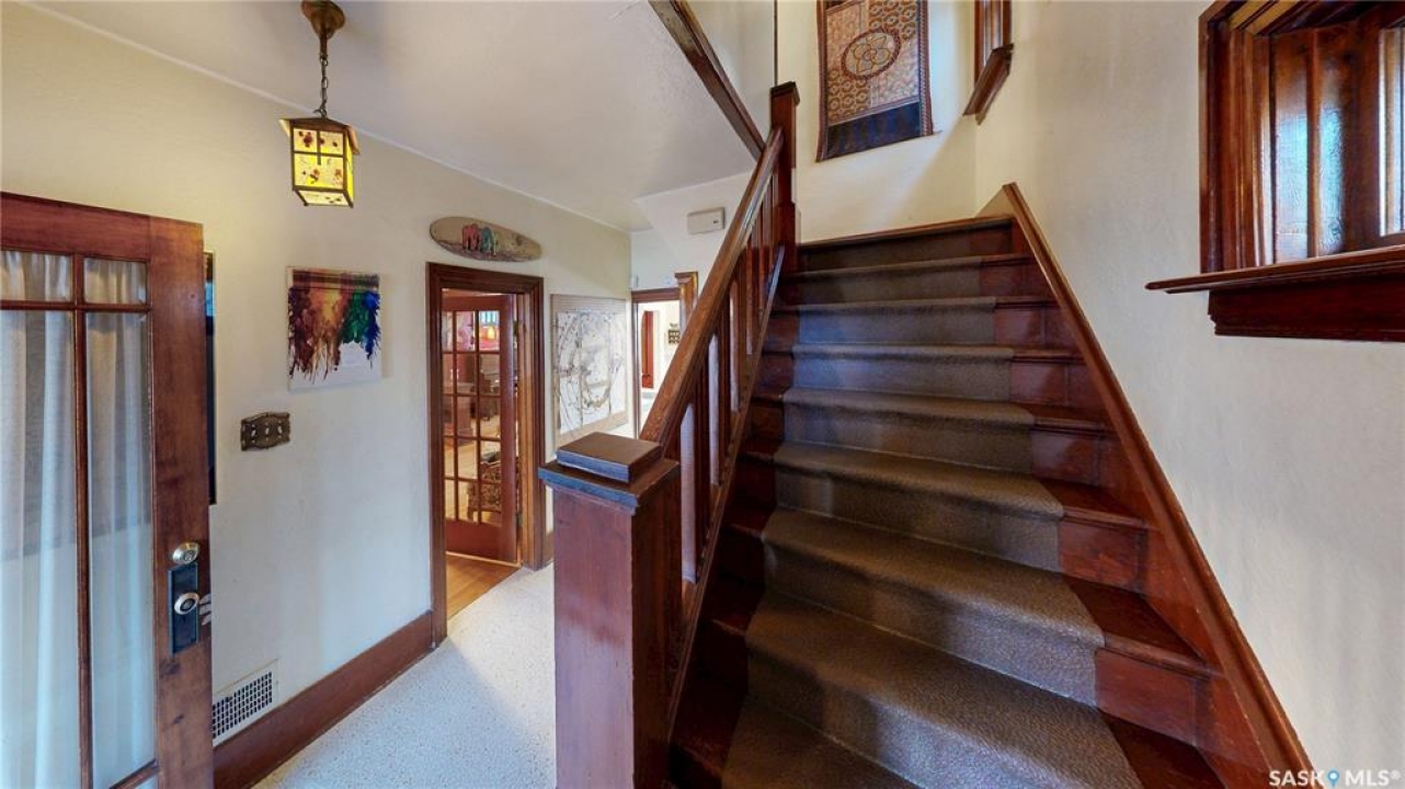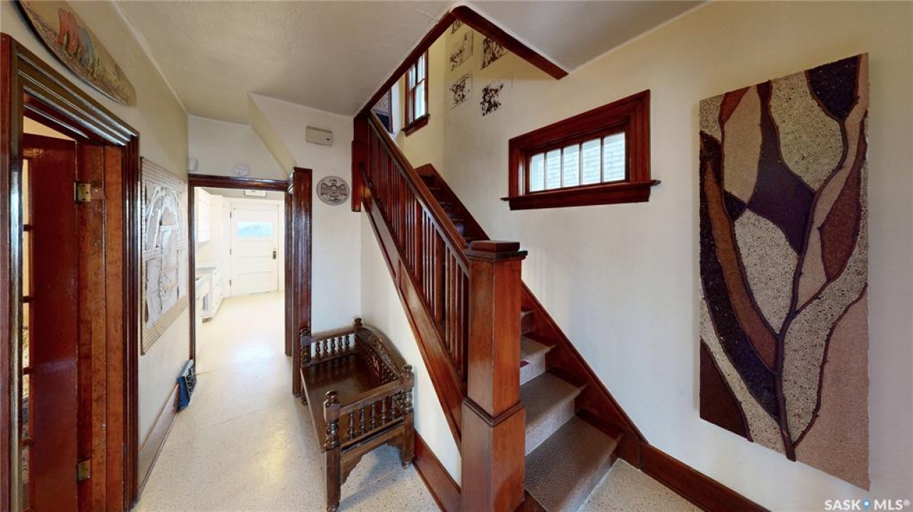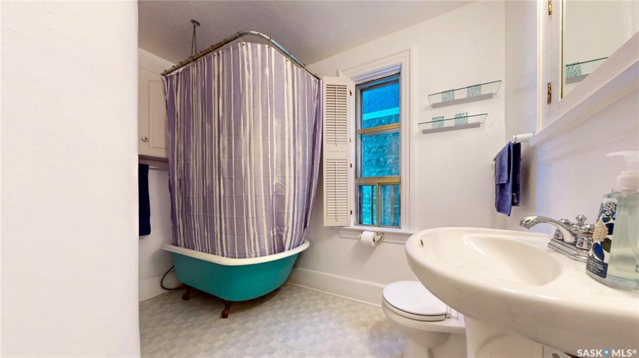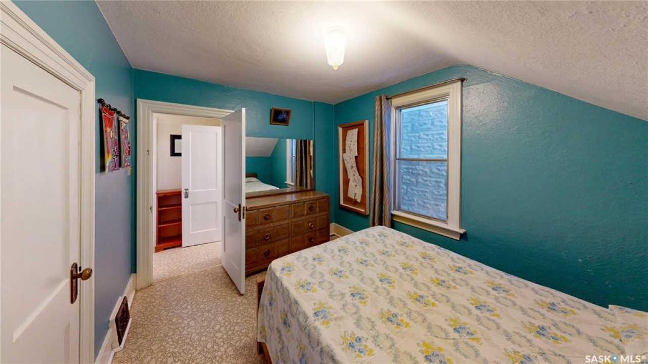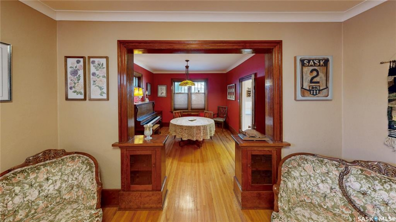 Welcome to 1517 Victoria Avenue in the General Hospital neighborhood area of Regina just minutes from downtown, as well as multiple local restaurants and the General Hospital itself. This 3 bedroom, One and � Storey house was built in 1925 and is 1085 sqft in size and sits on a 3377 sqft lot. The front of the home has landscaping and a brick path to the front door. The fully fenced, south facing backyard has a lawn, patio and garden area. There is also access to the oversized single detached garage which has both 220 V plug-in and a heater. There's also an additional parking pad adjacent to garage. You enter the home into the adorable covered porch. The living room is overflowing with original character with its hardwood floors, crown moulding, built-in cabinetry, classic piano windows and large picture windows with bottom up top down blinds and a decorative fireplace. The dining room has ample space for a table and chairs, and has a vintage, stained glass hanging feature light that enhances the home's historic appeal. The kitchen thoughtfully blends modern convenience with classic style. Something rarely found in homes of this era. It has a plethora of electrical outlets to run every kitchen appliance, a pull out cabinet, pantry space, lots of counter space and the fridge, stove, dishwasher and microwave are all included. Upstairs on the second floor the first stop is a good sized bedroom followed by the larger primary bedroom complete with two closets and crown moulding. There's a 4 piece bathroom with a clawfoot tub followed by the third bedroom. The full basement is unfinished but offers plenty of potential to expand your living space. It features a cold storage room, laundry area with included washer and dryer and the owned furnace. This home also has central air conditioning, an owned alarm system and the water and sewer lines were both replaced last year proving peace of mind for years to come. Some of the vintage furniture is also negotiable!