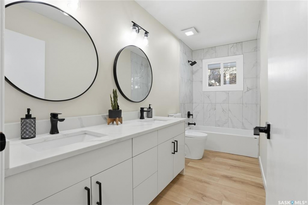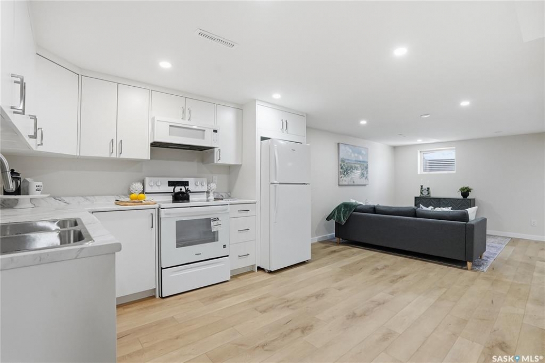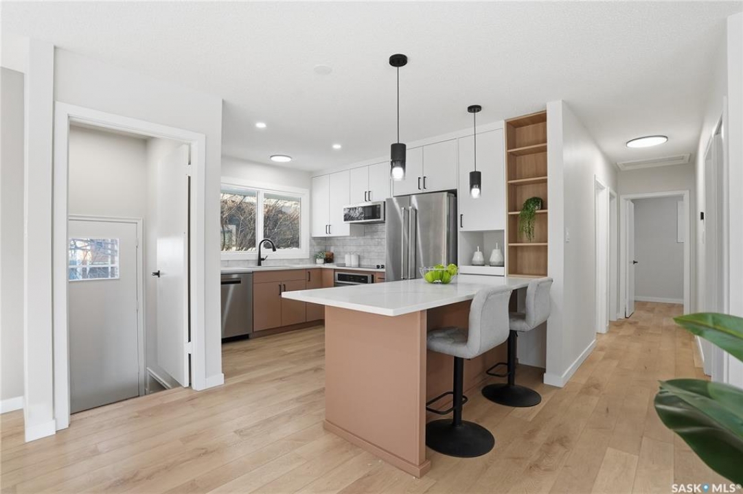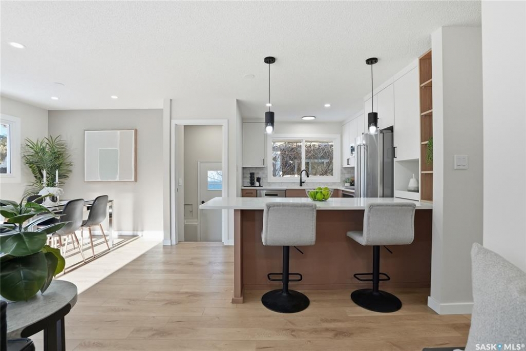 Extensively and professionally renovated, this stunning Brevoort Park home is truly move-in ready. Set in one of Saskatoon's most sought-after neighbourhoods, you'll love the convenience of being close to schools, parks, Circle Drive, and the amenities of 8th Street. The main floor offers a bright, open, and functional layout featuring three generous bedrooms, a stylish and practical kitchen, and a beautifully sunlit living room that flows seamlessly into a spacious dining area. A modern five-piece bathroom completes this level. With a separate entrance, the lower level offers excellent flexibility and revenue potential. The thoughtfully designed non-conforming suite is ideal for extended family, a nanny suite, rental income, or Airbnb. It includes a brand-new kitchen, comfortable living and dining space, two bedrooms (one bedroom window may not meet current egress requirements), a three-piece bathroom, and a dedicated laundry area. A separate laundry and mechanical room serve the main floor. Upgrades are extensive and include: new flooring throughout, windows, furnace, central air conditioning, appliances (one set of laundry currently in use), bathrooms, paint, trim and baseboards, exterior paint, and new electrical and plumbing fixtures. Outside, enjoy a fully fenced yard complete with a fire-pit area and storage shed. The property also offers a three-car driveway, carport, rear alley access, and ample space to build a future double garage. A beautifully updated home in an exceptional location — perfect for families, investors, or those looking for flexible living options.