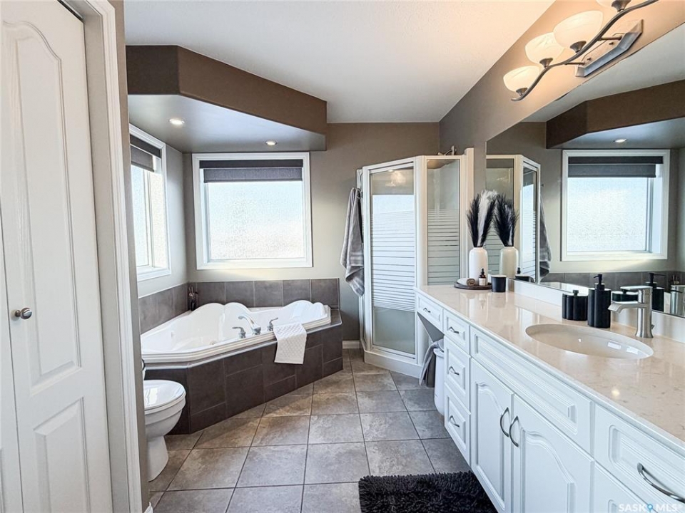 Welcome to 3 Bridger Drive! This spacious bi-level built in 2003 has 1669 sq ft plus a fully developed basement. This one owner property has seen several recent updates such as kitchen and bathroom Quartz countertops, kitchen backsplash, upgraded appliances, shingles (2023), water heater (2022), along with the addition of the Artic Spa hot tub and gazebo in 2021 just to name a few. Main level is spacious open concept with beautiful hardwood and tile flooring. All bedrooms have new carpets (2023) Primary bedroom has his and her closets and a dream ensuite with Jacuzzi tub. Main floor laundry is always a bonus! The large foyer offers plenty of closet space and access to the double attached garage. Lower level consists of a cozy family room with gas fireplace, office space, 4th bedroom, a full bathroom, a large games area that can serve as a personal gym or playroom, storage room and the utility room. Outside you will find a perfectly manicured backyard with tiered decks, hot tub with gazebo & shed for additional storage. House is equipped with A/C, central vac, air exchanger, underground sprinklers and custom window coverings. If you are looking for an immaculate move in ready home in a great neighborhood don't hesitate on this one!