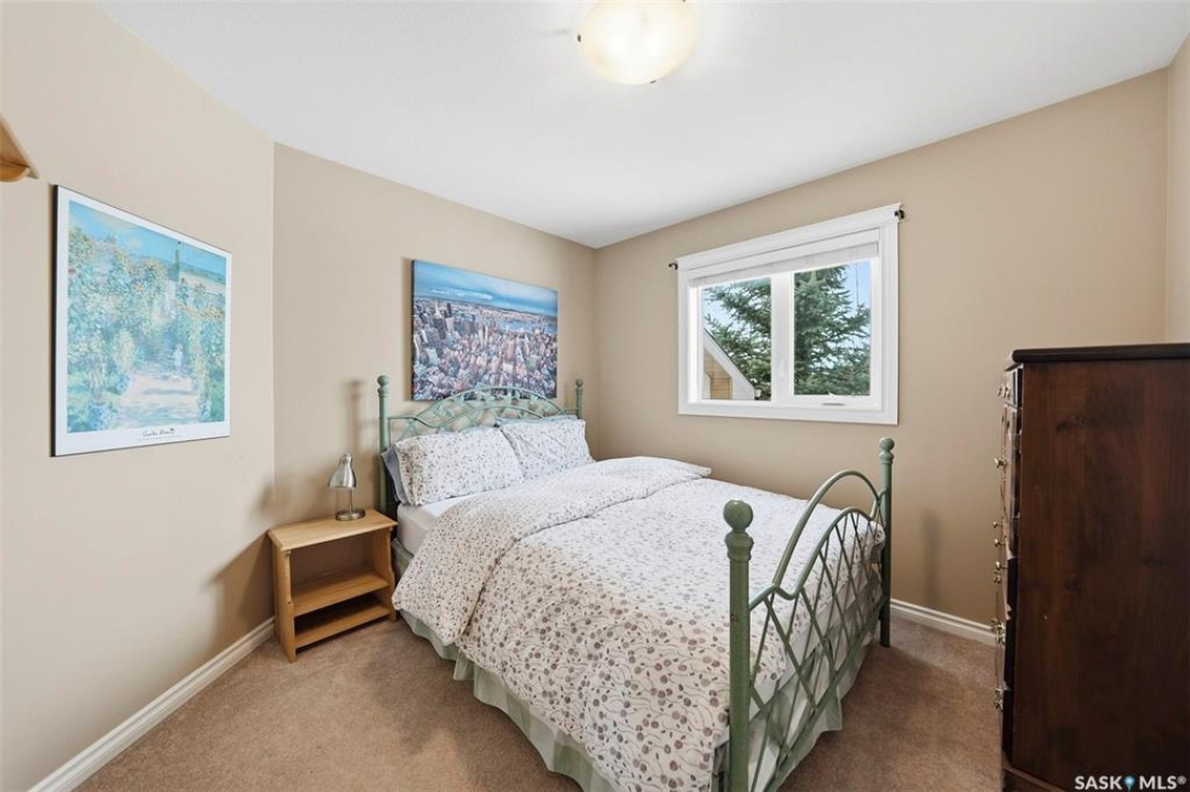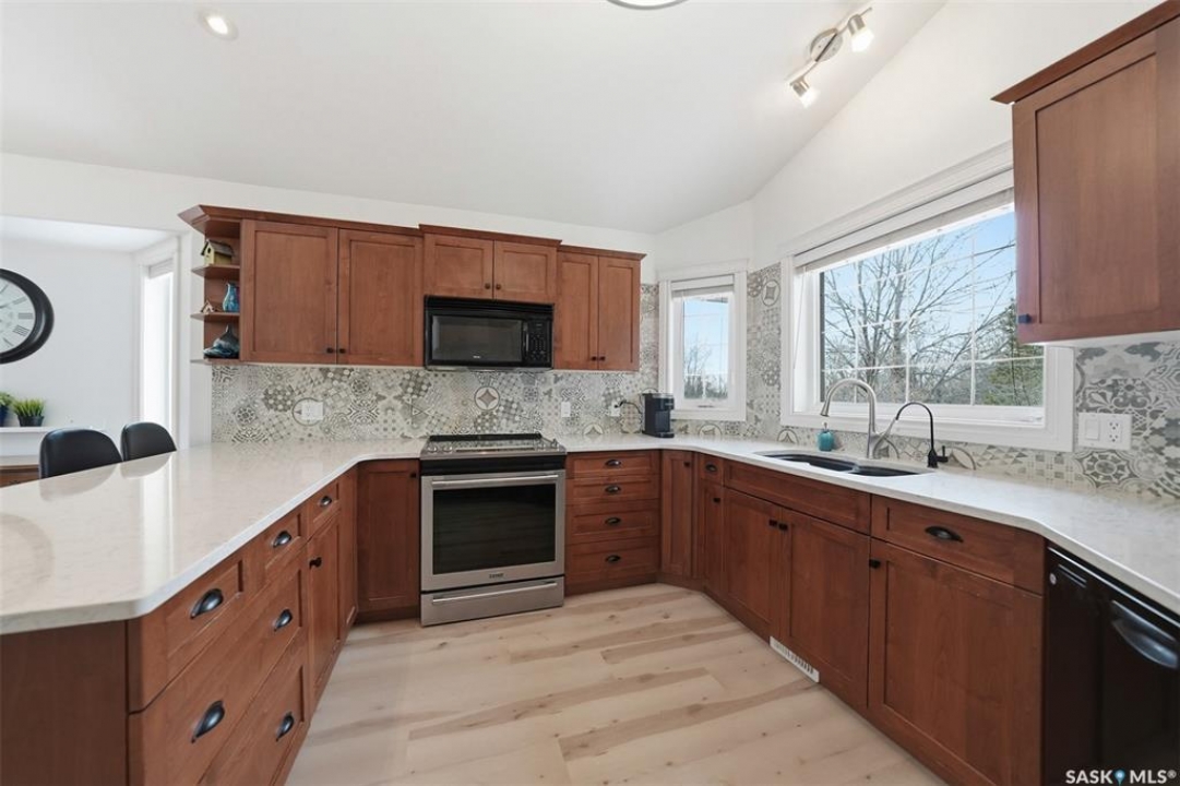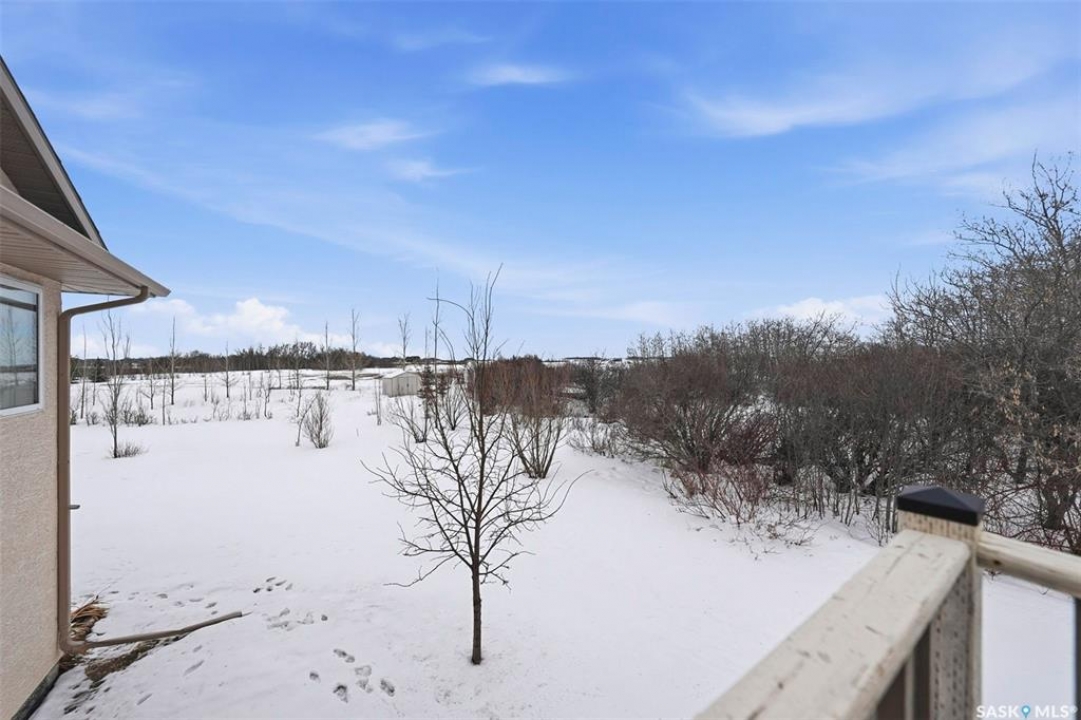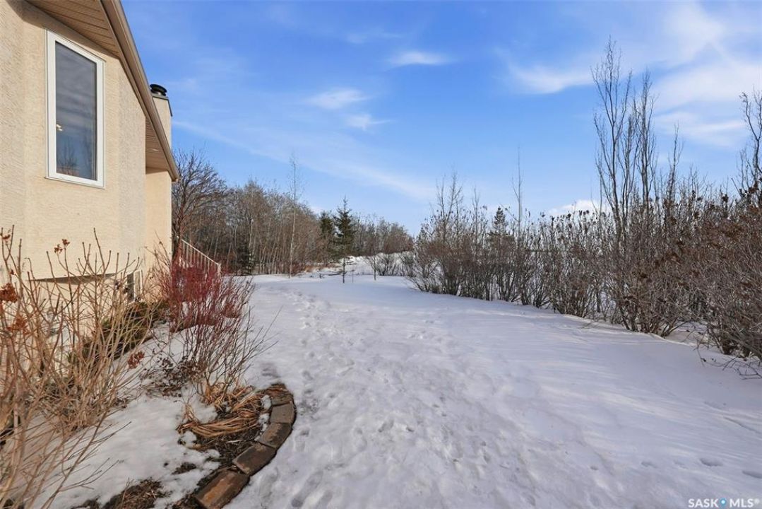 Rare opportunity to own a 14-acre acreage just 10 minutes from Saskatoon city limits. The perfect blend of privacy, efficiency, low utility costs and future potential. Built in 2005 by Ehrenburg, this quality home offers nearly 2,400 sq ft of fully finished well laid out living space. The layout is functional and inviting, with loads of natural light & numerous recent upgrades including new shingles (2023), professionally renovated bathroom (2021), updated flooring (2021), and a patio stone paved driveway. If vaulted ceilings, custom Alder wood cabinets, quartz countertops and countless other special touches don't do it for you, then surely the warm wood burning fireplace in the family room will. Operating costs here are exceptionally low thanks to the geothermal heating system. With healthy potable well water (reverse osmosis in place) and utilities limited to electricity only, this property offers highly efficient and predictable monthly expenses that are in uncharted territory for savings. The septic system is liquid discharge — considered best-case for rural properties — providing simple, low-maintenance operation with no anticipated future complications. Outside, enjoy a mature, established yard site with space to expand, develop, or simply enjoy the peace and quiet of acreage living under open Saskatchewan skies. This acreage is not inside a subdivision so there are no excessive building restrictions, architectural controls or animal restrictions. This property is a beautiful canvas that can be enjoyed today but could easily be transformed into a horse lover's dream. Opportunities this close to Saskatoon don't come up often - especially on 14 acres with a high a quality home, energy efficiency, a beautiful well treed and private yard with subdivision potential. Not to mention it's a paved commute to Saskatoon with very little gravel to your front door. Contact your favourite realtor today for an exclusive showing!