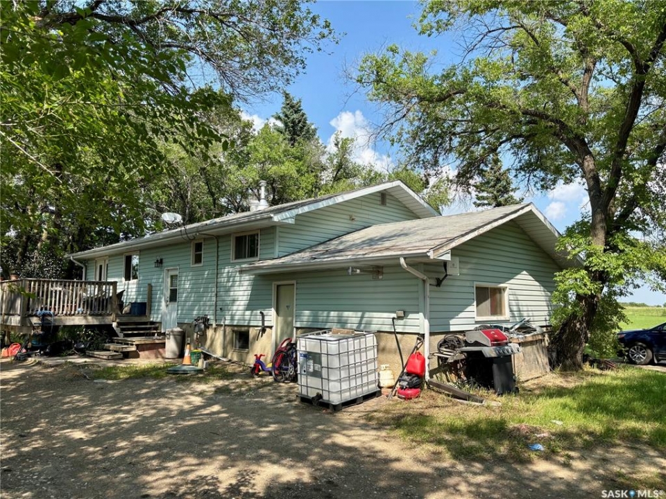 NEW LOW PRICE!! Affordable Acreage living calls! Great opportunity in a prime location. Nice 3+1 Bedroom Raised bungalow just 7 minutes from town south on Highway 7 and adjacent to popular Sitina Estates!. Nice raised bungalow, new Vinyl plank in Kitchen being installed. Lots of potential for upgrades. Great yard setting with Shelter belt, Firepit, mature trees, and west facing deck. Good L-shaped layout with laminate floor, large main bath with jetted tub. White Heritage Kitchen, nice Eating area with Garden doors to deck. Basement offers loads of potential with family room, Bedroom, and direct access to finished and heated oversized single attached garage. Septic tank and holding tank for water. Build equity and your future with this great acreage! Call today!