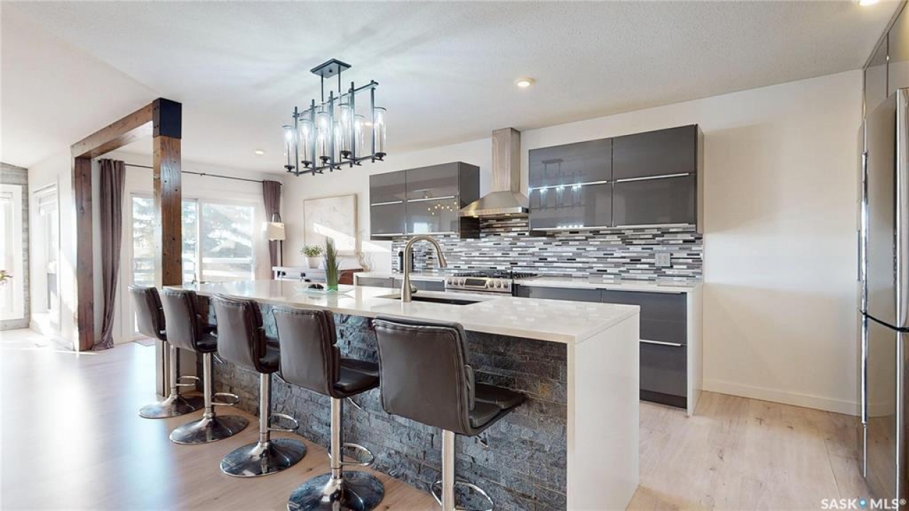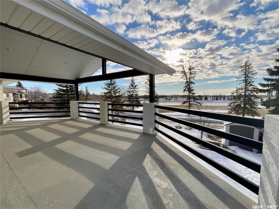 Welcome to this stunning executive home located in the prestigious Westhill neighborhood of Regina. Perfectly positioned to back onto the Goulet Golf Course, this property offers elegance, comfort, and breathtaking views in every direction. Step inside to a bright, open floor plan designed for modern living and effortless entertaining. The kitchen, dining, and living spaces flow seamlessly together, highlighted by wood beams, glass railings, and large windows that capture the beauty of the golf course beyond. The kitchen is as functional as it is stylish, with plenty of workspace and direct access to the expansive back deck — perfect for morning coffee or evening sunsets. The master retreat is truly exceptional — featuring a spacious sitting area, private access to the deck, and a lavish 5-piece ensuite complete with a soaker tub. The expansive walk-in closet provides ample storage and organization for a truly luxurious experience. The main floor is complete with a second bedroom. The fully developed walkout basement offers the ultimate in recreation and relaxation. Enjoy a large games area, stylish wet bar, cozy rec room, and one bedroom and a den — ideal for guests or family. The basement is complete with a sunroom, that can be used for every season. A well-appointed bathroom completes this versatile space, with direct access to the backyard. The outdoor spaces have been thoughtfully designed to make the most of the serene golf course setting. The yard offers privacy, space, and impeccable landscaping, creating a tranquil oasis for entertaining or unwinding in style. This is a must see home to be truly appreciated.