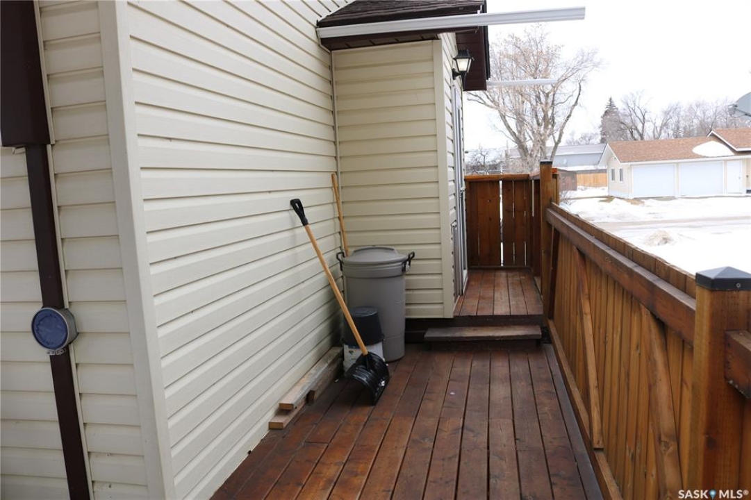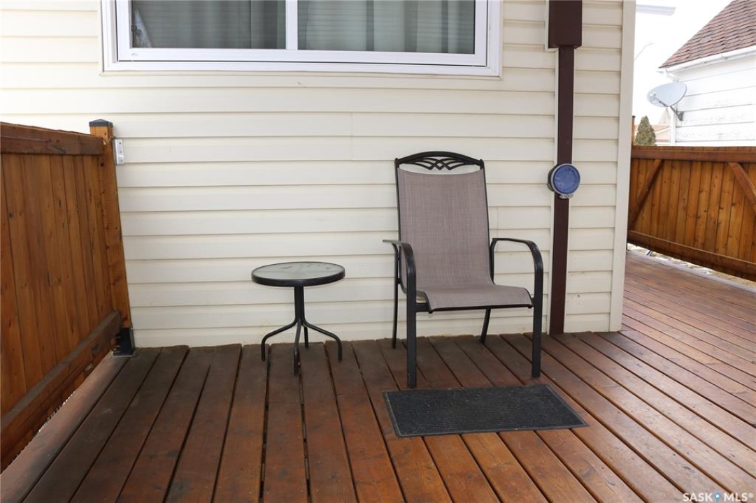 Outdoor: Deck, Fenced, Trees/shrubs