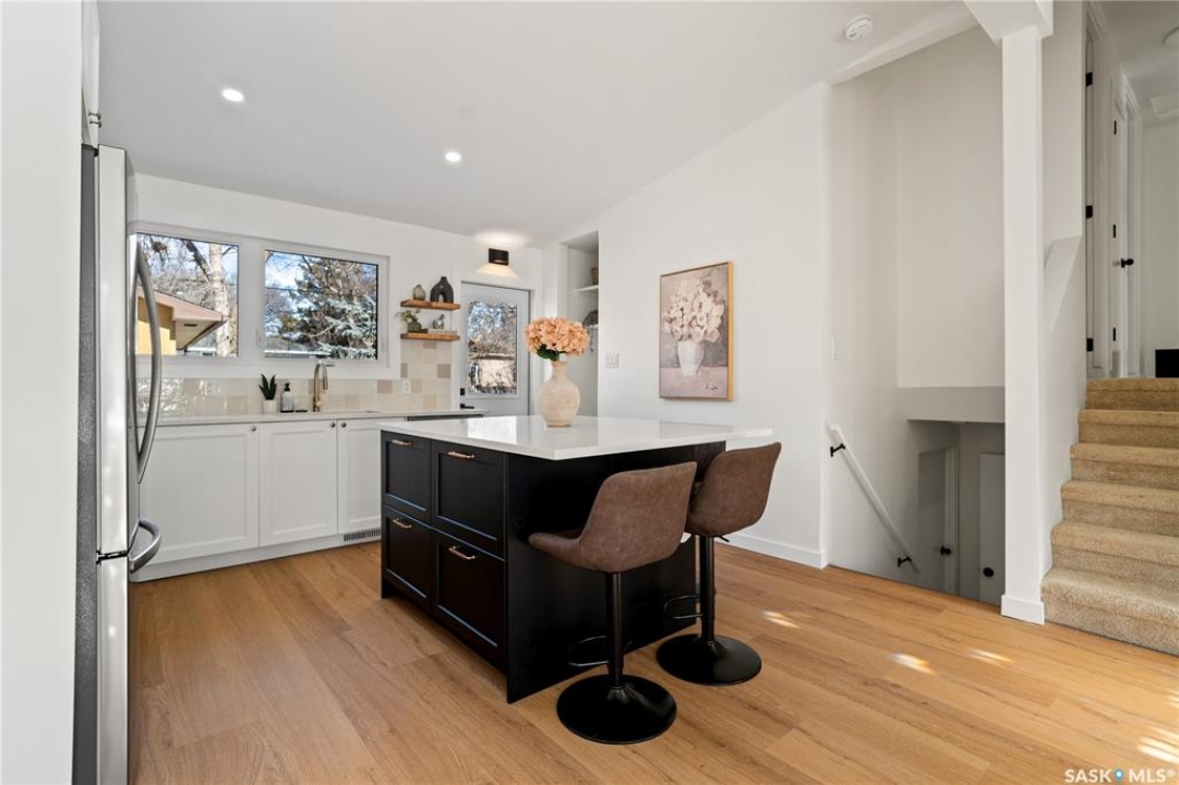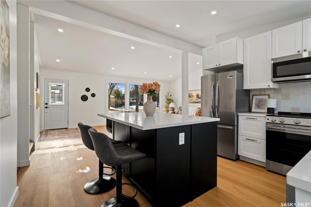 Welcome to 2832 Grant Road — a beautiful, completely renovated home in the heart of desirable Whitmore Park. Offering over 1,600 sq ft of living space, this 4-bedroom, 2-bathroom home has been completely updated from top to bottom and is truly move-in ready. You'll appreciate the beautiful updates throughout the home, but you can also have peace of mind knowing this house is rock solid, with basement bracing completed and new triple pane windows throughout. Stepping inside, you're greeted with vaulted ceilings and a sun-drenched, open concept living space that flows into the beautifully updated kitchen, featuring brand new appliances and a large quartz countertop island with seating that is perfect for entertaining. Upstairs, the spacious primary bedroom includes a convenient 2-piece ensuite — a rare and valuable feature in this area — along with 2 additional bedrooms and the tastefully updated full bathroom. Downstairs, you've got options! This space could work as a fourth bedroom, additional living area, home office, play area or workout space. You've also got incredible storage available in the clean and dry crawl space. Outside, you've got great yard space front and back and an oversized (20' x 30') double detached garage which has room for vehicles, storage and a workshop or garage gym.