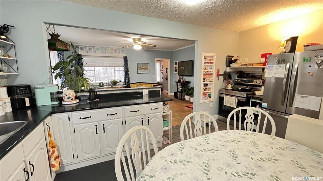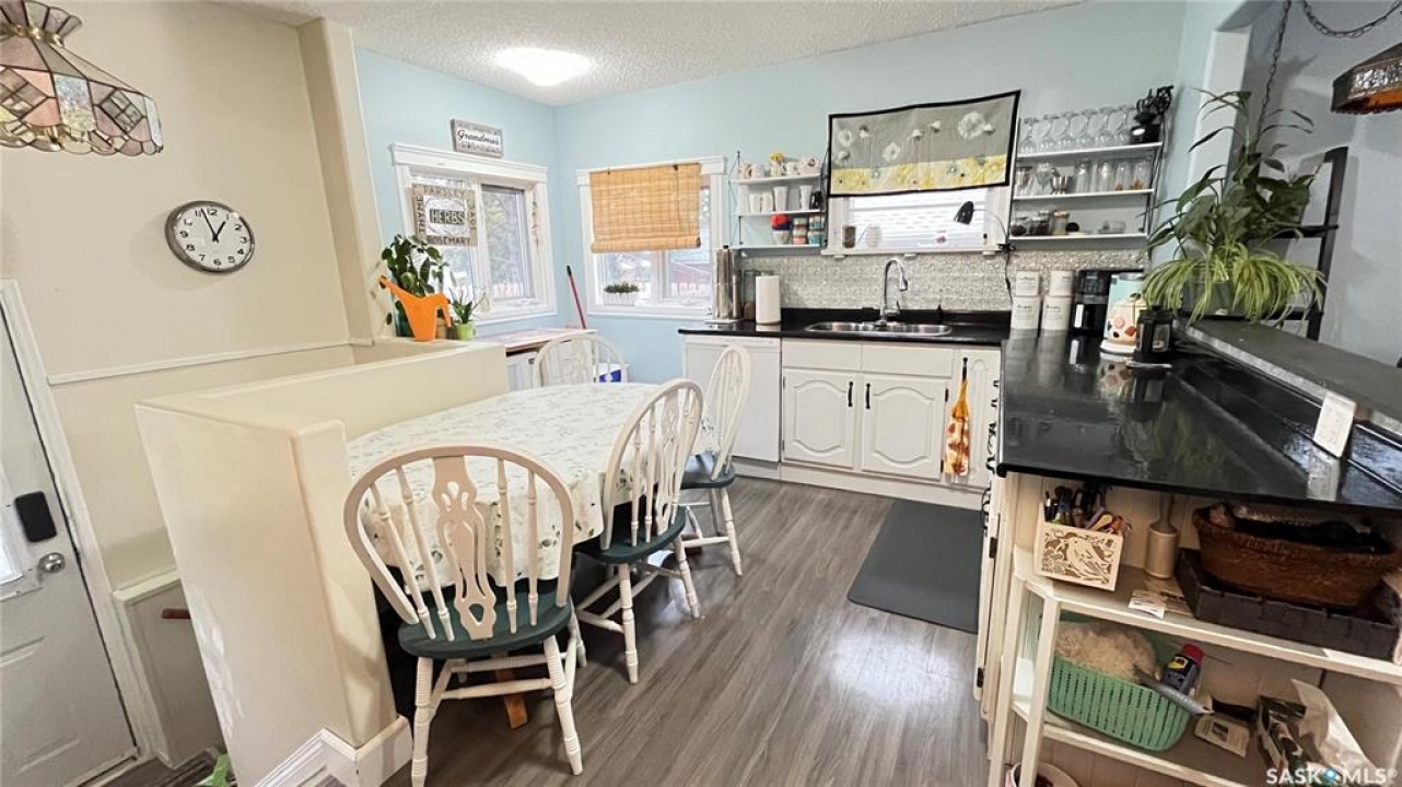 Discover the vintage charm of this beautifully upgraded 1940's home, now fully modernized to meet today's standards. Previously an AirBnB wiring and plumbing are upgraded to today's code. The metal roof and new hot water tank (2024) and furnace (2019) offer peace of mind. Featuring two spacious bedrooms on the main floor and a third in the finished basement, this property offers versatile living options for families or guests. Enjoy two comfortable living room spaces, with the flexibility to add a second bathroom downstairs for added convenience. The garage has been thoughtfully divided, providing a single car space and a cozy gathering area complete with a wood burning stove—perfect for relaxing with friends or family. Situated on a generous corner lot just steps from local schools, this affordable, move-in ready home combines classic character with contemporary comfort. Don't miss your chance to own a unique property in a welcoming neighbourhood.