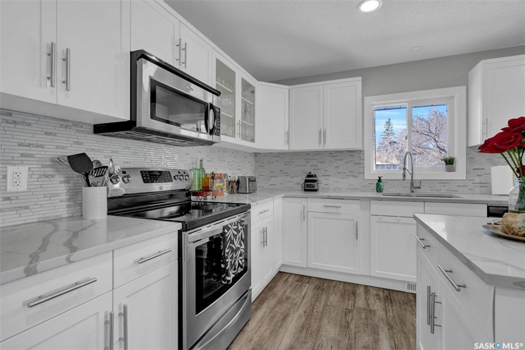 Lovely renovated 1300 plus square foot open concept bungalow located on a corner lot in the desirable neighbourhood of Lakeview. A short walk to Hill Ave shops, Lakeview Par 3 golf course, elementary schools, parks, and close to all south end amenities. This beautiful home is fully developed and offers neutral finishings throughout. Main floor features a gorgeous living room space that includes a gas fireplace, fabulous bright kitchen with an abundance of cupboards, center island and separate eating bar, and a corner pantry. Kitchen/ living and dining area offer a perfect space to entertain family and friends. Primary bedroom includes a walk through closet and a bonus 3 piece en-suite. Two additional bedrooms and a 4 piece bath complete the main level. Basement is developed with a rec room, 2 additional bedrooms/dens (windows do not meet current egress), a 3 piece bath, and a spacious laundry/utility/storage room. Beautiful mature yard is fully landscaped and a great place to enjoy a warm summer evening! Added bonus is the single attached garage. This home is move in ready and a true pleasure to show.