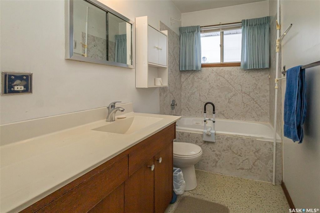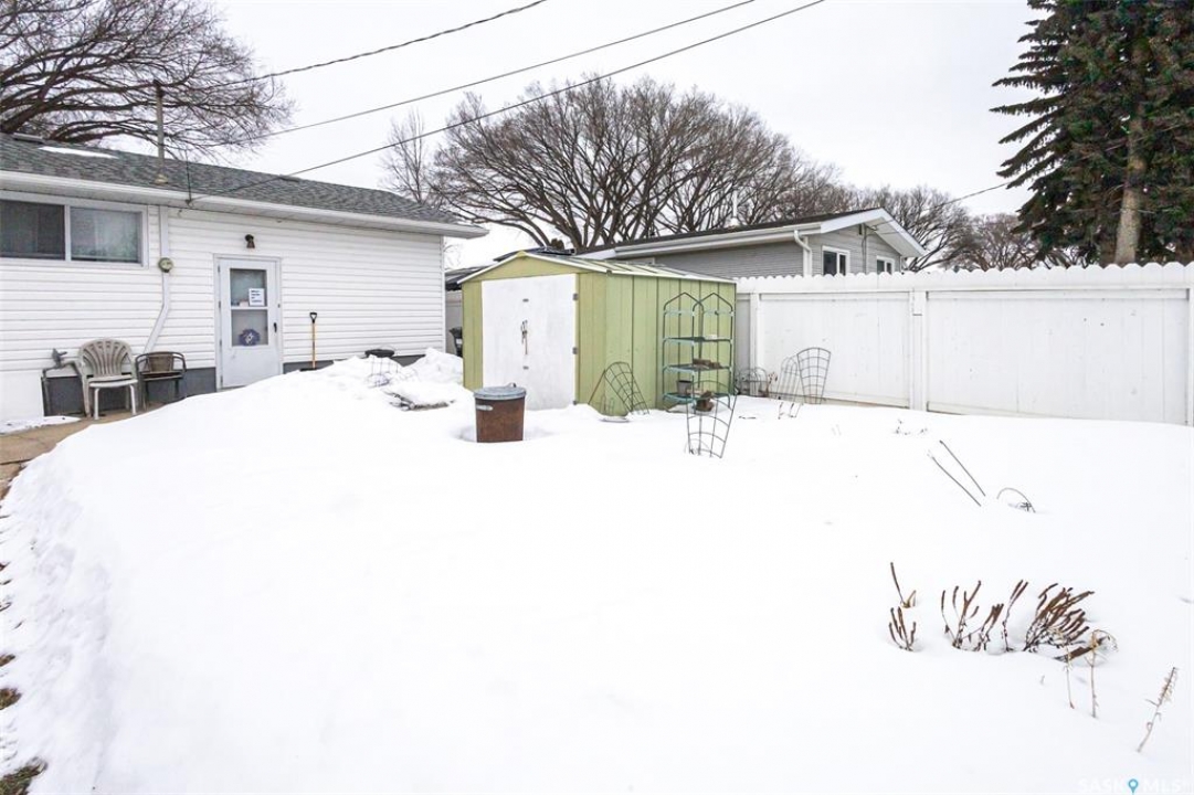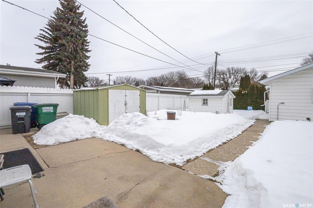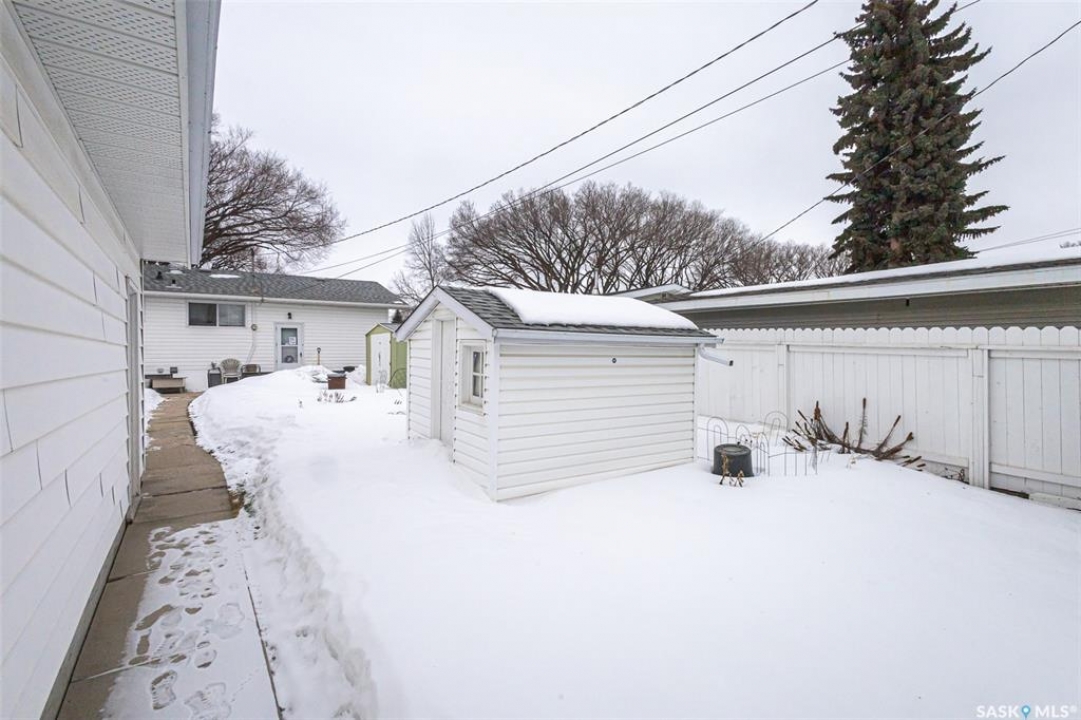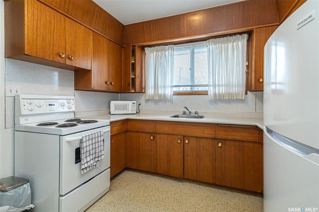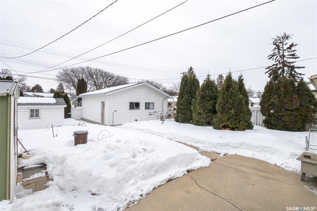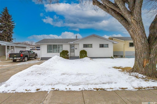 Welcome to 318 Montreal Avenue North, a solid, original owner 1,046 sq. ft. bungalow situated on a spacious 50' x 125' double lot in the heart of Mount Royal. This 5-bedroom, 2-bathroom home has been cared for by the same family since it was built and offers a practical layout with plenty of outdoor space. The main floor features three bedrooms, including two rooms that showcase original hardwood flooring. The kitchen and bathrooms are finished with durable linoleum for easy maintenance, while the fully developed basement provides additional living area with two more bedrooms and a second bathroom. Key maintenance updates include a new furnace in 2010 and shingles replaced in 2016. All essential appliances are included: fridge, stove, washer, dryer, microwave, and freezer, along with all window coverings. The property boasts a beautifully landscaped backyard with two storage sheds and a 22' x 26' insulated double detached garage with alley access. Additionally, a front concrete driveway provides convenient off-street parking. Perfectly positioned for a family, this home is located just down the street from Estey and St Gerard schools and only steps away from the green space at Sifton Park. Don't miss out on this well-maintained Mount Royal bungalow—schedule your private viewing today!