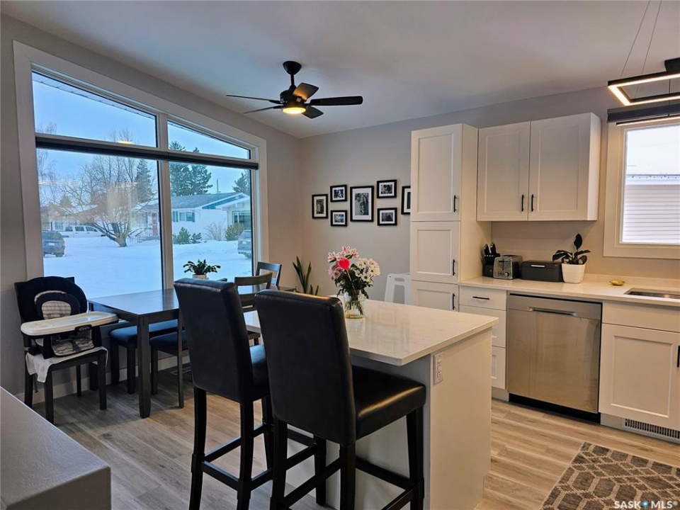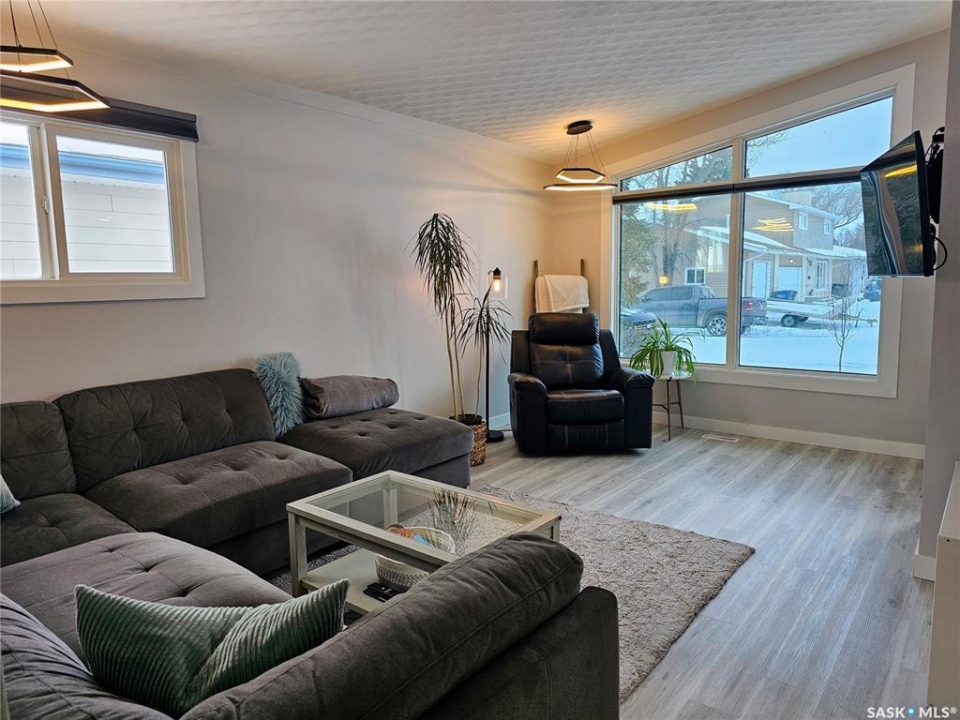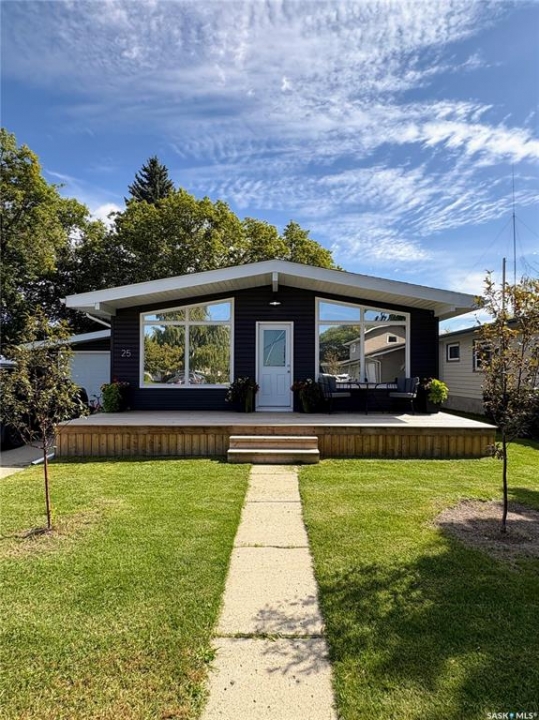 25 King Crescent in Humboldt offers the space, updates, and layout buyers are looking for. Renovations and exterior improvements have already been completed, giving this home a fresh, modern feel throughout. Meticulously maintained, pride of ownership is evident inside and out. Step inside to a bright main floor with vaulted ceilings and large front windows that bring in plenty of natural light. Vinyl plank flooring runs throughout the main living areas. The kitchen has been updated with white cabinetry, quartz countertops, stainless steel appliances, a functional island, and modern lighting. It opens directly to the dining and living room, creating a practical, open layout. Three bedrooms are located on the main level, including a primary bedroom with double closets and a two-piece ensuite. A full four-piece bathroom is also on the main floor. The basement provides additional living space with a large family room, one bedroom, a three-piece bathroom, storage room, and a den with a walk-in closet (window does not meet egress requirements for bedroom use). The attached garage is insulated, heated with electric heat, finished with custom flooring, and leads into a mudroom with laundry. Situated on a large pie-shaped lot, the fully fenced yard features mature trees, green space, and a patio area, along with a natural gas BBQ hookup. Recent updates include central air added in 2023 with a smart thermostat, new siding (2023), new roof and shingles (2023), new soffits and fascia (2023), new front windows (2023), new garage windows (2024), upgraded exterior lighting (2023), front and rear decks (2024), and a new fence (2024). This home has so much to offer and is sure to impress.