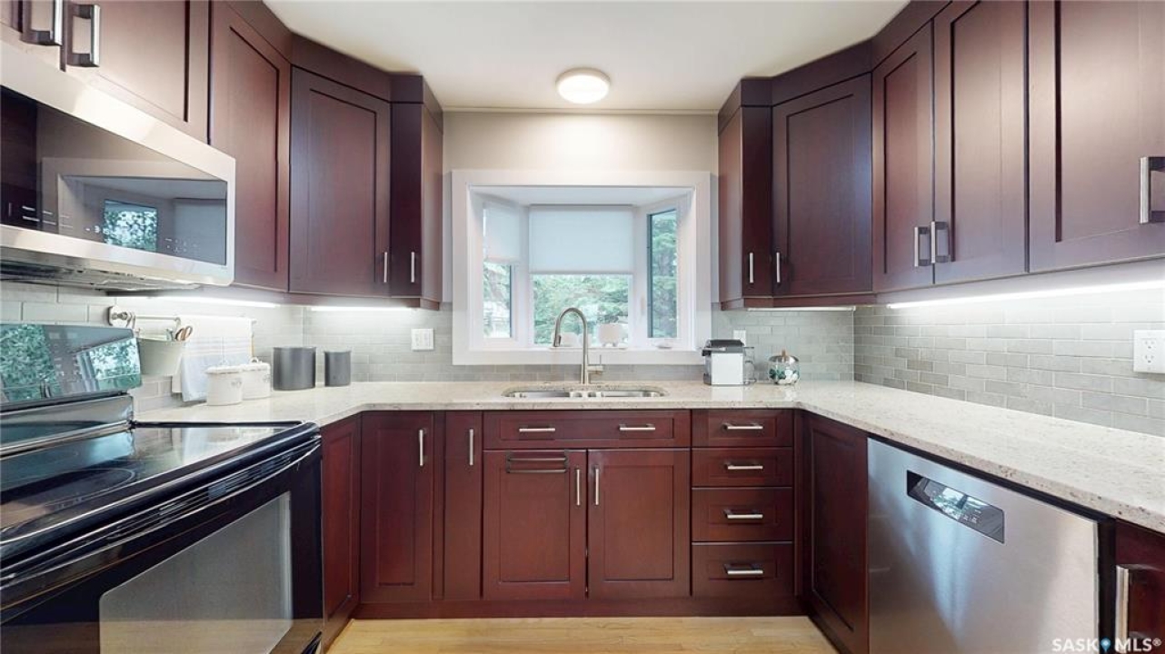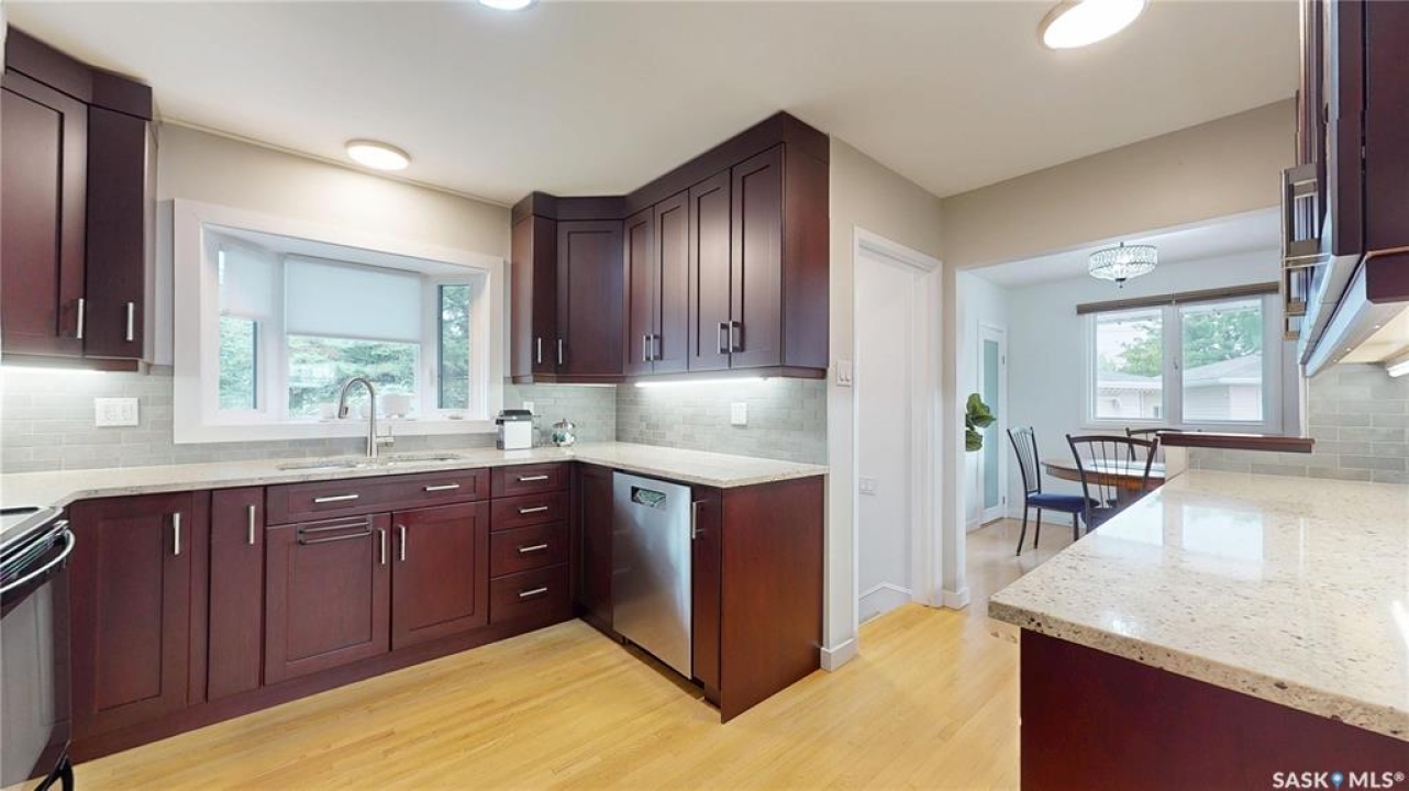 Welcome to this exceptionally well cared for bungalow located in the quiet family friendly neighbourhood of Hillsdale, you will be surrounded by great neighbours. Close to the University and all of the south end amenities. This home shows meticulously and pride of ownership is evident throughout every inch, making it truly move-in ready for you and your family. The main floor offers two comfortable bedrooms and beautiful hardwood flooring that adds warmth and character to the living space. The upgraded kitchen is both stylish and functional, featuring stainless steel appliances and modern finishes that make cooking and entertaining a pleasure. Downstairs, the fully finished basement provides even more living space with great family area completed with a cozy gas fireplace creating the perfect setting for relaxing evenings or hosting family and friends. There is also third bedroom and 3 piece bath. Outside, the backyard is a true highlight. While currently covered in snow, it transforms into a beautiful summer retreat — ideal for outdoor gatherings, gardening, or simply enjoying your own private oasis. The double detached garage adds convenience and valuable storage space. With low inventory and properties moving quickly, this is an incredible opportunity to secure a lovingly maintained home in a desirable neighbourhood. Don't miss your chance to make it yours.