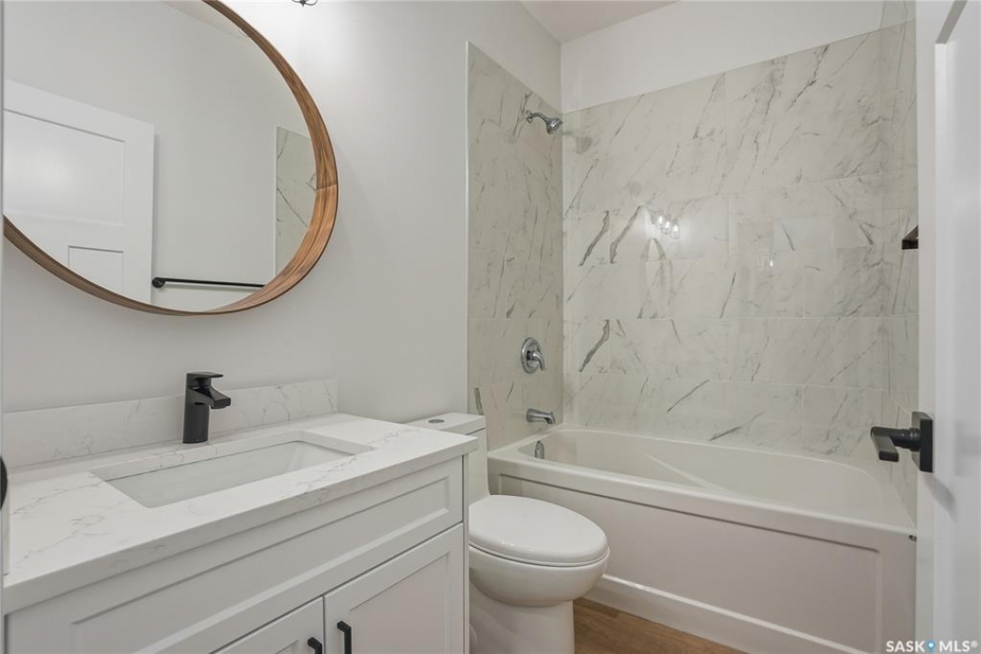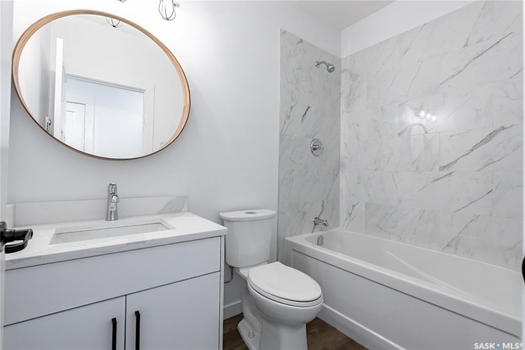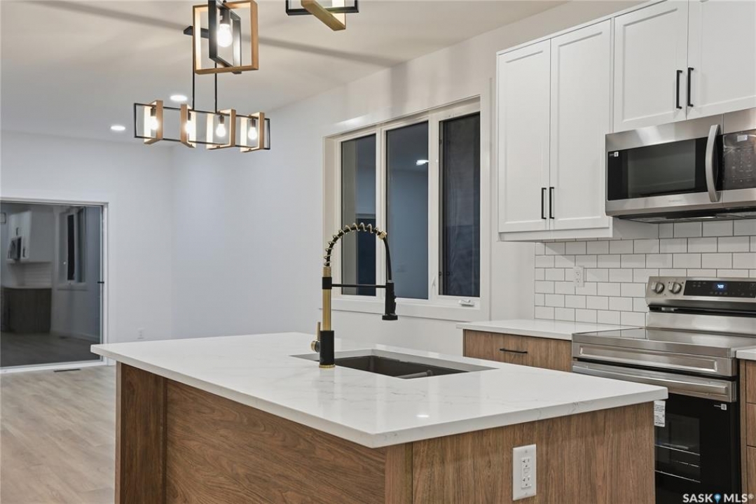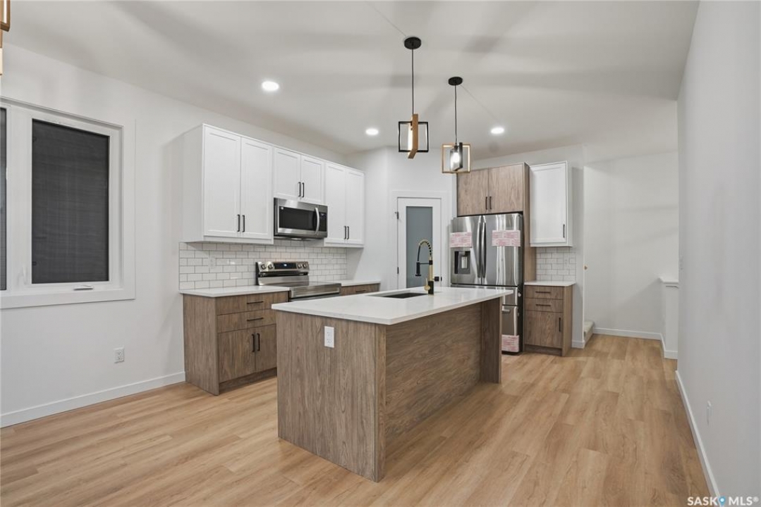 Great location with this Beautiful newly built house that is situated in the popular Kensington area of Saskatoon! Kensington has parks, walking paths, schools & close proximity to many amenities. This stunning newly built home is a 1251 sq. ft modified Bi-level with a double attached 23x20 garage and a finished 2-bedroom legal basement suite. The house boasts exceptional craftsmanship and attention to detail for anyone looking for a luxurious and comfortable living space. The main features upgraded 6.5mm vinyl plank flooring, it has a large foyer, open concept kitchen to dining/living area, a 4-piece bathroom, 2 good sized bedrooms and access to the garage as well as the utility room with plenty of storage. The 2nd floor of the home has a large primary bedroom that features a walk-in closet and a 3-piece ensuite bathroom. The basement has separate entry into a legal 2-bedroom basement suite. It features 2 bedrooms, a 4-piece bathroom, laundry, kitchen, living and dining area. There is the possibility to qualify for the Sask. Secondary Suite Incentive (SSI) Grant Program where the ministry of finance provides 35% of the total price to construct a new secondary suite at an owner's primary residence, to a maximum grant of $35,000 per qualifying property. There will be a concrete driveway & front landscaping that has sod on both sides/1 tree included. Saskatchewan New Home Warranty is included. GST/PST is included in the purchase price with the rebate to the builder. Appliances are included. Do not wait! Call to view! (Photos are of a similar built house., house is almost completed.)
