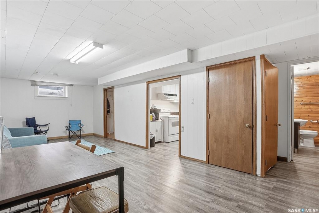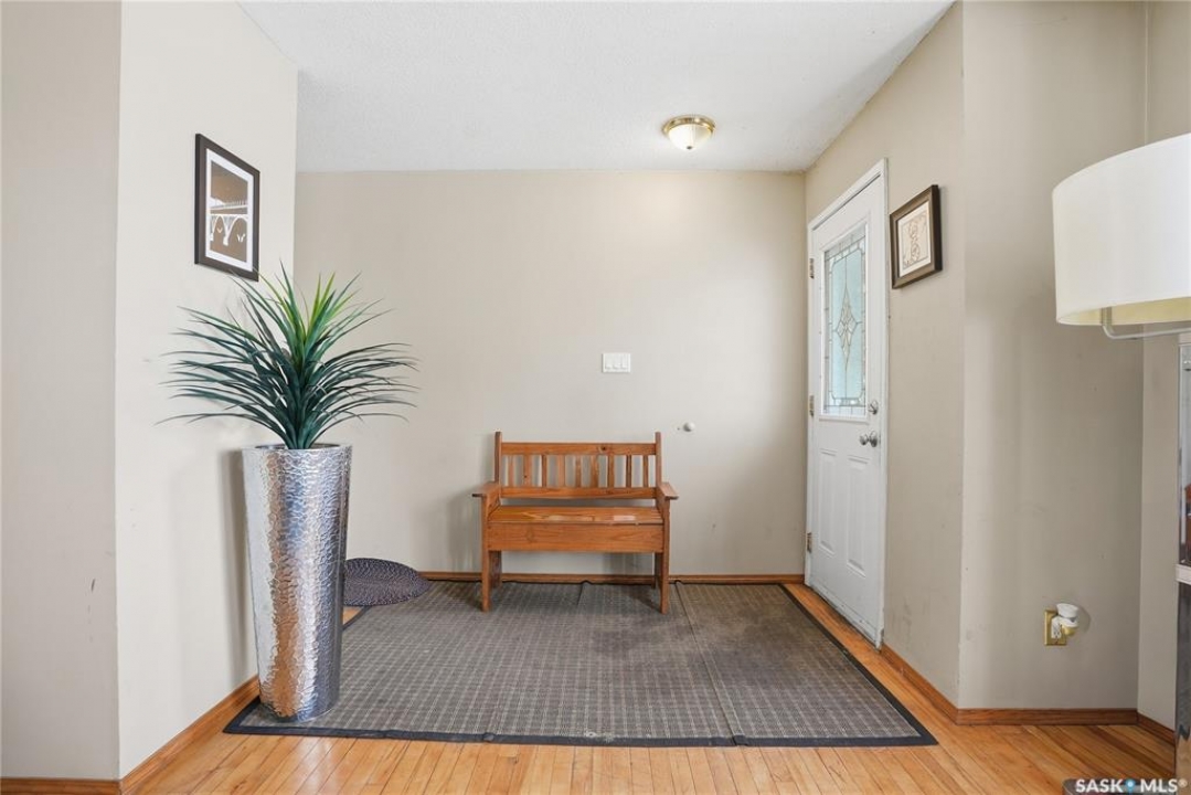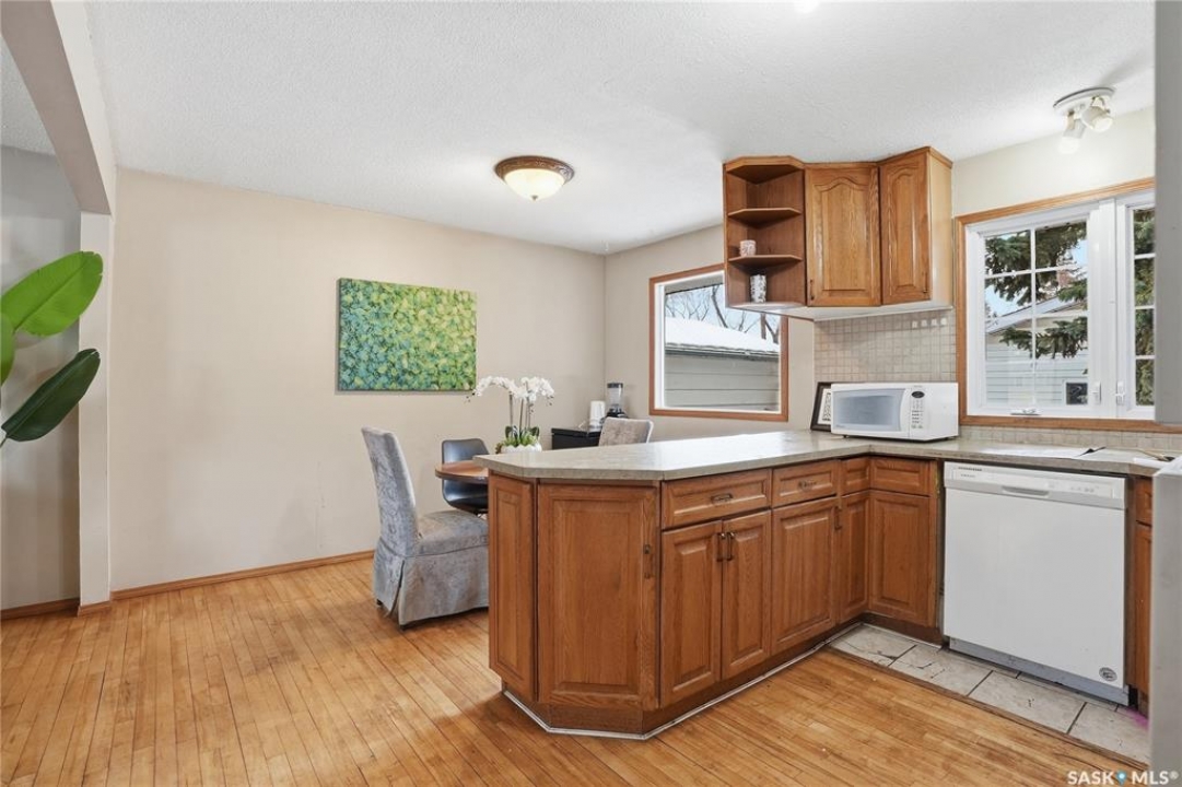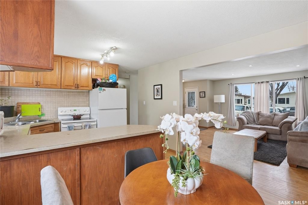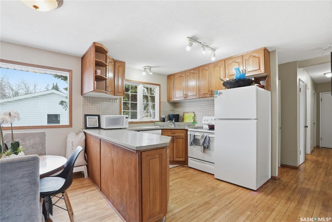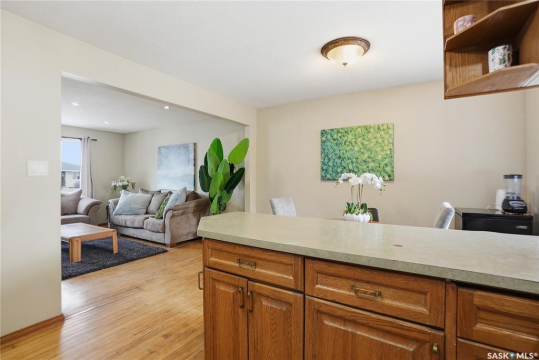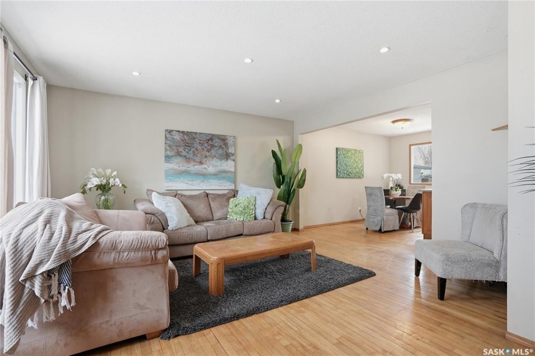 Presentation of offers Saturday at 7pm. Please submit bank preapproval letter with your offer. This charming 3-bedroom home sits on a beautiful mature lot just minutes from the university, parks, schools, College Drive, and 8th Street. Step inside to warm maple hardwood floors that run throughout the main living areas. The spacious living room with recessed lighting opens into a large dining space—perfect for family dinners or entertaining guests. The U-shaped oak kitchen offers generous storage and a great layout for everyday living. Upstairs you'll find three comfortable bedrooms and a stylish 4-piece bath complete with granite countertops and a ceramic tile tub surround. Downstairs adds incredible flexibility with a bright non-conforming suite featuring vinyl plank flooring, white heritage kitchen, good size windows, updated mechanical, and a 3-piece bathroom—ideal for extended family or mortgage helper potential. Outside, enjoy south backing fenced yard, interlocking brick patio, updated vinyl siding, and a double detached garage 20 X 24 plus front driveway for plenty of parking. With paint, new counter tops and some flooring.. This would make a great investment. This home checks all the boxes, plus great value—don't miss it!