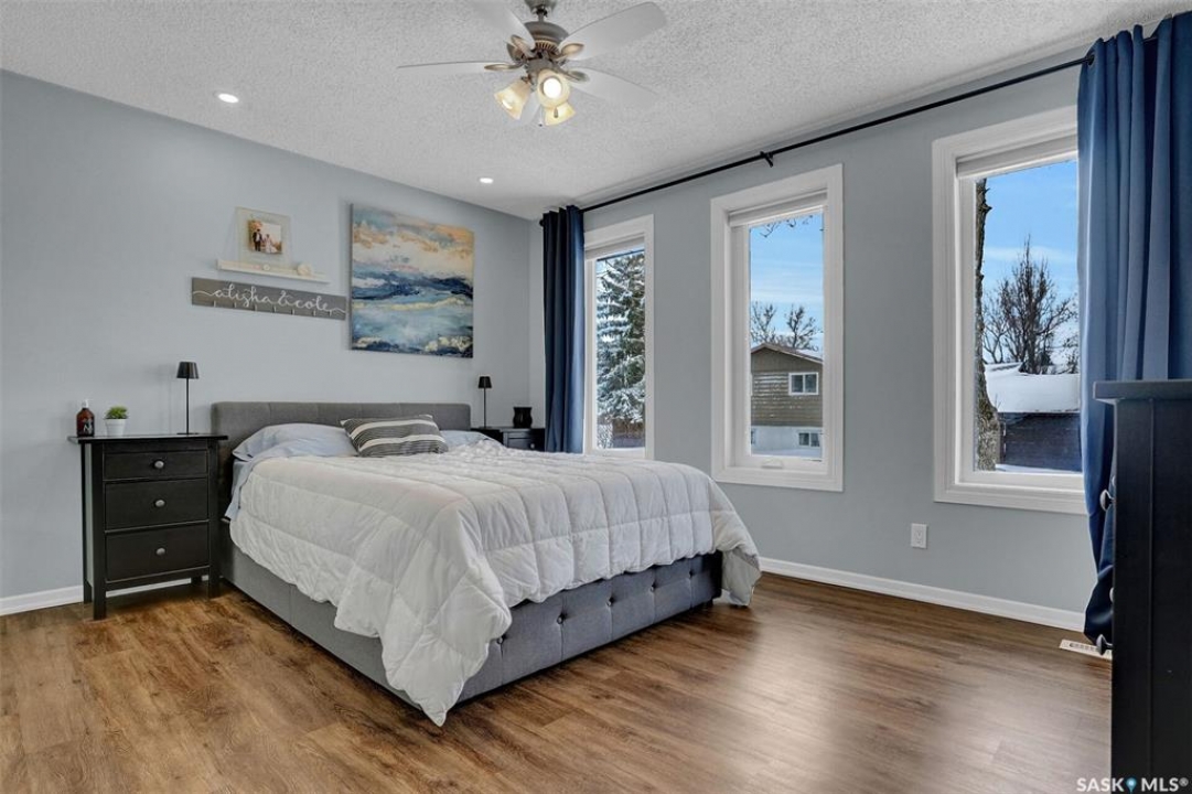 Very well cared for and maintained 4 bed, 2 bath bi-level located in the desirable neighbourhood of Lakewood. Excellent location - close to elementary school, high schools, parks, recreation centre, and many north end amenities. Main floor offers a large living room space - perfect spot to enjoy a movie night! Spacious kitchen features a generous amount of wood cabinetry and lots of working counter space. Dining area off the kitchen has garden doors leading to the covered outdoor deck. Primary bedroom features lovely windows offering an abundance of natural light into the space. Additional bedroom and a lovely 4 piece bath complete the main level. Lower level is developed with a cozy rec room, two additional bedrooms (one window may not meet current egress), 3 piece bath, and a large storage/laundry/utility room. Large mature yard is a very enjoyable in the desirable weather months with lots of room for the kids to play and the pets to roam free. Double detached garage is perfect for the winter months and also serves as an additional storage space. This home is a true pleasure to show and is move in ready! Form 917 in effect until Feb. 23rd at 6:00PM.