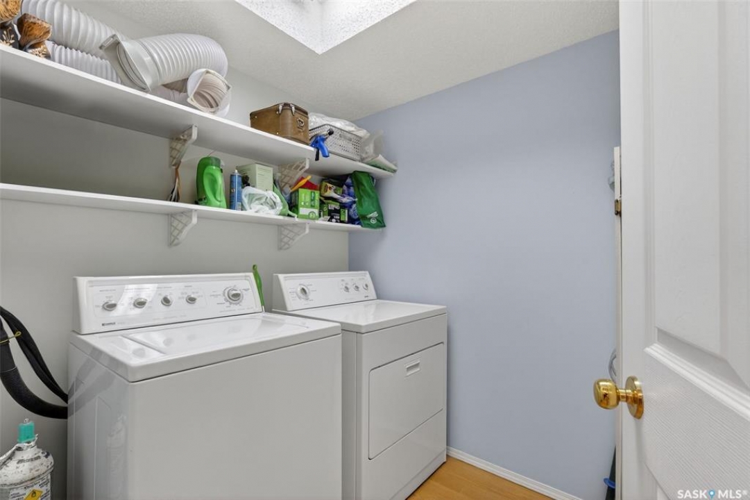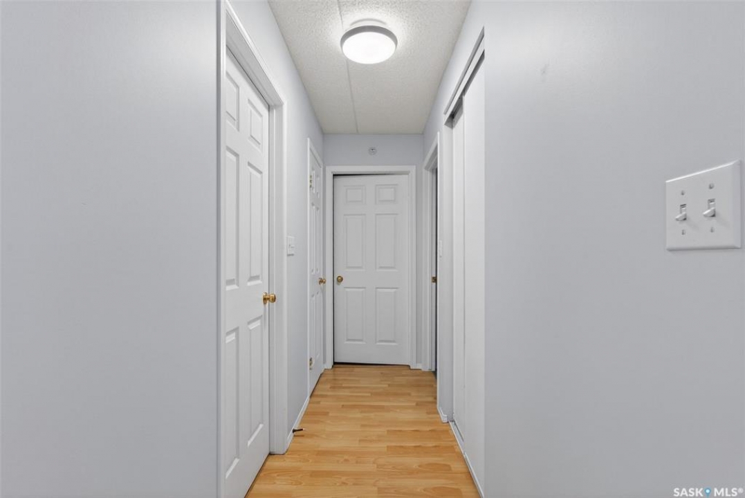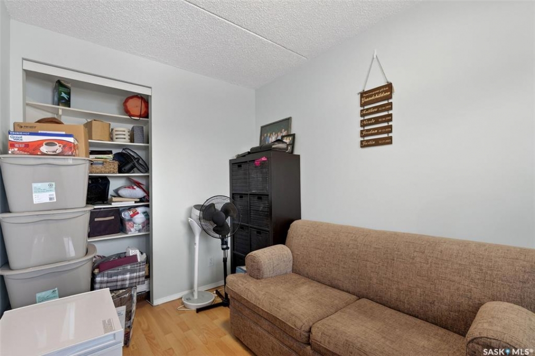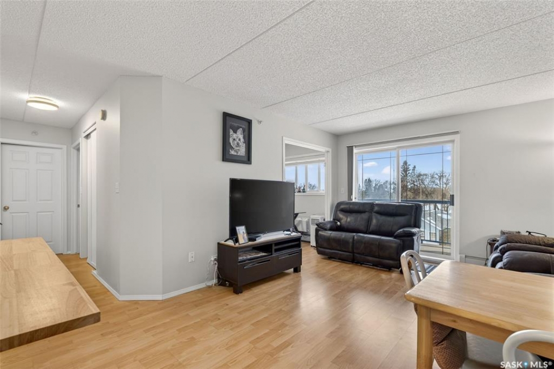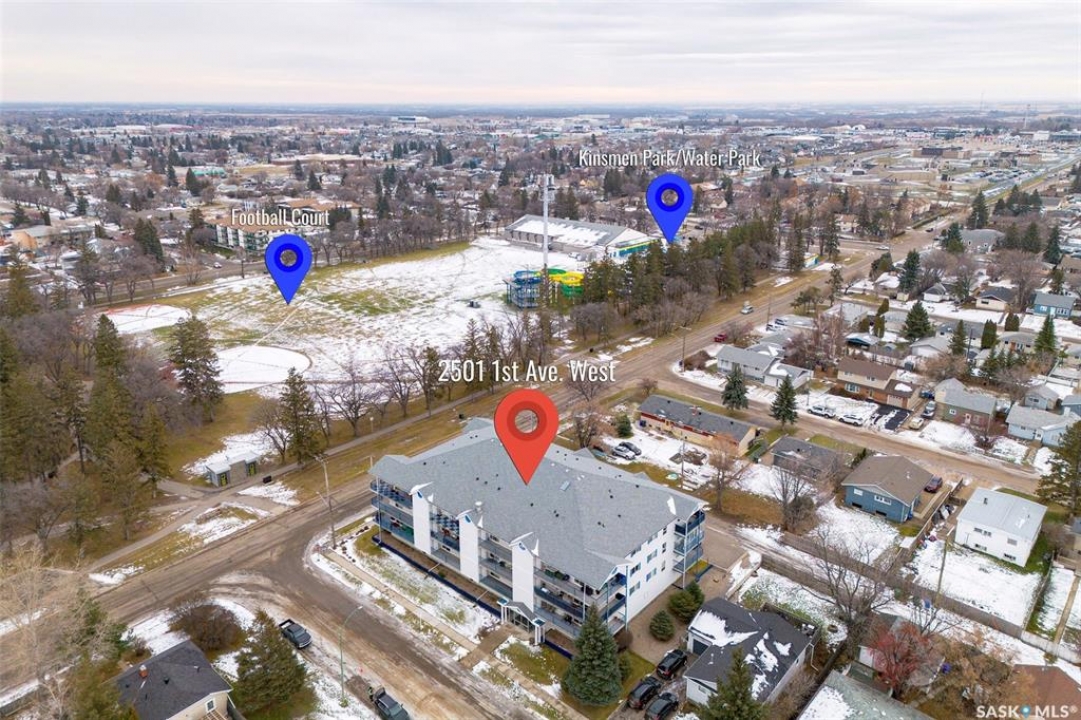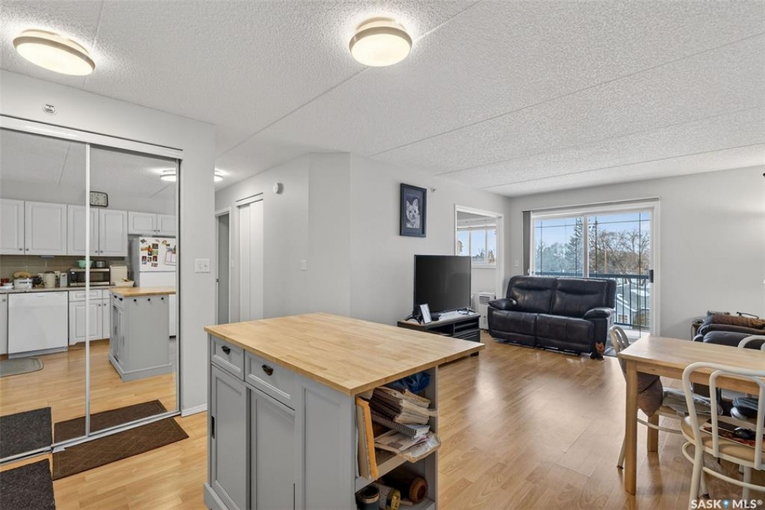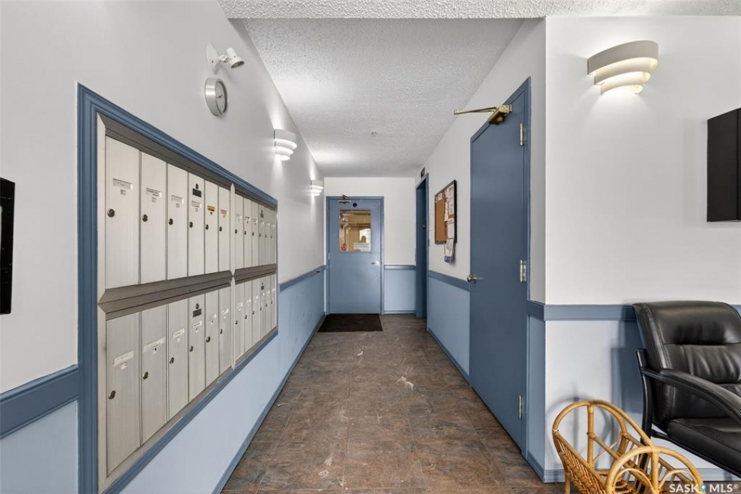 Enjoy low maintenance living in the desirable Regency Arms condo complex, ideally located across from Kinsmen Park and close to everyday amenities! The bright kitchen is both stylish and functional, featuring crisp white cabinetry, a newer modern backsplash, a newer fridge and new dishwasher, creating a welcoming space for casual dining and entertaining. The living room is filled with natural light and opens directly onto the balcony, perfect for enjoying your morning coffee or unwinding in the evenings. The balcony also features two private storage rooms for added functionality. There is also a spacious bedroom that has newer carpet, a versatile den for a home office or hobby space, a 4 piece bathroom, and a convenient laundry room, all enhanced by newer paint throughout that gives the unit a fresh and updated feel. Additional features include underground parking and elevator access, providing both convenience and accessibility. A comfortable and easy lifestyle awaits. Act now and make this your next move!