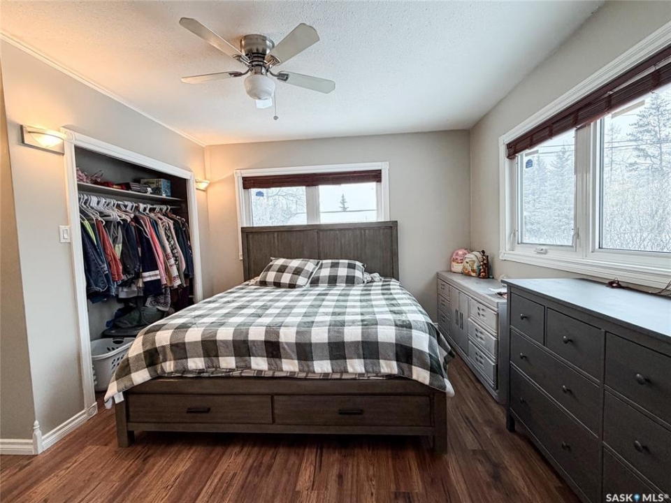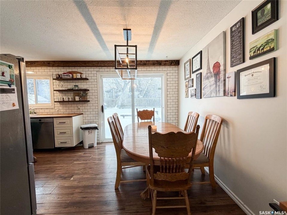 Giving fresh farmhouse vibes this 3 bedroom 2 bathroom bungalow has seen many updates over the recent years. Light and airy feel with large windows letting in generous amounts of natural light. Contemporary laminate flooring in the perfect shade runs the entirety of the home with exception of bathrooms. Living room has convenient built in storage and electric fireplace. The galley kitchen has great storage, updated stainless steel appliances and a designated dining area with patio door accessing the backyard. The primary bedroom and newest upgrade the 5pc ensuite is a space you will want to end your busy days with. The lower level has laundry and is currently utilized as storage but further development is possible. The backyard offers plenty of space! Plum and apple trees, raised garden bed with strawberries, raspberry and Saskatoon's. Shingles done 2025, water heater 2024. Garage measures 12'x24'. For more information don't hesitate to reach out.