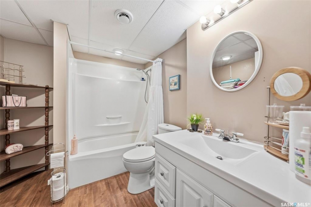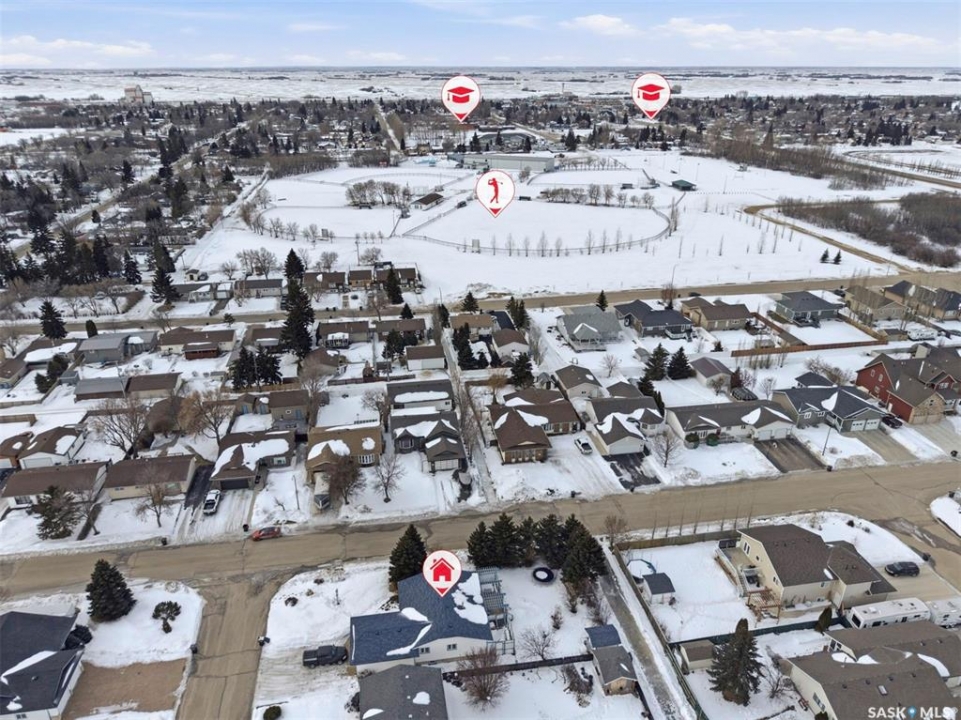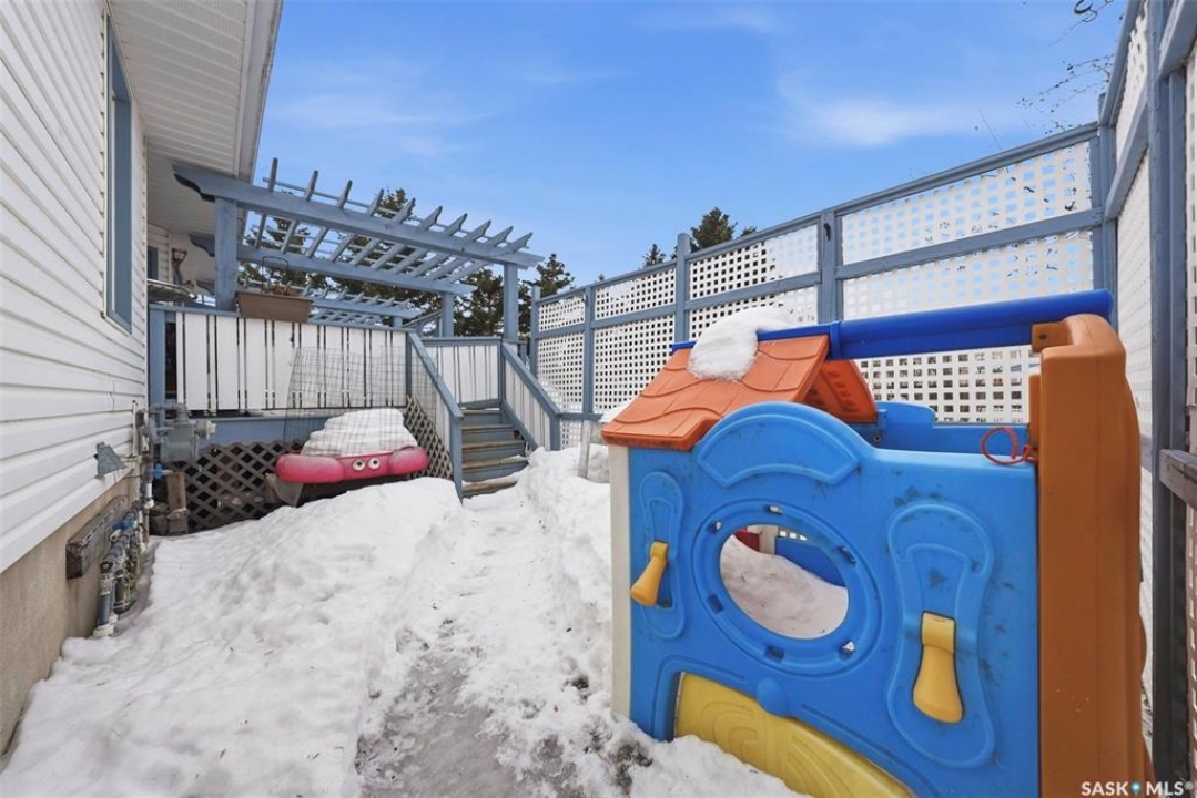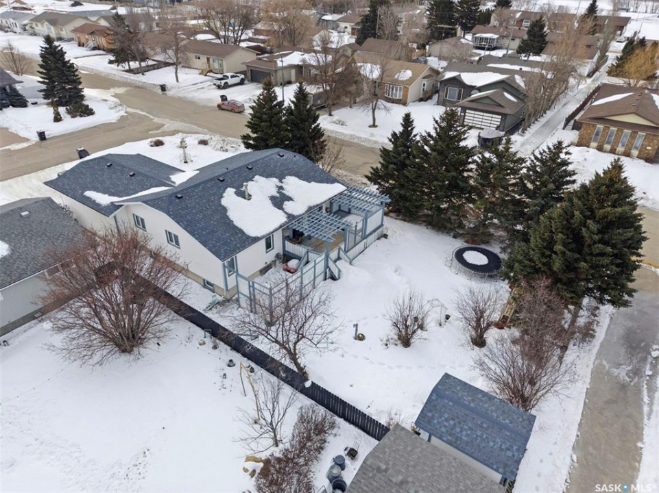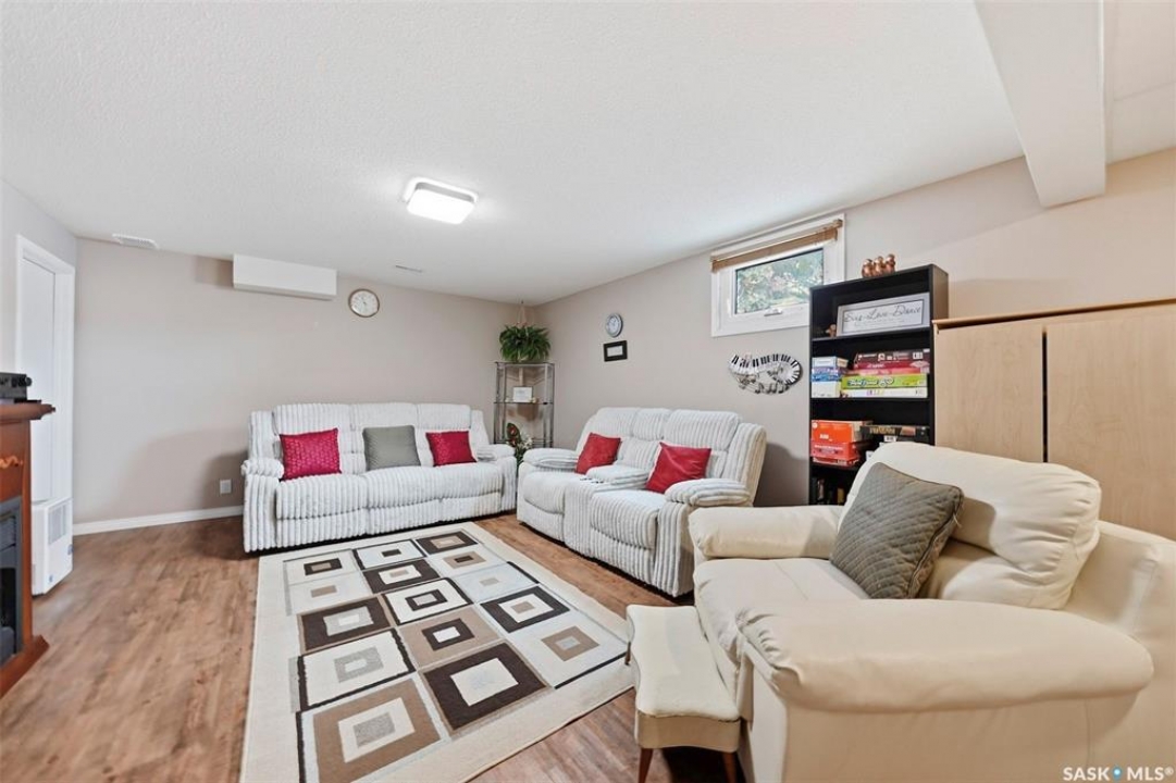 Welcome to this beautifully kept home in the heart of Watrous! The inviting front entry leads into a spacious living room filled with natural light. The main floor features a huge eat-in kitchen with plenty of room for family gatherings, a full main bathroom, and three generously sized bedrooms — including a primary suite complete with its own private ensuite. The fully finished basement offers even more living space with a large family room, two additional spacious bedrooms with custom study tables in each room, a 4-piece bathroom, a utility area with hobby space, and ample storage. Numerous updates provide peace of mind, including newer windows, shingles, garage door, and basement improvements. Step outside to enjoy the private patio just off the deck, complete with a pergola — perfect for relaxing or entertaining. A natural gas BBQ hookup adds extra convenience. Ideally located close to schools, ball diamonds, and the swimming pool, this home offers comfort, space, and an unbeatable location. Located just 5 minutes from the resort village of Manitou Beach