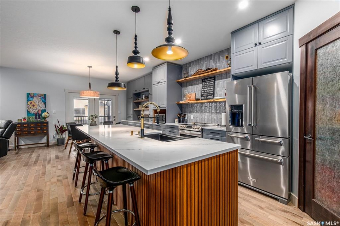 Welcome to this beautifully designed and thoughtfully upgraded 1,680 sq ft home offering exceptional space & quality construction. Situated on a large, fully fenced lot with mature trees and landscaping, this property is perfect for growing families who value both comfort and functionality. The main floor features a recently renovated kitchen, dining area, and living room, showcasing an abundance of custom grey cabinetry with soft-close hardware, quartz countertops, floating shelves, stainless steel appliances, and a spacious walk-in pantry. The living room is highlighted by built-in custom cabinetry and a beautiful electric fireplace, creating a warm and inviting focal point. Two front entry closets provide ample storage for outdoor wear. Convenience continues with main floor laundry, complete with laundry sink, located in the mudroom. The primary bedroom is a true retreat featuring his and hers walk-in closets and a 4-piece ensuite with an extra-large tiled walk-in shower. Two additional bedrooms complete the main level. One bedroom is currently being used as an office. The fully finished basement is constructed with an ICF foundation and supported by a structural steel beam, to help eliminate some teleposts to provide a wide-open, unobstructed layout. Downstairs you'll find three additional bedrooms, a corner gas fireplace, floating shelves, under-stair storage with lighting, and stair lighting on a timer for added safety and ambiance. Additional features include: 200-amp electrical service, 2 water heaters for endless hot water supply, composite covered deck, natural gas BBQ hookup, patio with gazebo, shed, heated double attached garage & underground sprinklers (front yard only) With 6 bedrooms total 3 baths, and thoughtful upgrades throughout, this move-in ready home offers incredible value and functionality inside and out. A must-see property!