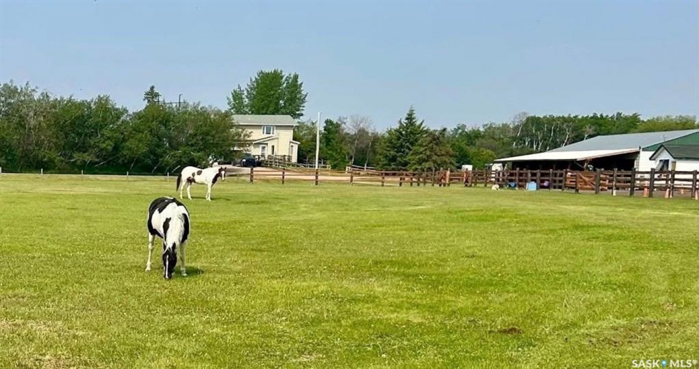 Just south of the city on Tamke Road lies your own slice of polished country paradise — beautifully updated and ready for your lifestyle. This impeccably kept 10 acre dream property is fully cross fenced with electric wire and an automatic watering bowl, complete with a large sand footing riding arena perfect for everything from training days to sunset rides. The impressive 30x70 pole building features a large open area, tack space, with one stall currently set up and ready to go, while the other side offers a fully insulated and heated shop- ideal for the mechanic, woodworker, toy collector, or hobby enthusiast in the family. And ladies, you'll fall in love with the incredible “She Shed” space that it currently is used as. But the one side of the outbuilding could be effortlessly transformed into the perfect heated workshop, fitness studio, creative retreat, or private escape. Even the chickens are living their best life here in what can only be described as the Taj Mahal of chicken coops. The yard has been thoughtfully reimagined, with the former inground pool professionally covered to create a stunning treed oasis that's perfect for kids, pets, entertaining, or simply enjoying peaceful prairie evenings under the stars. Inside the 1,981 sq ft two-storey home you'll find many interior and exterior updates that make it feel fresh and move-in ready, including luxury vinyl plank flooring throughout (no carpet!), a cozy electric fireplace, an updated kitchen with stainless steel appliances, four spacious bedrooms upstairs with breathtaking acreage views, and an attached double garage. Municipal water service provides added convenience and peace of mind, while the unfinished basement offers excellent storage. This property truly has it all — horses, hobbies, toys, style, and space — just minutes from the city. Impeccably maintained and ready for its next chapter, your acreage lifestyle starts here.