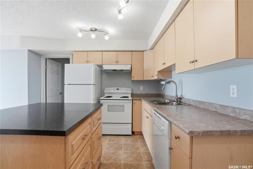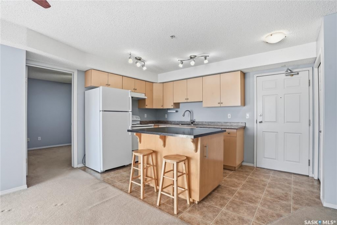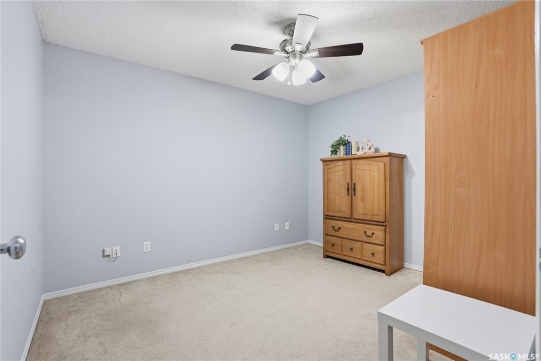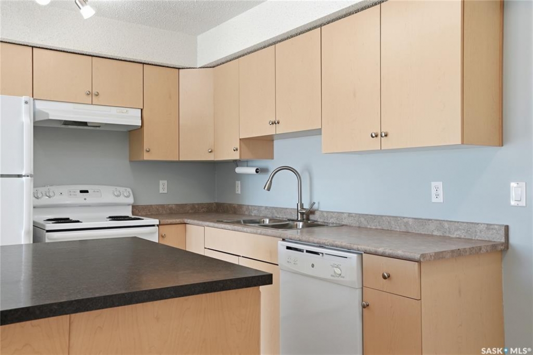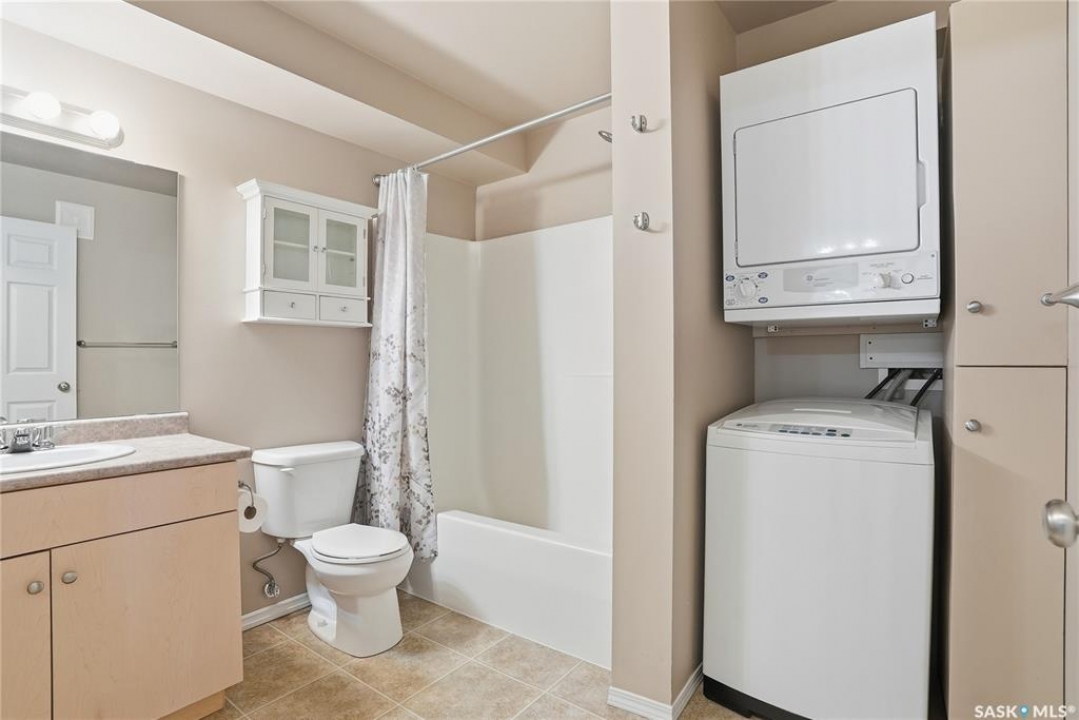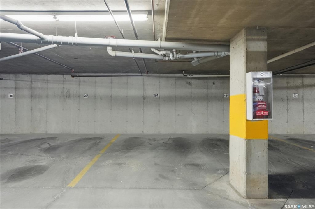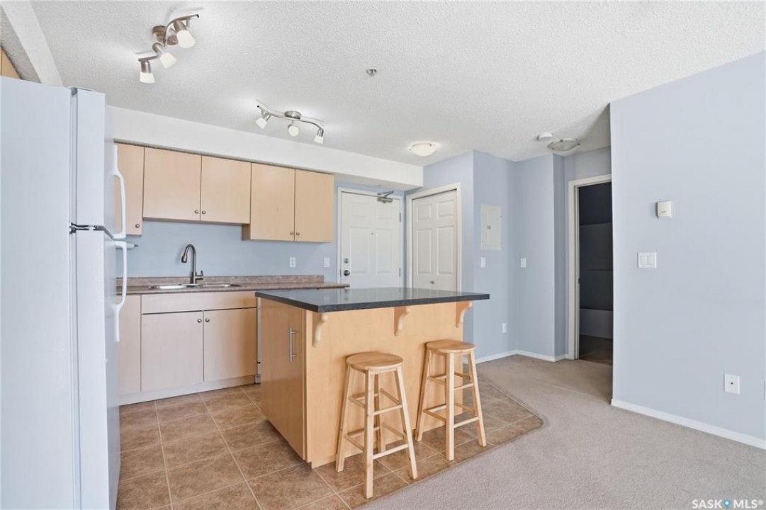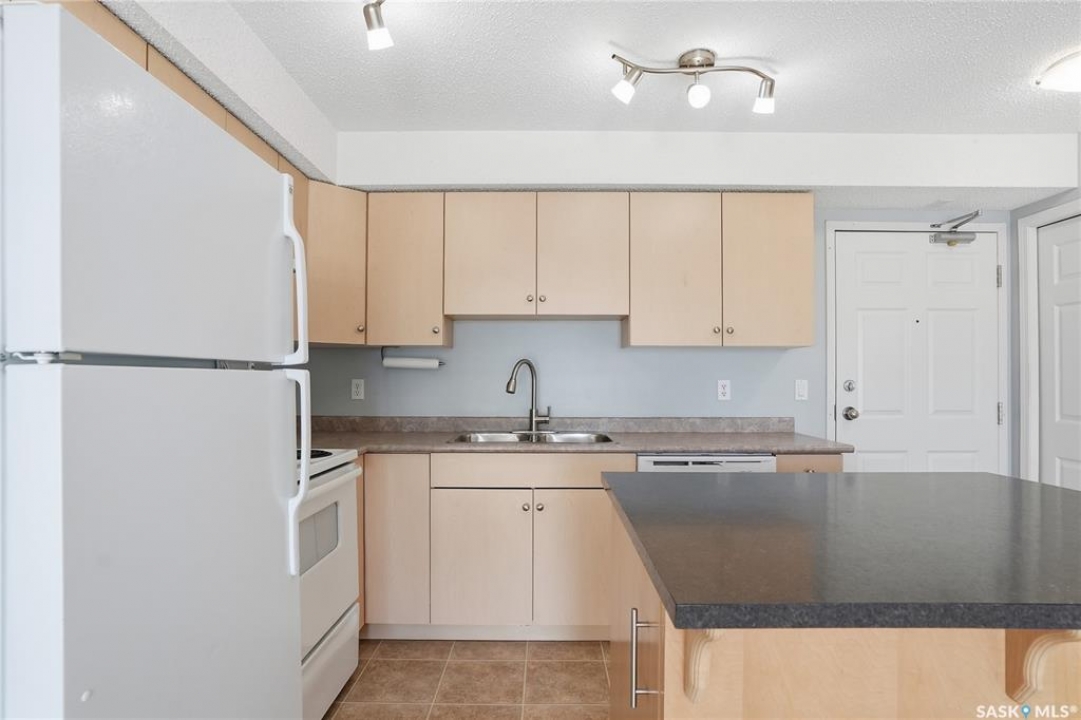 Welcome home to 303 Lowe Road unit 107. West facing views, underground parking, and a 1 + 1 configuration for a primary sized bedroom and large den - this condo shows 10/10! Step inside to find a bright main area with a kitchen that is clean and functional. Ample storage around with a custom built island that hosts drawers on either side! The living room features an updated Air Conditioner and is set for relaxing with plenty of natural light from the large patio doors. From here you have access to your own covered patio space. Inside you will find that the primary bedroom is a great size with room for a large bed and dresser. Opposite to this bedroom is a large den that could accommodate a bed and has an included closet system. The bathroom is a clean 4 piece design with laundry included. Located in University Heights you will find this to be one of the most walkable locations in Saskatoon! Steps to the bus stop and a short walk to grocery stores, restaurants, gyms, and walking paths through the Forestry Farm and the north swale. Amenities include an exercise room, elevator, and plenty of visitor parking. Well cared for and turn-key! Call today to see this exceptional home!