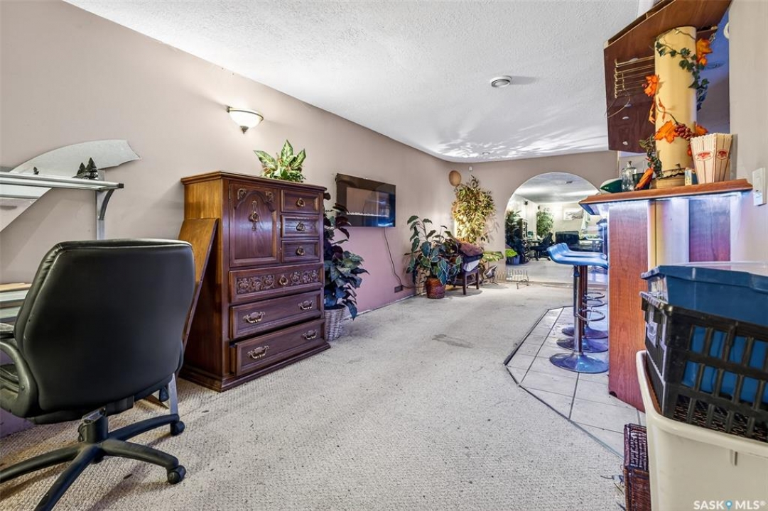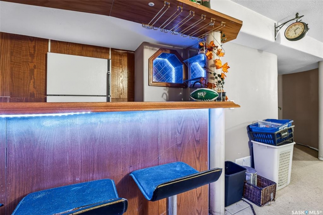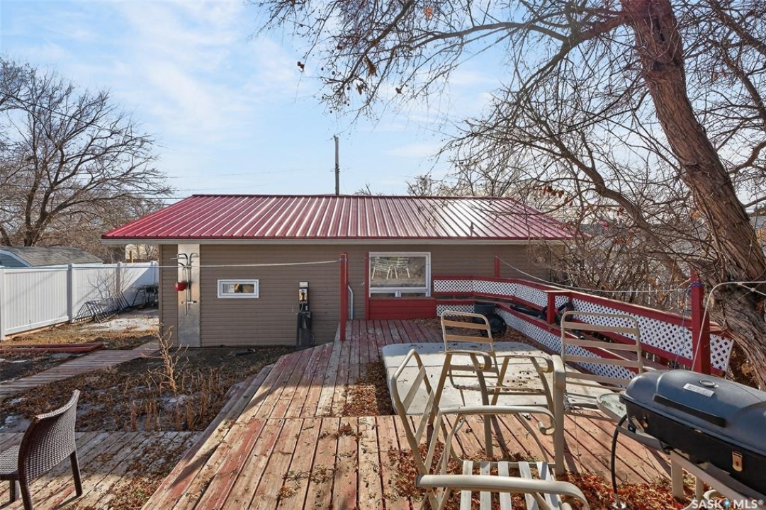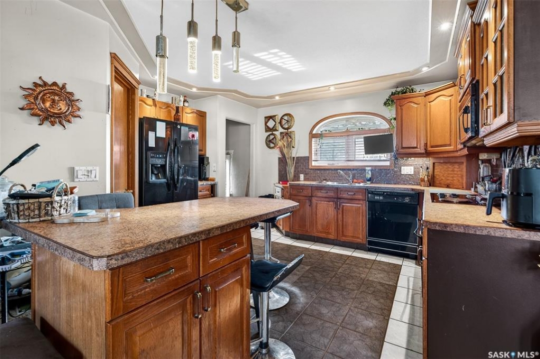 Excellent location for this bungalow! Good curb appeal as you show up with a double rubber paved driveway and turf for the front yard with a front deck! Heading in the backdoor we find a U-shaped kitchen with a tiered eat-up island, walk in pantry and lots of storage. At the front of the home we find a formal dining room with beautiful coffered ceilings! The large living room is sure to impress with its high vaulted ceilings. Down the hall we find a 3 piece bathroom and an office that could be used as a bedroom. Finally we find the primary bedroom with garden doors out to your 714 sq.ft. of tiered deck with a sunken hottub! Downstairs we find a huge family room with a full bar. There is also a second 3 piece bathroom on this level and a second bedroom. Finally we find a laundry room, utility room and a storage space. The oversized fully finished garage is a dream - 24' x 32', heated, with water and a urinal. Not too mention all of the bench space. Outside we have a garden space, an outdoor shower, nat gas bbq hookup, and a firepit area setup for nat gas. This home has had so many upgrades over the years - new garage about 2 years ago, high efficient furnace, hot water on demand, vinyl fencing. If you are looking for a very custom home that has lots to offer but needs some TLC to bring it back to its glory then this is it! Reach out today to book your showing!