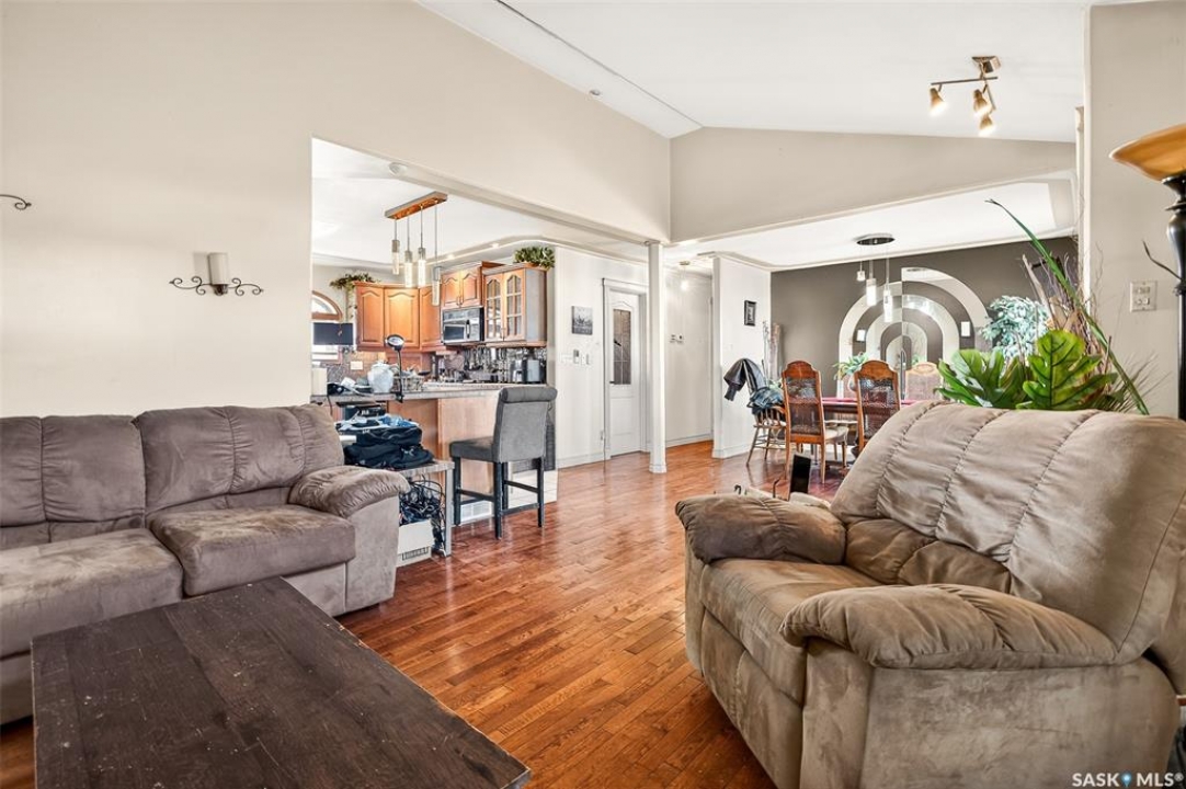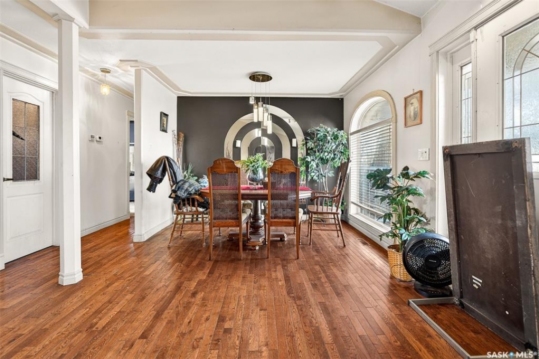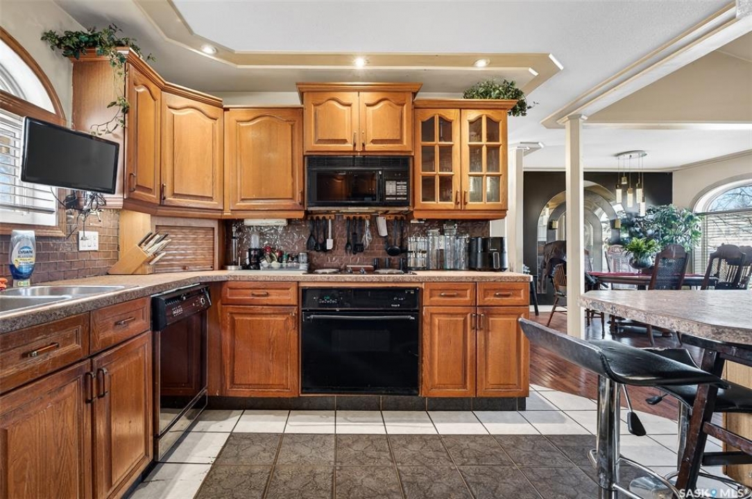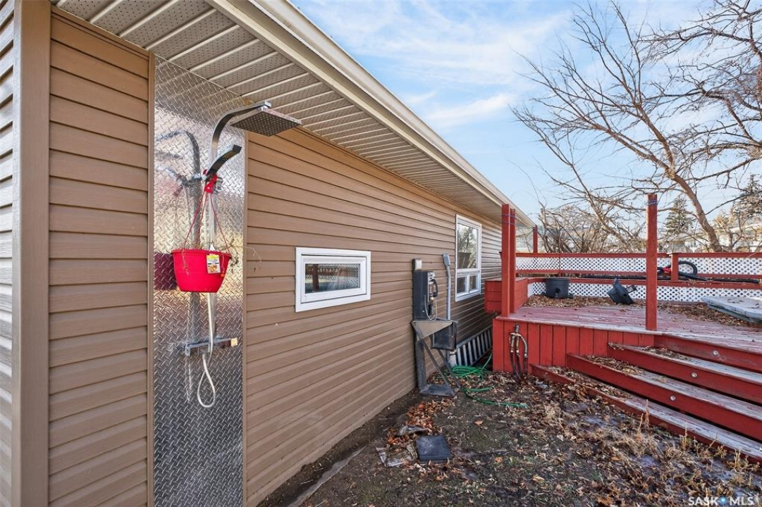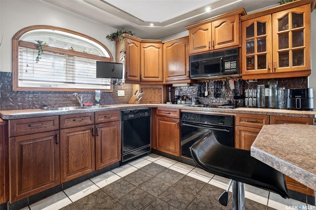 Excellent location for this bungalow! Good curb appeal as you show up with a double rubber paved driveway and turf for the front yard with a front deck! Heading in the backdoor we find a U-shaped kitchen with a tiered eat-up island, walk in pantry and lots of storage. At the front of the home we find a formal dining room with beautiful coffered ceilings! The large living room is sure to impress with its high vaulted ceilings. Down the hall we find a 3 piece bathroom and an office that could be used as a bedroom. Finally we find the primary bedroom with garden doors out to your 714 sq.ft. of tiered deck with a sunken hottub! Downstairs we find a huge family room with a full bar. There is also a second 3 piece bathroom on this level and a second bedroom. Finally we find a laundry room, utility room and a storage space. The oversized fully finished garage is a dream - 24' x 32', heated, with water and a urinal. Not too mention all of the bench space. Outside we have a garden space, an outdoor shower, nat gas bbq hookup, and a firepit area setup for nat gas. This home has had so many upgrades over the years - new garage about 2 years ago, high efficient furnace, hot water on demand, vinyl fencing. If you are looking for a very custom home that has lots to offer but needs some TLC to bring it back to its glory then this is it! Reach out today to book your showing!