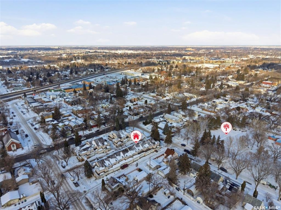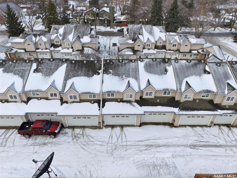 Are you looking for an easy to maintain home with excellent location? Look no further. This fully finished 1228 sq. ft two storey townhouse style condo features a double attached garage having direct entry & many upgrades. It is located in the Exhibition area of Saskatoon & situated right next to a beautiful park & has close proximity to many schools. The main floor has a front facing living room with a lot of natural light coming in, a cozy gas fireplace, laminate flooring & electronic controlled Lutron smart blinds. The kitchen features newer appliances, a touch faucet, plenty of cupboards & a pantry area next to the 2-piece bathroom. The dining room is spacious and open to the kitchen. The 2nd floor has a 4-piece bathroom with cheater door through to the primary bedroom. It also has 2 additional bedrooms which are both a good size and the laundry area. The basement is nicely finished with a large family area, storage and the utility room. There have been many upgrades, which include; paint on all interior walls, garage walls & roof, newly replaced smoke & CO detectors, new central vacuum installed with attachments, a new tankless on demand water heater & thermostat upgraded. This beautiful home is move in ready & comes complete with all appliances, washer, dryer, central air conditioning, central vacuum with all attachments and all window coverings. Call to view.