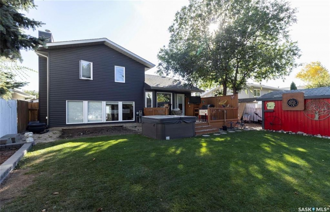 Your new family home in the heart of Erindale is the perfect place to grow. A home designed for the rhythms of family life. This beautifully maintained 4-level split offers more than just lots of living space. Your family will find a place for everyone in a home that balances togetherness with privacy. With three bedrooms upstairs and an additional bedroom on the lower level, there is plenty of room for a nursery, a teenager's retreat, and a quiet guest suite. The bright, open main living area is perfect for family gatherings, while the lower-level family room provides a space for movie nights, or a sprawling play area. The heart of the home is the kitchen and dining area which makes school-morning breakfasts or holiday dinners seamless and stress-free. A huge deck with built-in gas BBQ and hot tub, plus a beautiful backyard, are perfect for entertaining or quiet relaxation. This is your chance live in one of Saskatoon's most established & safe neighborhoods.