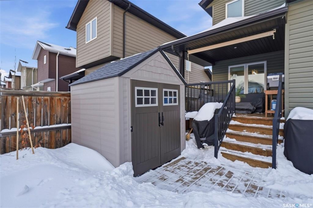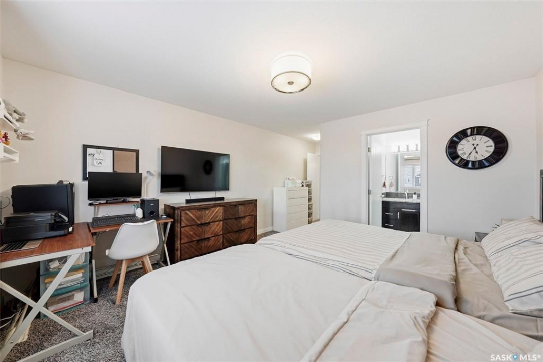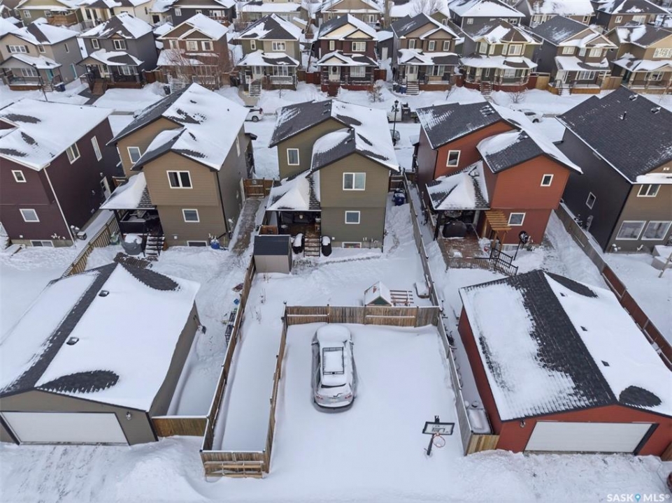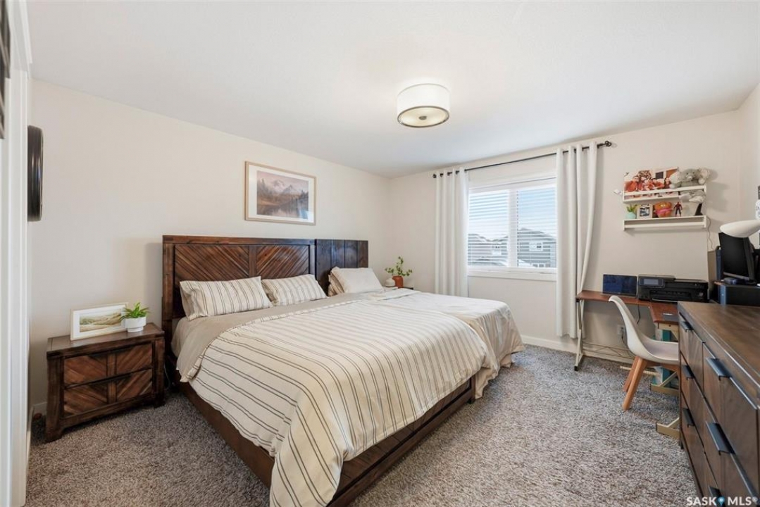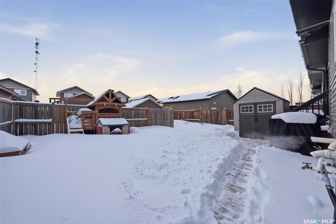Welcome to this well-maintained 1,420 sq ft two-storey home in the growing community of Warman. Thoughtfully designed with comfort and functionality in mind, this property offers an ideal layout for families, first-time buyers, or anyone seeking a move-in-ready home in a fantastic location. The main floor features a bright open-concept layout, combining the living room, dining area, and kitchen into a warm, inviting space perfect for everyday living and entertaining. Upstairs, you'll find three good-sized bedrooms and 3pc ensuite bathrooms and a 4pc bathroom. The basement is fully developed with rough in for another bathroom in the storage area and currently operating as a licensed day care, offering flexibility for future use giving buyers the opportunity to customize the lower level to their needs. Also has another bedroom and a den. Main floor has a 2pc bathroom. For showings, weekday viewings are available after 5:15 PM, with flexible times on weekends. Outside, the backyard is ready for your future garage build, with ample space to create the outdoor setup you envision. Please note: play structure, shed, drapes, and curtain rods are not included in the sale. A newer washer and dryer add extra value and convenience. A fantastic opportunity to own a clean, well-cared-for home in a family-friendly community with room to grow and personalize. This one will not last long. Call your favorite realtor to schedule your viewing.