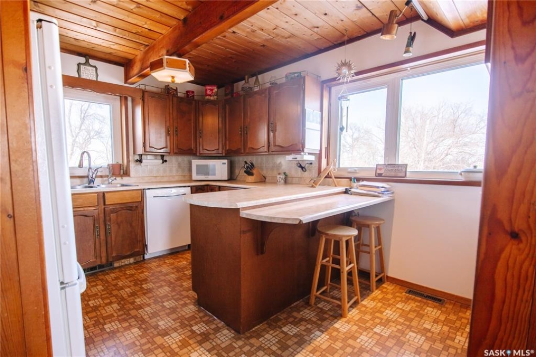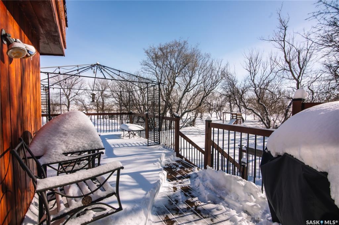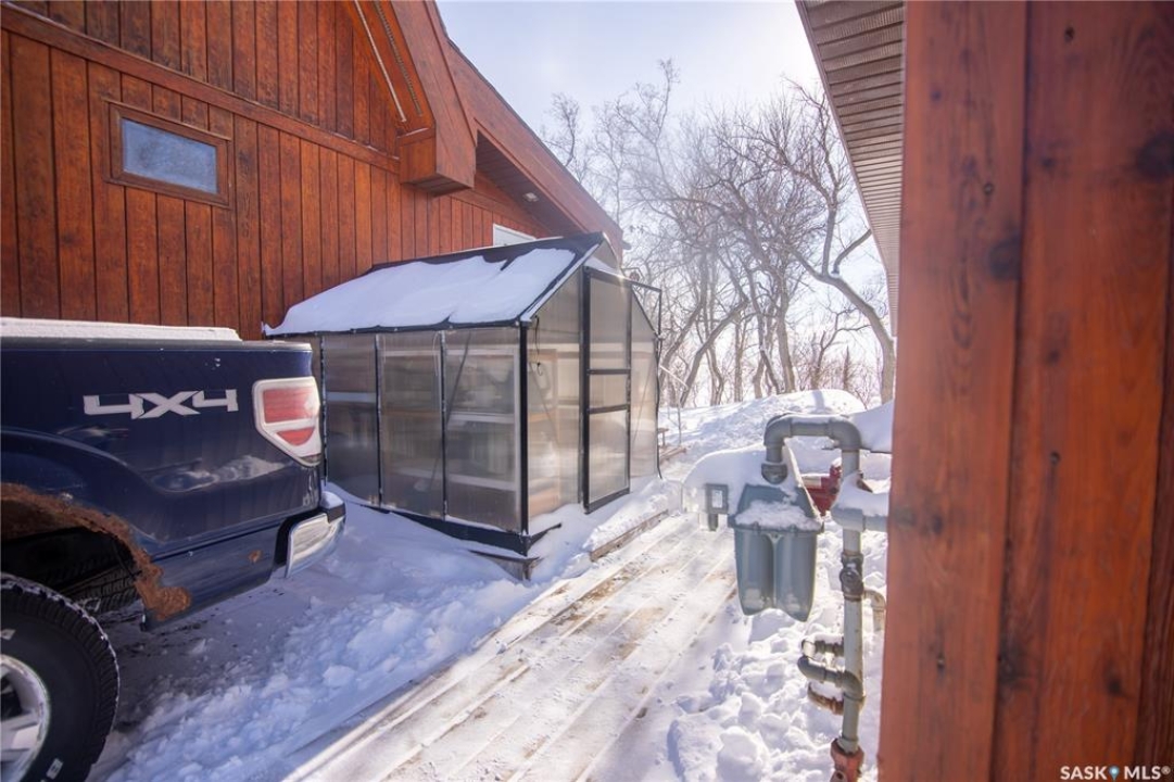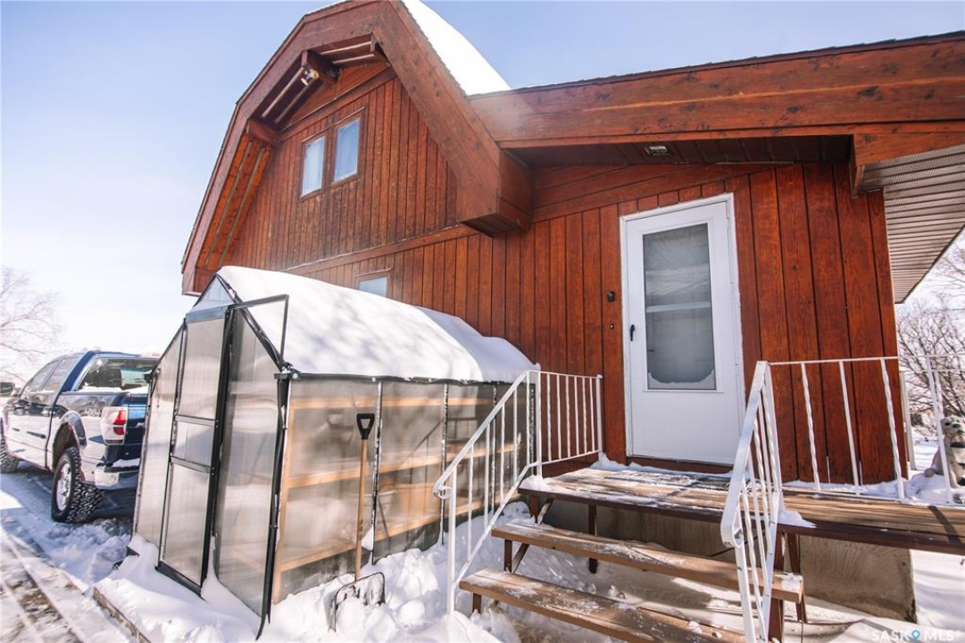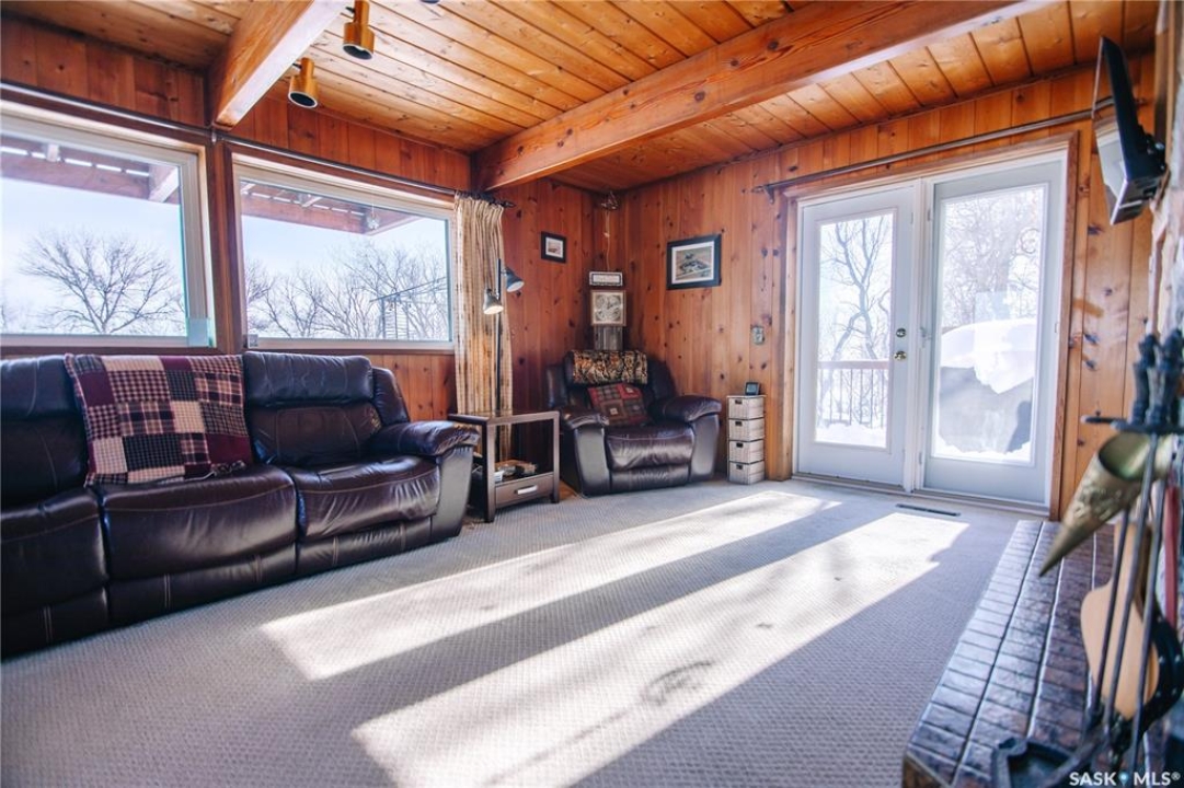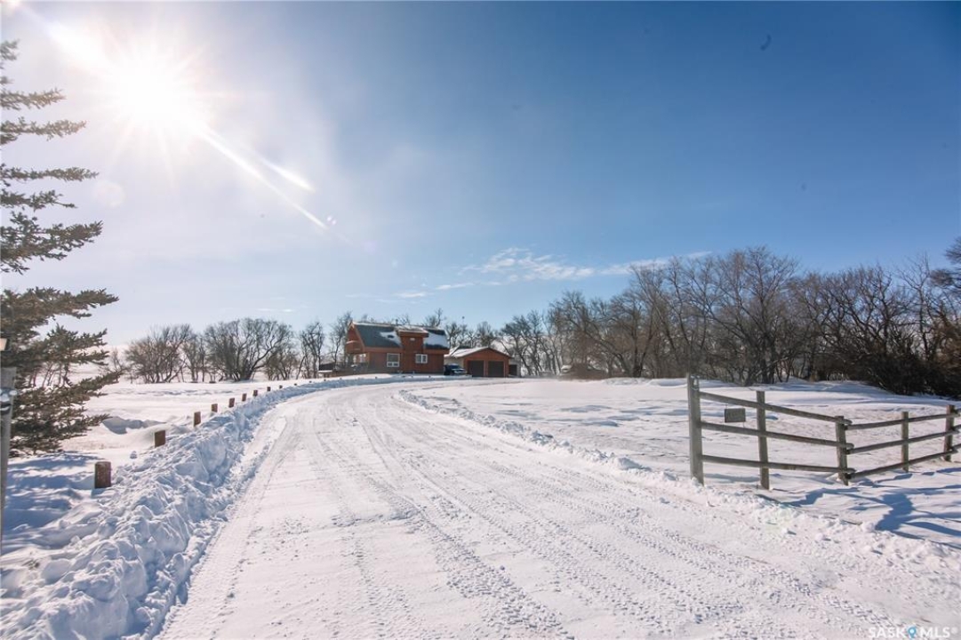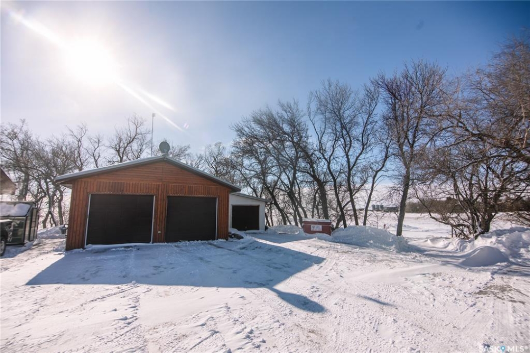Welcome to this cozy acreage located just 13 km NE of Bethune and only minutes from the lake. Offering the perfect balance of peaceful country living and manageable upkeep, this beautifully treed 2-acre parcel is sheltered by a mature shelterbelt, providing privacy, space to roam, and room for kids or hobbies — without overwhelming maintenance. As you arrive, you'll immediately appreciate the tranquil setting and wide-open space. Step inside to a spacious porch/mudroom, the perfect spot to settle in and comfortably kick off your boots. The main floor features a warm and inviting country kitchen, an adjoining dining area, and a bright living room filled with natural light from an abundance of windows. A wood-burning fireplace adds charm and comfort — a true necessity for Saskatchewan winters. A conveniently located 3-piece bathroom completes the main level. Upstairs, you'll find a lovely primary bedroom with balcony doors that open to an east-facing view — the ideal place to enjoy your morning coffee in the sunrise. Two additional bedrooms and a 4-piece bathroom complete the upper floor, making it a functional layout for families. The fully developed basement adds valuable living space, offering a large recreation room, a den, a 2-piece bathroom, and a generous laundry and storage area. Outside, the property continues to impress with a 24' x 32' radiant heated garage — perfect for vehicles, projects, or hobbies. Additional outbuildings include two storage sheds and a small greenhouse for those with a green thumb. A truck with a blade is also included, ensuring you're well-equipped for snowy days and winter commuting. Notable upgrades include: Furnace and central air conditioning (2020), Large wrap around deck (approx. 2 years old), 200-amp electrical service, Built-in shutters on main floor windows. This acreage has been a wonderful family home for many years and is ready for its next family chapter.
