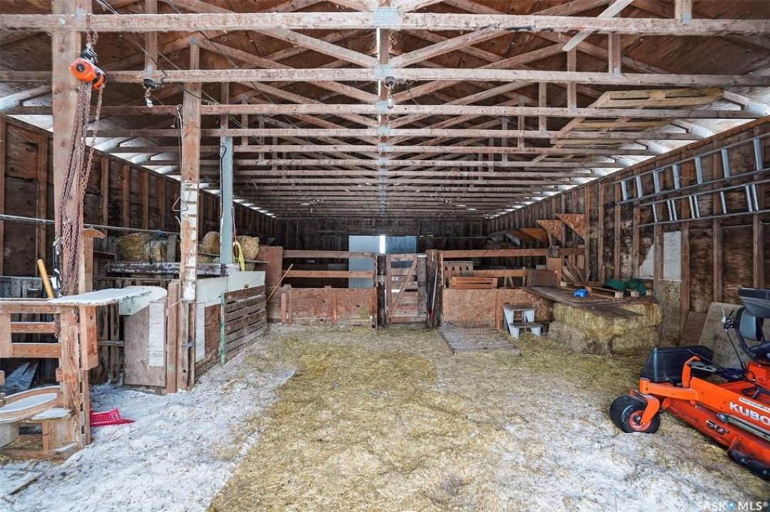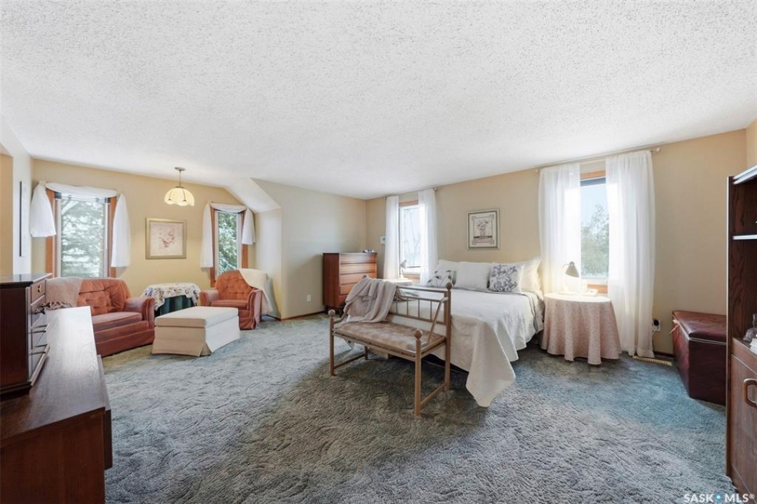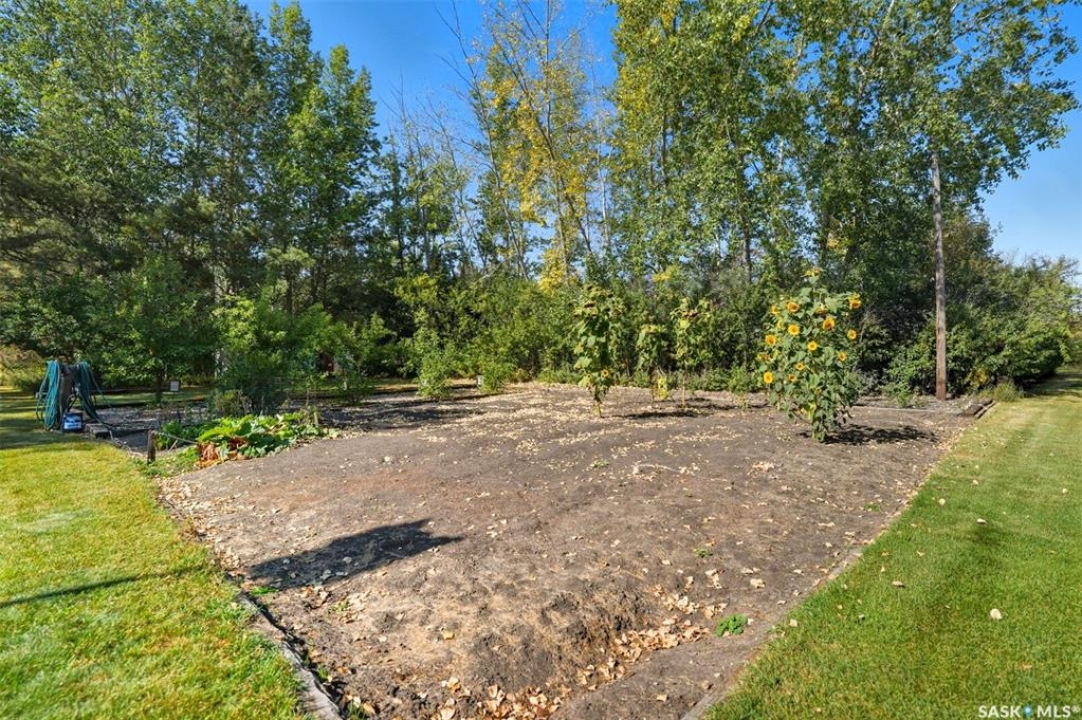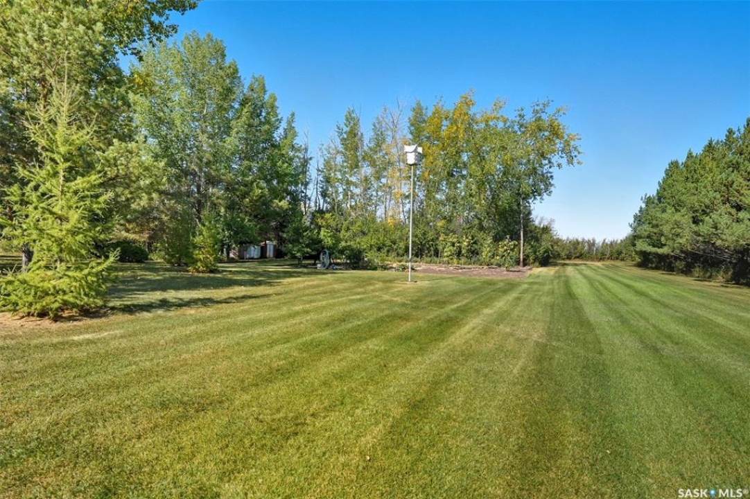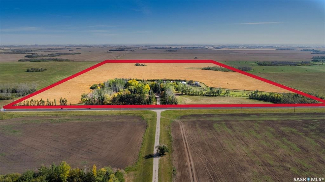 What a great 80 acre acreage!. This stunning bi-level boasts tons of light, 4 large bedrooms including a 472 sq ft Primary bedroom! Vaulted ceilings in living room with a massive stone fireplace. Basement has a steel beam allowing for a stunning new build-out with oversized windows. City water and natural gas to the home. Oversized 26x22 garage with easy addition to 4 or 6 car garage possiblility. Nicely situated on pavement West of Saskatoon approximately 6 minutes. Many outbuildings (barn). Prime grain land is leased by a local farmer.