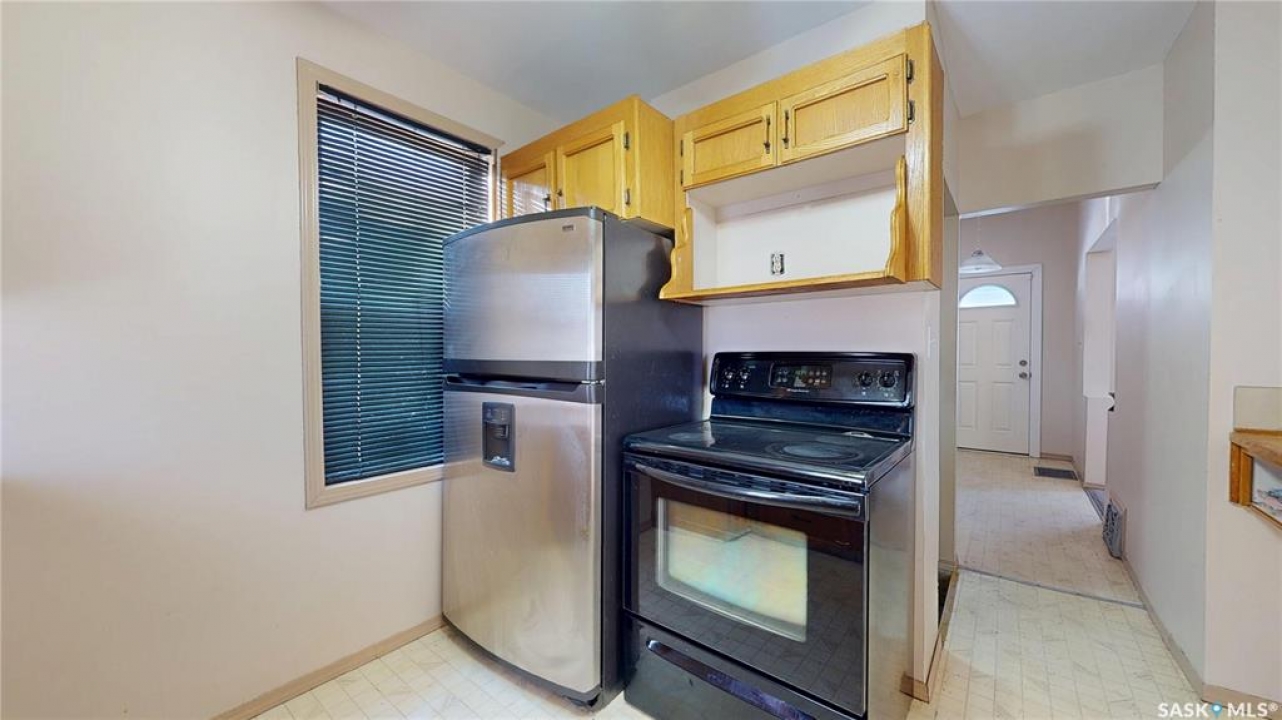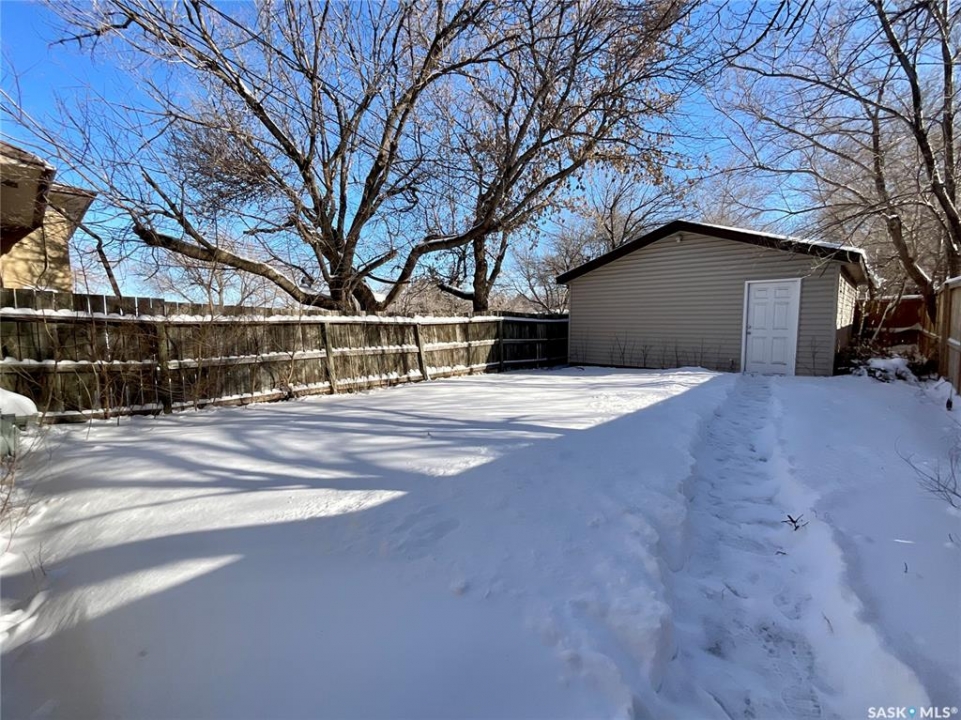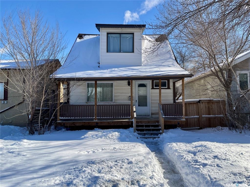 Affordable living with the opportunity to own for less than rent! This pleasant 2 bedroom home welcomes you with a beautiful verandah (2021). A perfect place to sit and watch the world around you from. Inside, the bright and inviting main floor features high ceilings, neutral tones, and large windows that fill the living and dining areas with natural light. The dining room is big enough for good sized meals together, games night, or great conversations. The kitchen is open to the dining area – suitable for everyday living. Upstairs you'll find two generously sized bedrooms and a full 4-piece bath; with lots of windows on this floor as well. The open basement provides excellent storage and possible future development – perhaps a gaming area. Outside you can enjoy a fully fenced backyard and impressive double detached garage. A few bonus features of this home include some newer windows, high ceilings on the main floor, and shingles in 2021. It is located close to Grassick Playground and Park, Bus routes, and shopping. Great home great price – book your showing today.
