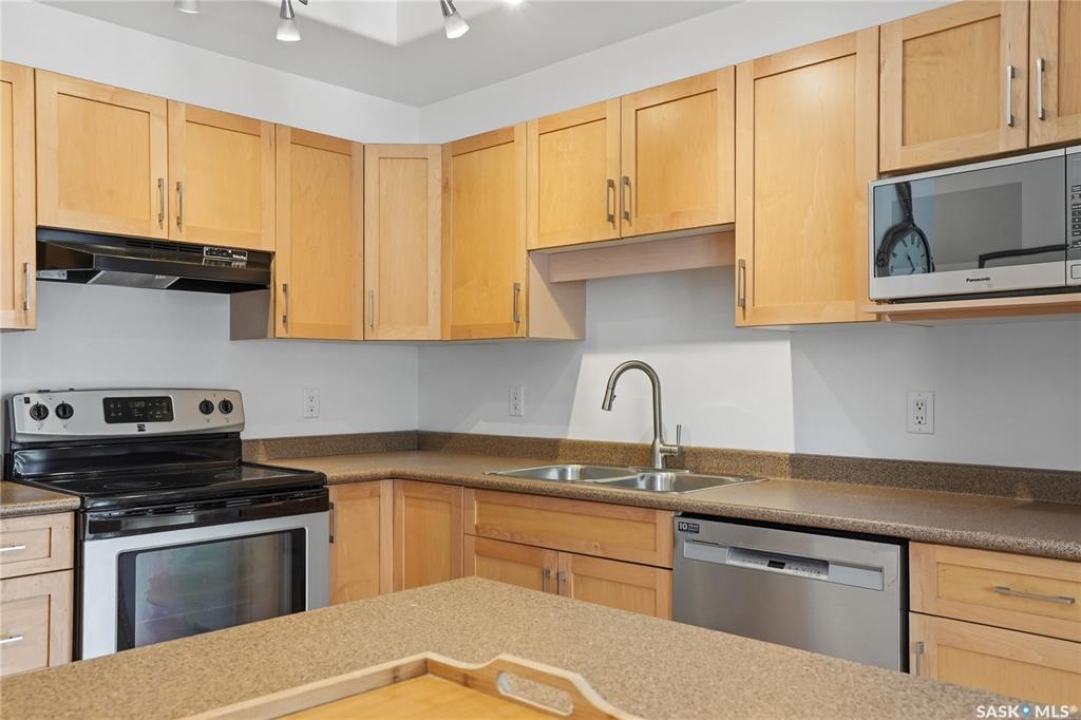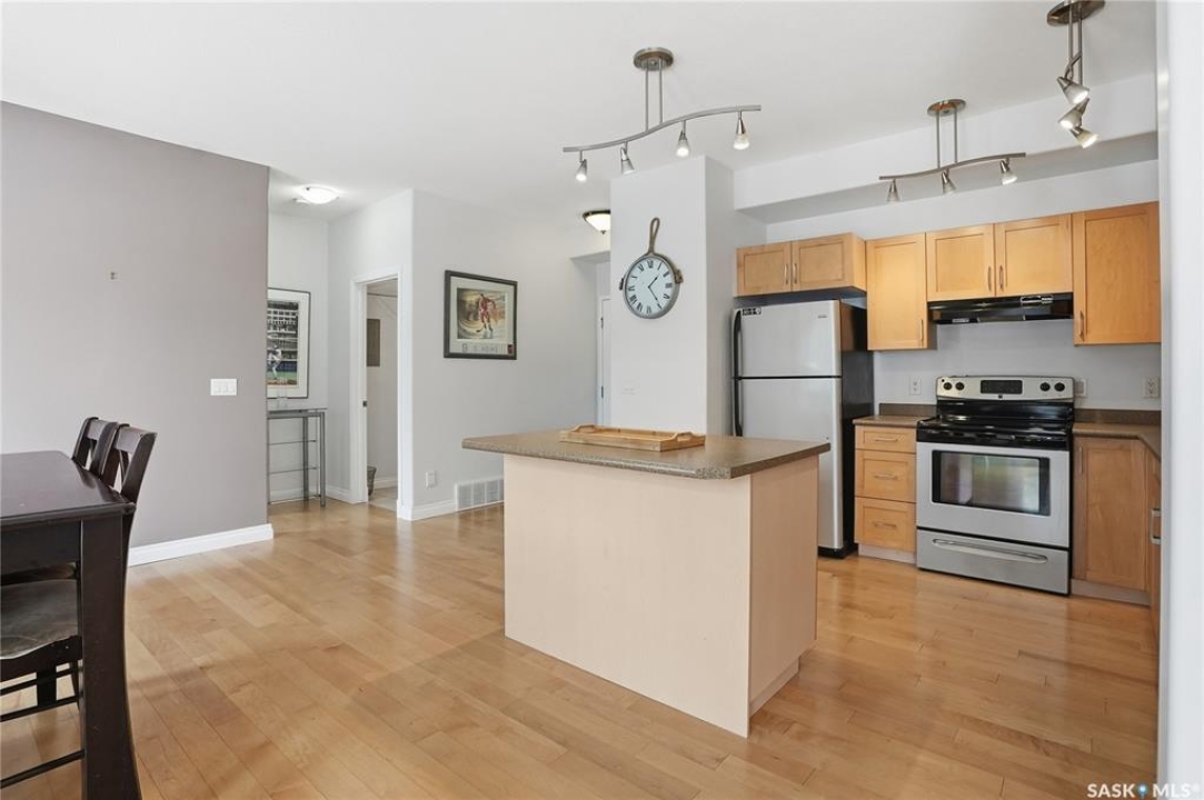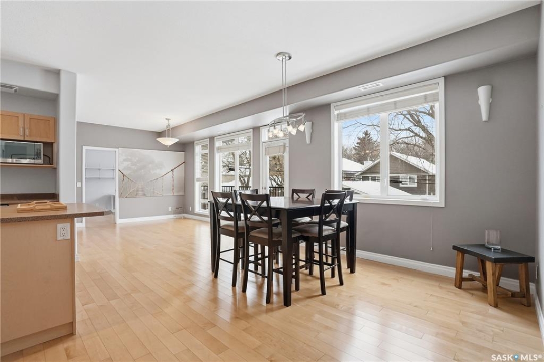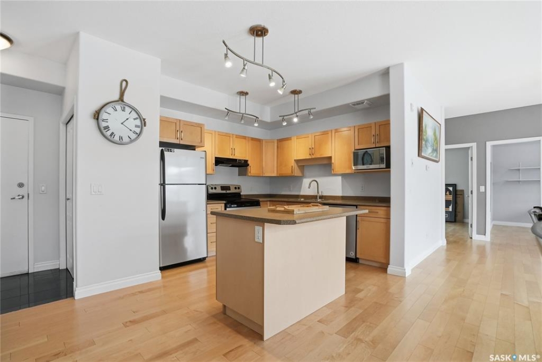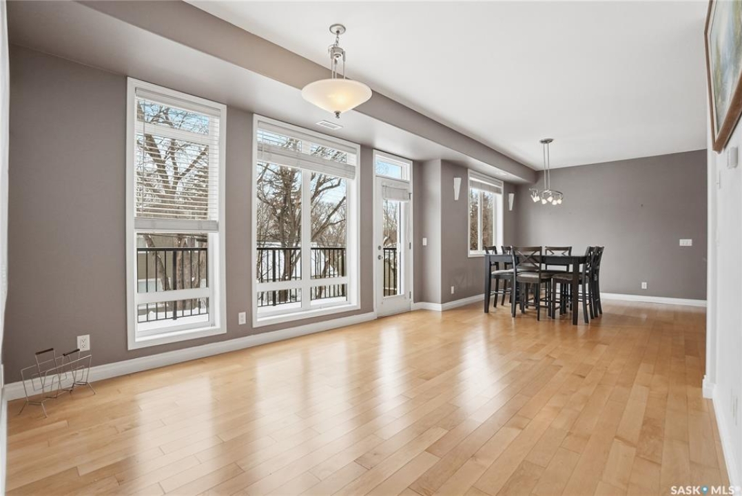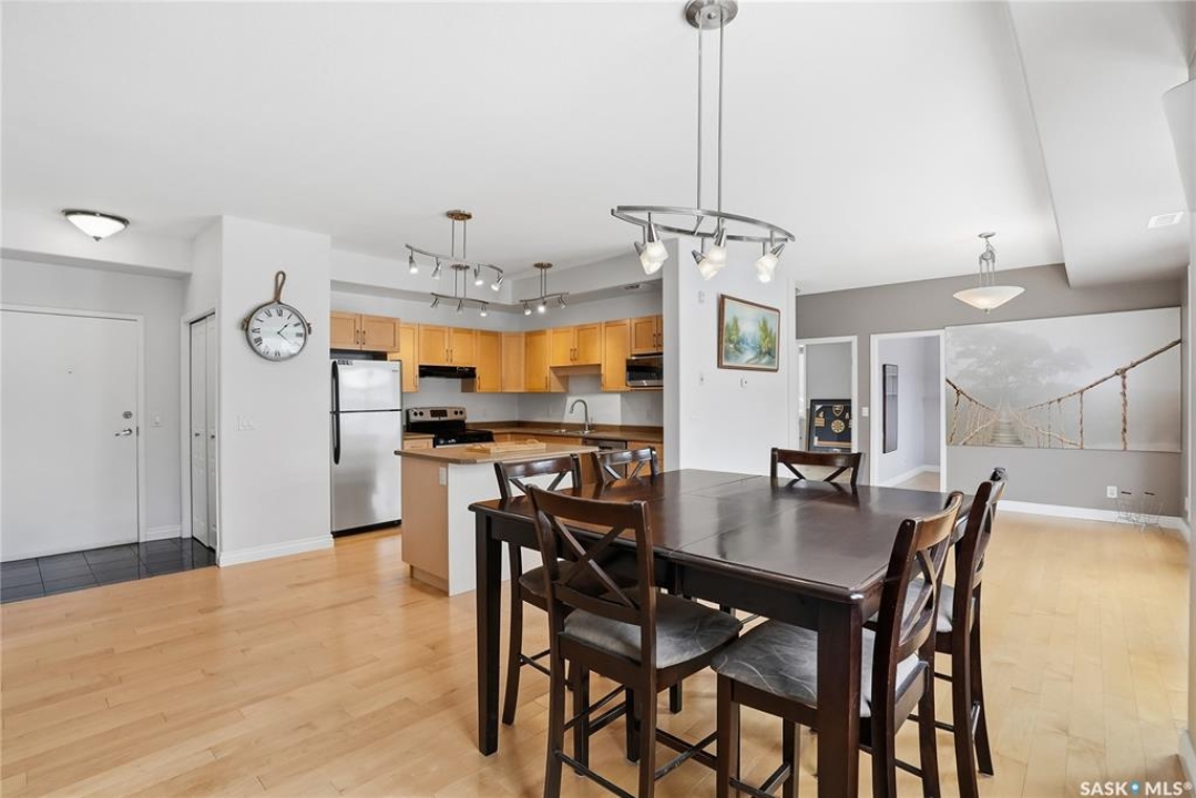 Location, location! This spacious 3-bedroom, 2 full bathroom condo is situated on the quiet east-facing side of the building, offering peaceful mornings and beautiful natural light throughout the day. The very open-concept layout is perfect for comfortable living and entertaining, featuring lovely maple cabinetry, hardwood floors, and tile upgrades that add warmth and style. Large windows fill the space with light and overlook the private balcony, creating an inviting atmosphere. Enjoy the convenience of in-suite laundry, central air conditioning, and one underground parking stall complete with additional storage. Ideally located close to the University of Saskatchewan and all amenities, with public transit right outside your door. Three-bedroom condos near the U of S are almost impossible to find, making this unit in a highly sought-after building a rare opportunity. You won't be disappointed — contact your agent today for more details or to book your personal tour.