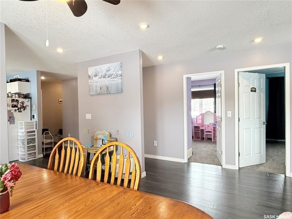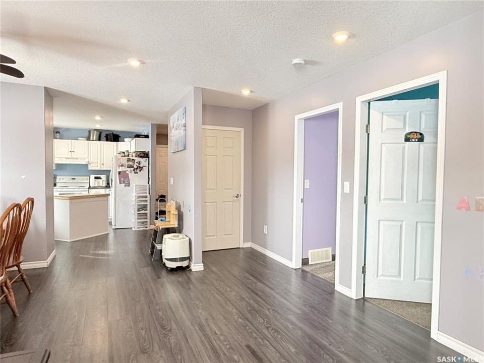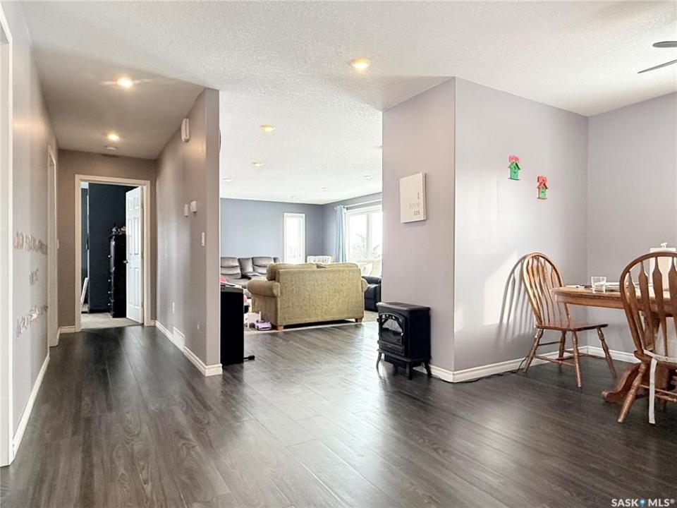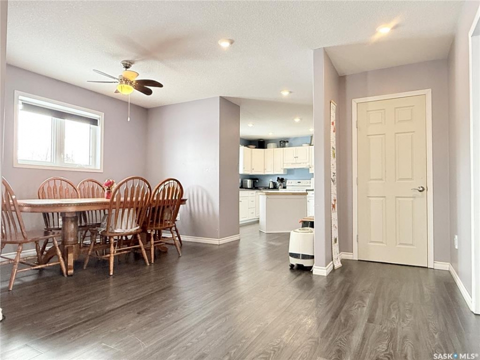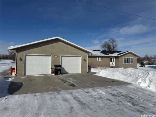 If you've been picturing a move to a quiet Saskatchewan community where life feels a little simpler—but you still want space and modern comfort—welcome to 141 Queen Street in Goodeve, SK, located 30 km west of Melville on Highway 15. Built in 2015 and set on a generous 75 x 150 corner lot, this 1,512 sq ft home offers convenient one-level living with room for everyone. The garage setup is impressive: a double attached heated garage with its own 100-amp service panel, plus an additional single garage for extra vehicles, toys, or storage. You'll appreciate the direct entry into the home, leading to a practical laundry area and a tucked-away 2-piece bathroom, nicely separated from the main living space. The kitchen is designed for everyday function, featuring a walk-in pantry, ample counter space, and an island for additional prep and storage. The dining area easily accommodates family gatherings, and the living room is bright and welcoming. Three bedrooms and a spacious 4-piece bathroom with great storage complete the main floor. A dedicated utility/storage room houses the water heater, water softener, and 200-amp service panel. While there is no basement, the 4-foot crawl space provides excellent storage and is home to the furnace, HRV unit, sump pit, and backwater valve. Flooring includes carpet in the bedrooms and living room, with durable vinyl plank throughout the remaining areas. Closet organizers in the bedrooms and front entry add thoughtful functionality. Recent updates include central air conditioning (2024), natural gas heat in the double attached garage (2023), and a built-in dishwasher added in December 2023. The kitchen island, blinds, floating shelves, TV mounts, fridge, stove, washer, and dryer are all included. Solid, practical, and move-in ready—this home is prepared for its next chapter.