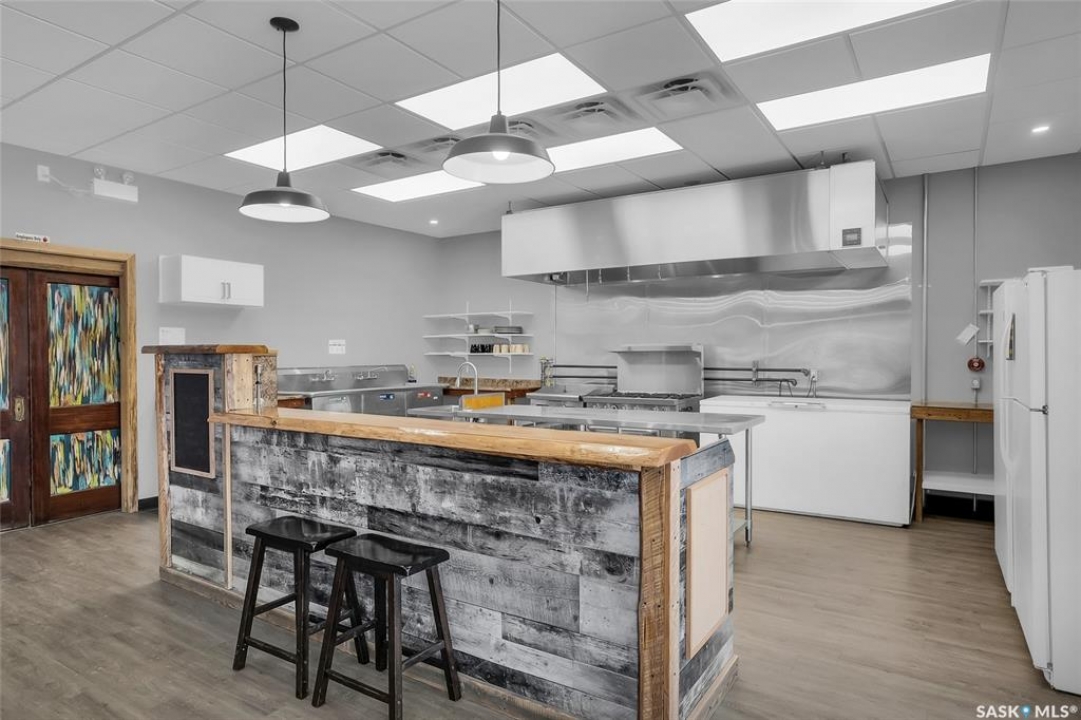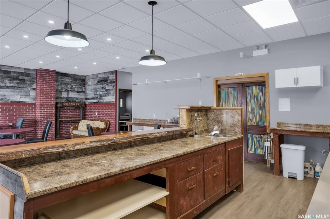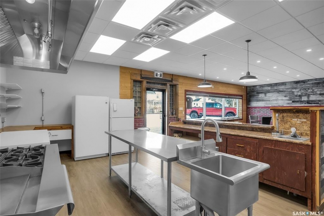 Kenaston is where opportunity meets visibility—and where imagination can truly take shape. Positioned directly on the twinned, double-lane Highway 11, the primary trucking corridor between Saskatoon and Regina, and at the junction of Highways 11 and 15, this fully renovated, turn-key commercial building places your business—or multiple businesses—in front of steady commuter, transport, agricultural, and local traffic every day. Surrounded by strong farming operations and ideally located between Saskatchewan's two largest cities, Kenaston offers consistent highway exposure without big-city overhead, plus the affordability and community support that allow entrepreneurs to grow and diversify. Set on a high-visibility double corner lot with room for a summer patio, this certified restaurant space includes tables, chairs, and appliances and is ready to operate, while offering flexibility for layered income opportunities such as a café and bistro concept, restaurant with retail, or catering and specialty services. Inside features a welcoming seating area, two wheelchair-accessible restrooms, air conditioning, a private back office, and a versatile additional room previously approved as a tattoo studio and currently used for aesthetics—ideal for rental income, expansion, or a complementary second business. The commercial kitchen is built for performance with an approximate $50,000 professional ventilation system, gas grill, gas oven, six-burner range, and large freezer, while the full basement provides extensive storage or future development potential. Major upgrades include a new furnace and water heater, updated electrical and plumbing, stucco exterior (2022), newer doors and windows, and a 2017 roof. With two gas stations already capturing steady road traffic, the demand for a standout destination stop is clear—this property is primed to become Kenaston's next community anchor, where creativity meets cash flow.