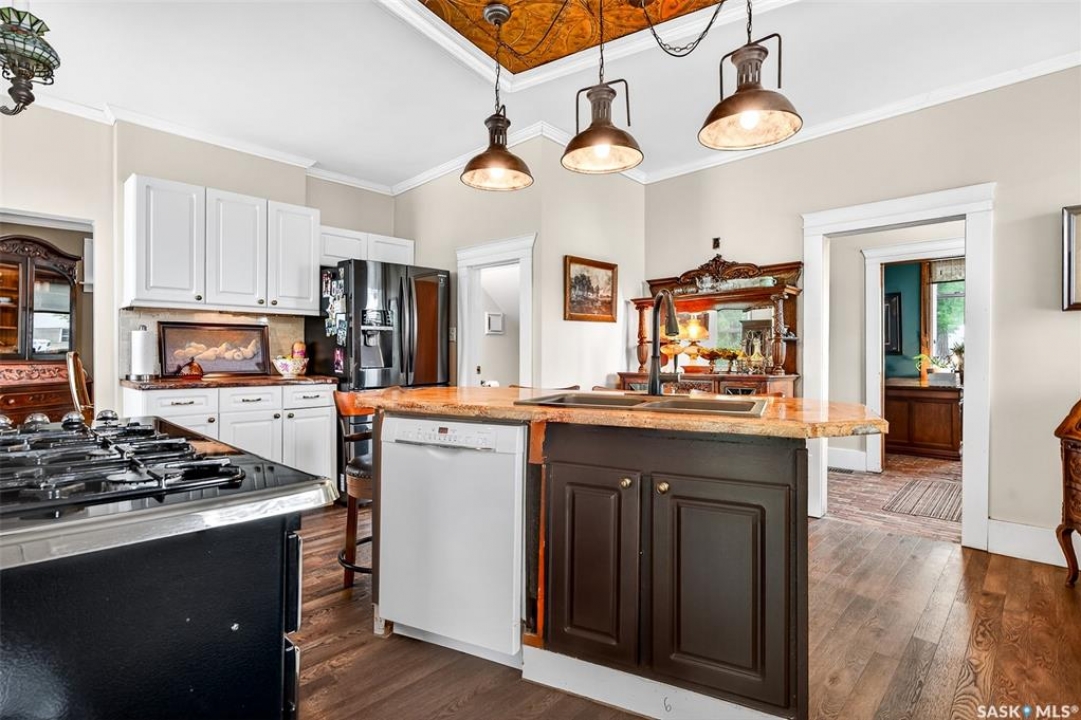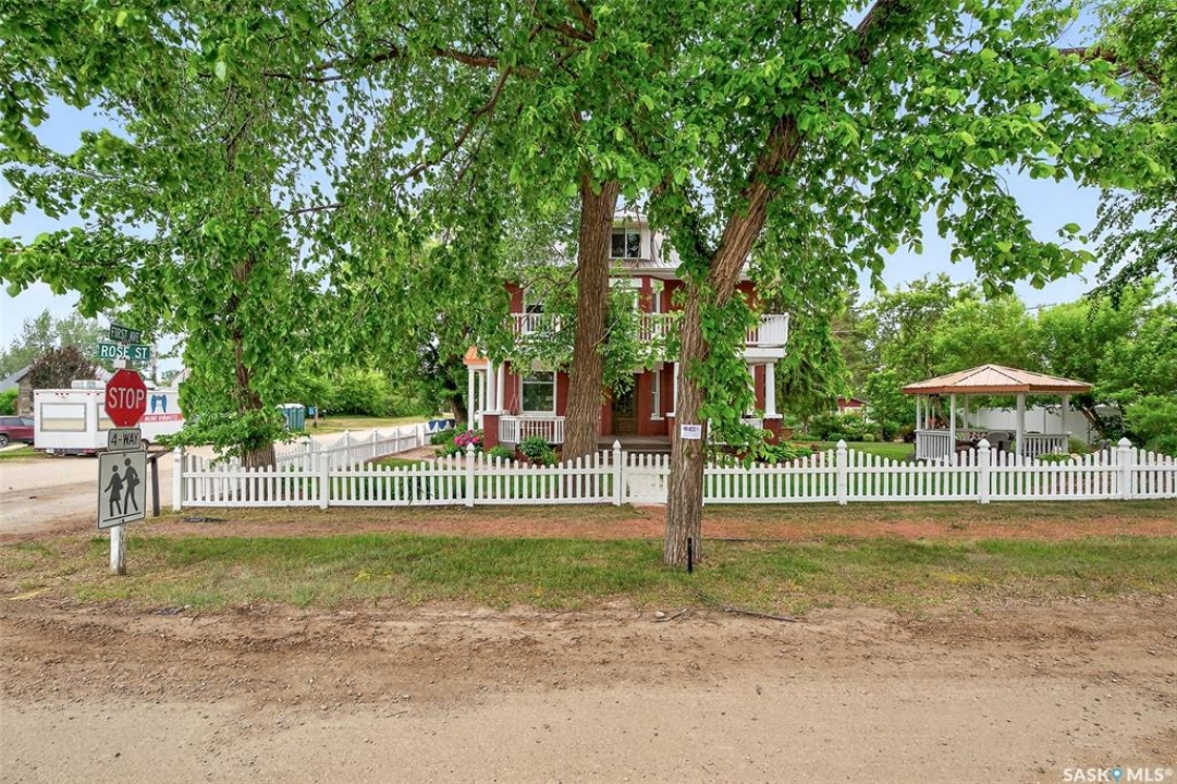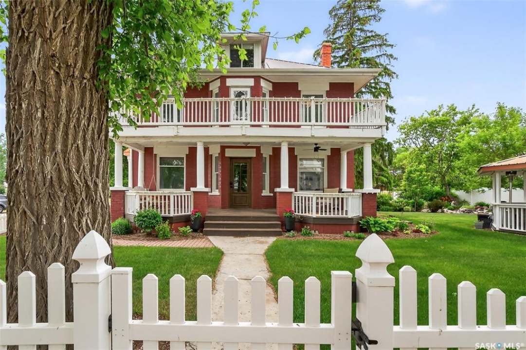 Looking for a once in a lifetime opportunity to own one of the most stunning character homes around? You won't want to miss this one! This 3 storey double brick home boasts 2,600 sq.ft. of living space on 3 floors with 3 bedrooms and 2 bathrooms. Sitting on 4 large corner lots with the most beautiful landscaping around. This iconic home stands out as soon as you see it with its excellent curb appeal. This yard features a vinyl fence, stunning gazebo, custom riverbed, stunning rock gardens, beautiful flowers and a stamped concrete pad with a rock fireplace. The home features a huge covered veranda which welcomes you into a beautiful foyer. Leading into a huge open living / dining room complete with a wood fireplace and beautiful hardwood floors. On the other side of the front door we find an office and second entrance - you are sure to love the real brick flooring. At the back of the home we have a huge kitchen which is sure to impress! Complete with a stunning custom gas stove that matches the era and a beautiful island that ties it all together. Off the kitchen we find one of the cutest sunrooms you can find - you will spend many hours here. Heading upstairs we find a huge second floor balcony with 3 large bedrooms! The primary bedroom features a seating area and a large walk-in closet. There is laundry on the second floor for added convenience. The absolutely stunning 4 piece bathroom will blow you away! From the clawfoot soaker tub to the copper sink or stunning vanity it will impress you. Heading up to the third floor we have a large loft space finished in pine that could be used as a 4th bedroom, playroom or yoga loft! The basement features a large family room, workshop, and lots of storage! If you are looking for a different pace of life Mortlach is an excellent little town. Located just 30 minutes west of Moose Jaw and boasting a K-12 school! There is so much more to see - book your walkthrough today!