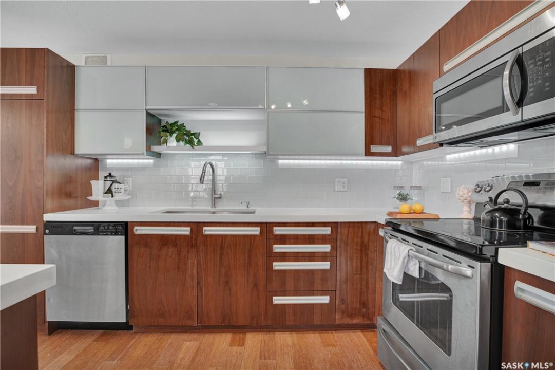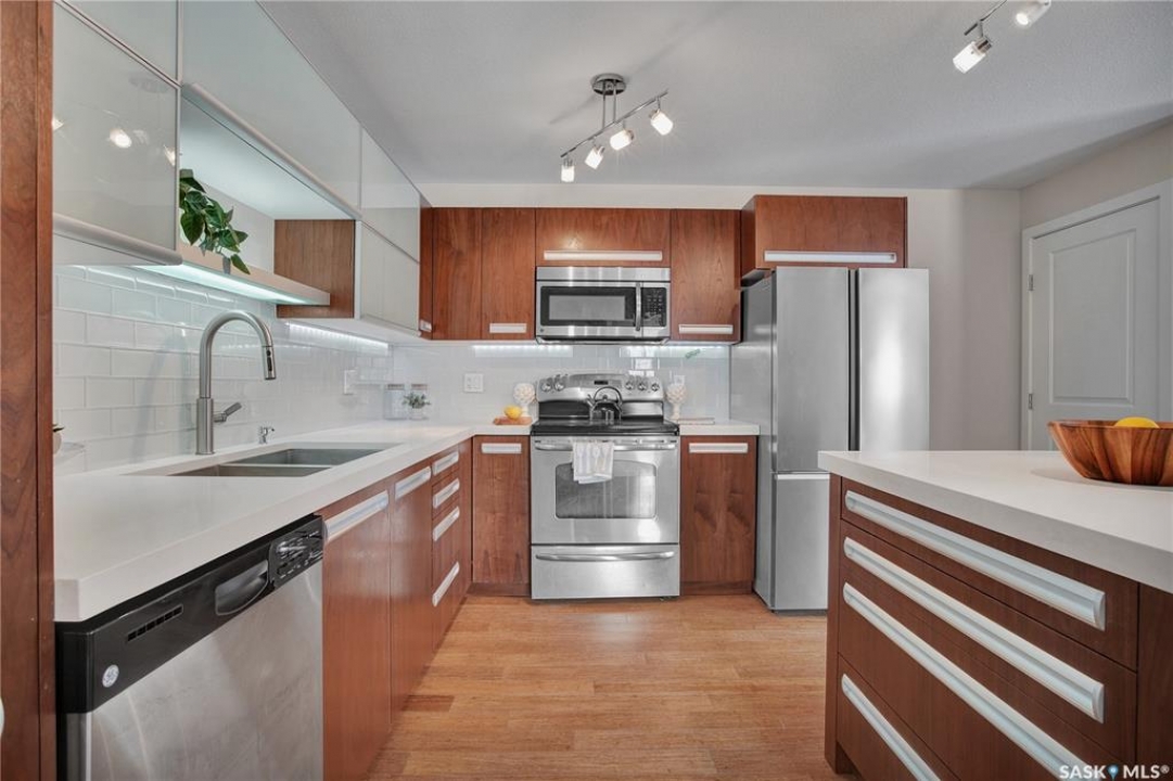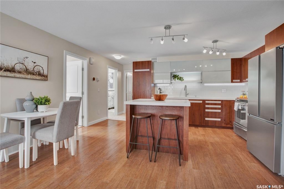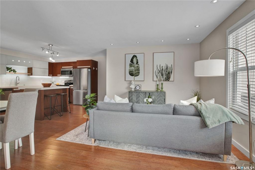 Check it this sought after main floor, bungalow style condo at the Ginger Lofts on Patrick Crescent in Willowgrove! This pristine condo offer ~ 1800 square feet of developed space with the developed basement. The main floor features an open concept living room and kitchen area with bamboo hardwood floors & quartz countertops & stainless steel appliances ( fridge is newer). There are two good sized bedrooms with brand new carpet. On this main level you will find a laundry room and 4 piece bathroom . Now to the basement...!! You will be wowed with this wonderful space. It features two dens ( with closets), a large games room and 3 piece bathroom with an awesome steam shower. The games room has a home theatre ( with a de-coupled common wall, sound dampening insulation and green glue acoustic dampening sealant). It also includes an Epson 4K HDR 10+ home theatre projector with high quality built in speakers. The ceiling tiles have two types of pot lights to create the desired ambiance! The entire condo has recently been repainted ! The location for this condo is lovely as it faces the interior and has a courtyard in the front. You will note that there is ample visitor parking close to this unit. This complex is pet friendly with board approval. This Willowgrove location is close to shopping and amenities in Willowgrove, University Heights ad Brighton & easy access to the U of S. Given this condo's excellent condition, size, basement and development , it will make a wonderful new home for one lucky family!! Be sure to call your favourite Saskatoon Real Estate Agent today to set up your personal viewing.