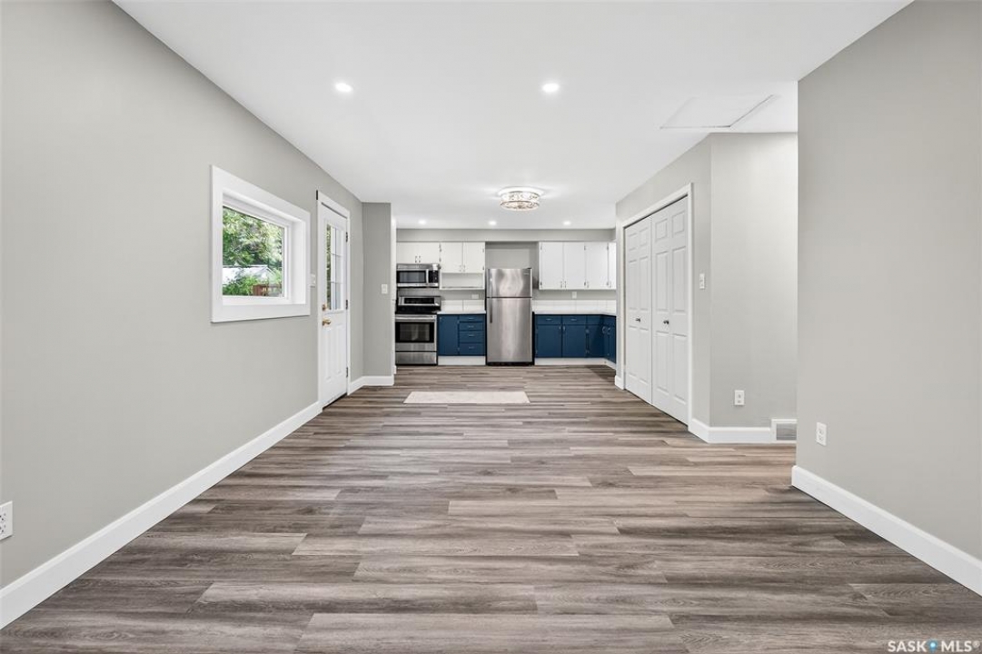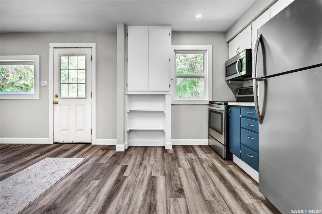 Are you looking for an updated starter home? This super cute 2 bed and 1 bath boasts just over 700 sq.ft. has just been extensively renovated. Excellent curb appeal as you pull up with one of the cutest decks! Situated on a beautifully treed corner lot! Heading in the back door you are greeted by an open concept living area with a living space to one side and kitchen on the other leaving space for a dining room in the middle. The kitchen boasts 2 tone cabinets, lots of counter space and a stainless steel appliance package. Down the hall we find 2 bedrooms as well as a stunning 4 piece bath and main floor laundry! So much work has just been done to this home - all that is left is too move in and enjoy it! Outside we have a 14'x22' garage complete with a new door and opener. You are sure to love the shade from all of the trees on your back deck or patio! So many updates just done - new appliances, new furnace, hot water tank, new bathroom, new drywall, updated electrical and plumbing, new flooring and paint throughout! If you are looking for easy and affordable living this could be the home for you! Reach out today to book your showing!