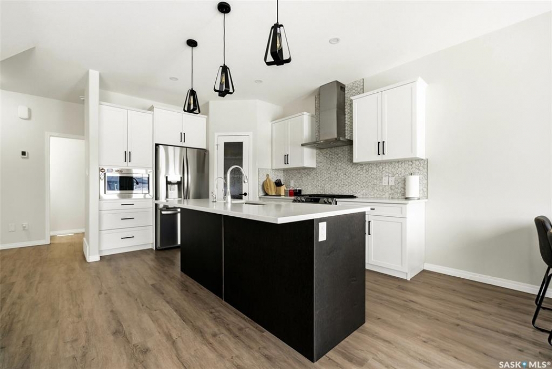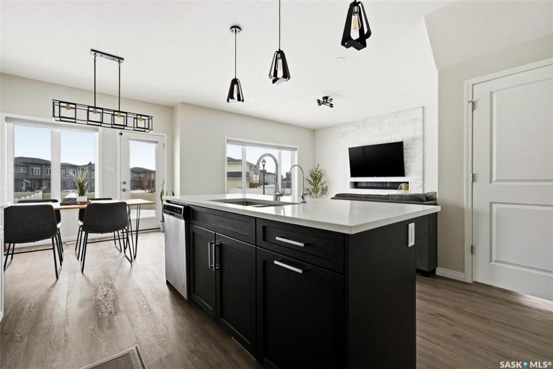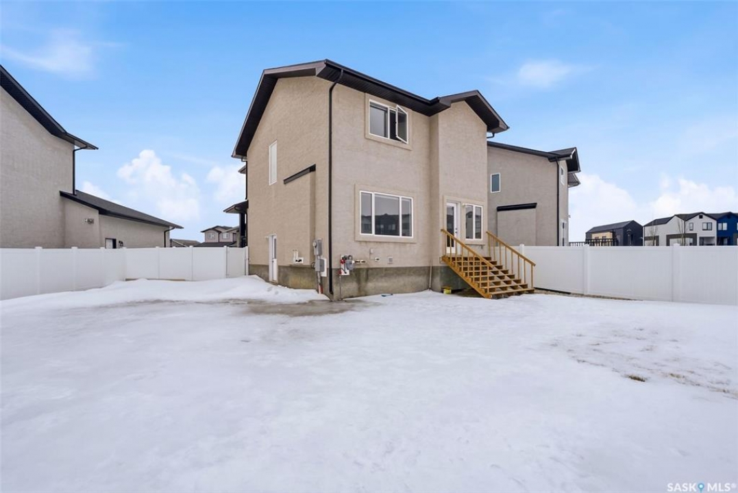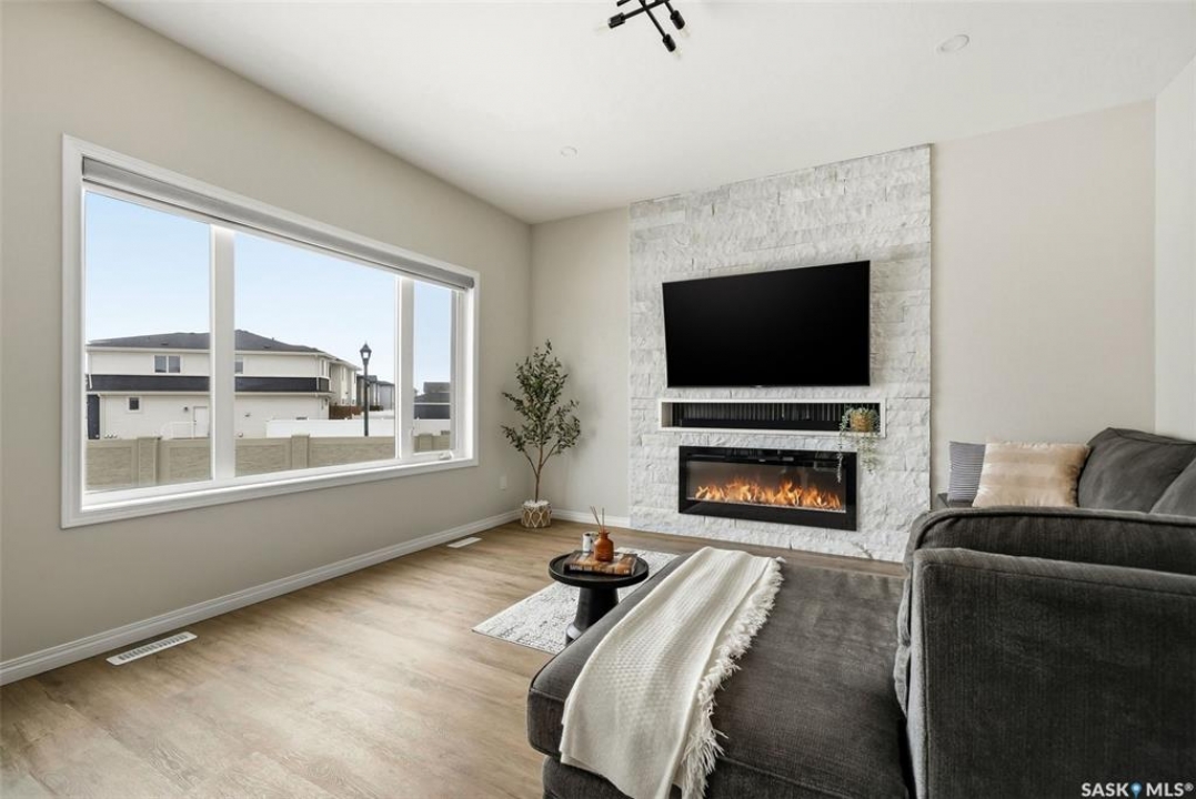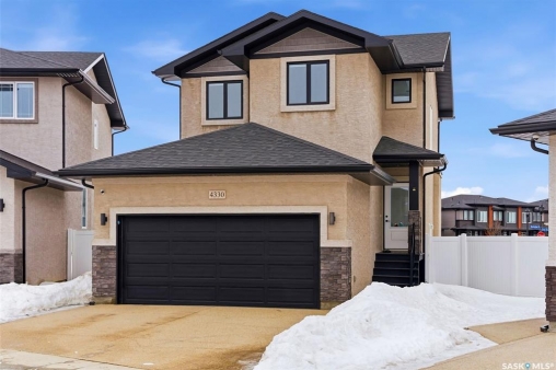 Welcome to 4330 Kinloch Bay E in The Towns—an impressive 2-storey home offering modern style, a functional family-friendly layout, and a huge fully fenced backyard. Built in 2021, this well-kept home features 1,609 sq. ft. above grade with 3 bedrooms, 3 bathrooms, and a bright second-floor bonus room. The main floor showcases an open-concept design with durable vinyl plank flooring, a stunning living room feature wall with electric fireplace, and a beautiful kitchen finished with quartz counters, two-tone cabinetry, tile backsplash, stainless steel appliances, gas range, and a large island perfect for everyday living and entertaining. The dining area overlooks the backyard and offers direct access outside. You'll also appreciate main floor laundry and a convenient 2-piece bath. Upstairs, the spacious primary suite includes a 3-piece ensuite, while two additional bedrooms and a full 4-piece bath complete the level. The full basement is unfinished and ready for your future development, with a separate entry for added flexibility. Additional features include central A/C, on-demand hot water, sump pump, double attached garage, exposed aggregate double driveway, and parking for 4 vehicles. Situated on a generous 8,380 sq. ft. lot, this home offers excellent outdoor space and room to grow in a sought-after east Regina neighbourhood.