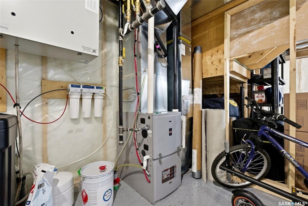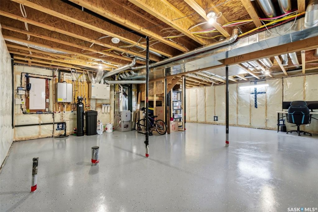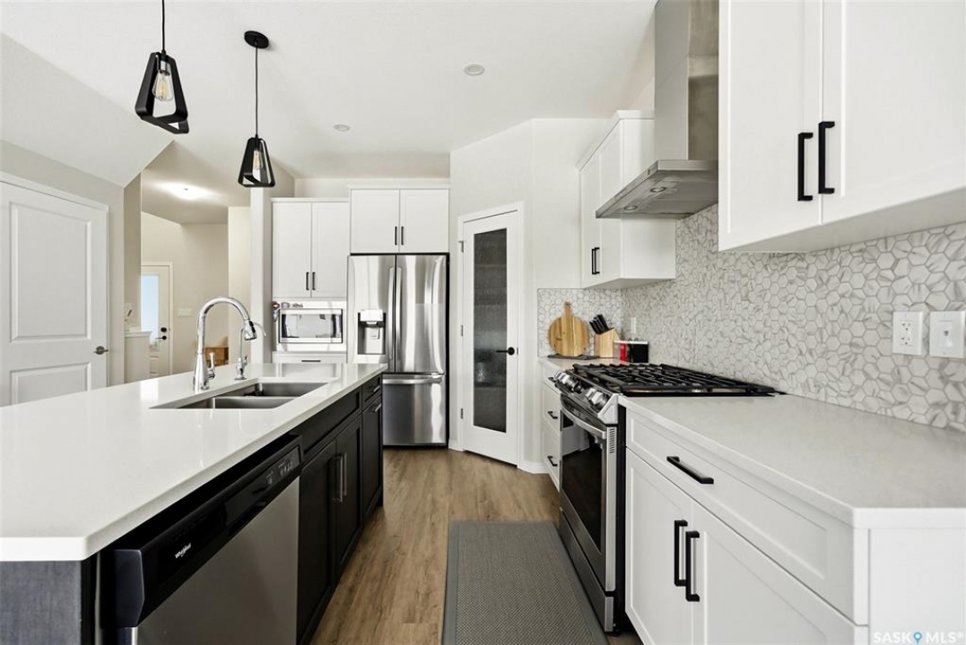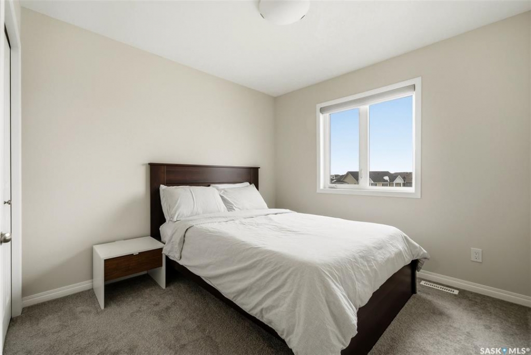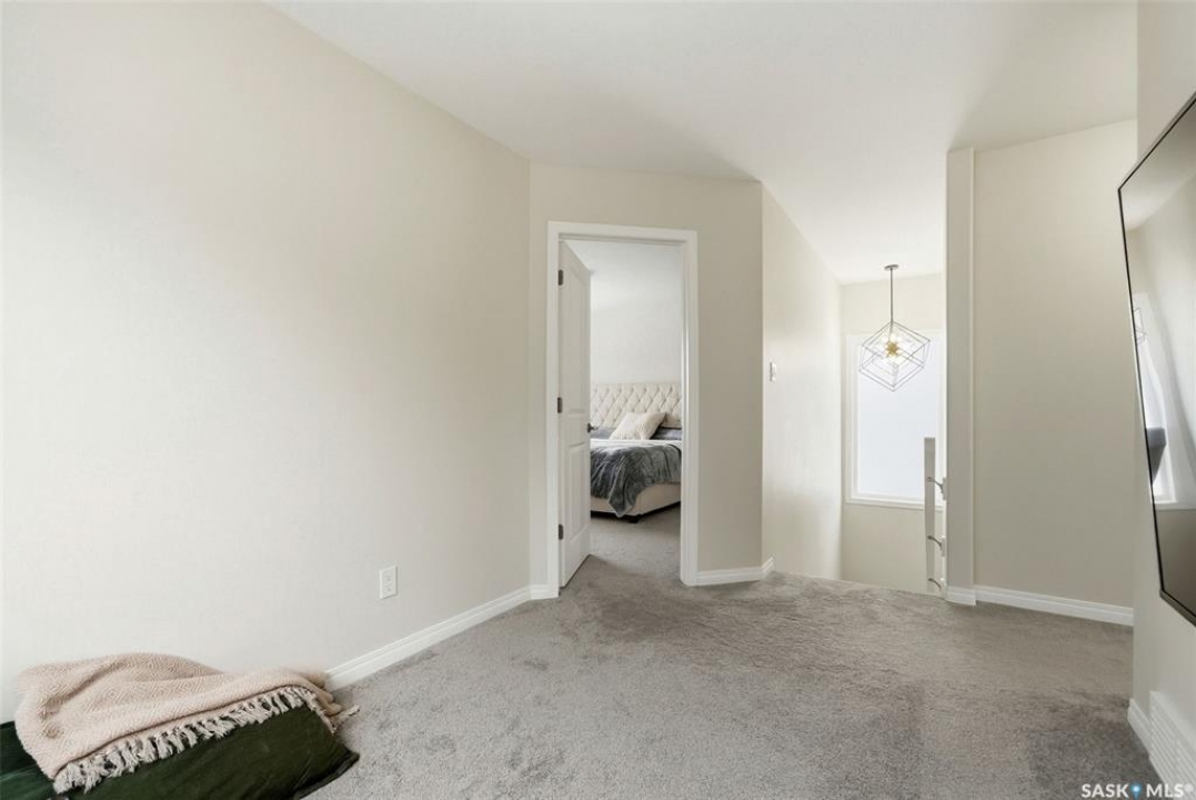 Welcome to 4330 Kinloch Bay E in The Towns—an impressive 2-storey home offering modern style, a functional family-friendly layout, and a huge fully fenced backyard. Built in 2021, this well-kept home features 1,609 sq. ft. above grade with 3 bedrooms, 3 bathrooms, and a bright second-floor bonus room. The main floor showcases an open-concept design with durable vinyl plank flooring, a stunning living room feature wall with electric fireplace, and a beautiful kitchen finished with quartz counters, two-tone cabinetry, tile backsplash, stainless steel appliances, gas range, and a large island perfect for everyday living and entertaining. The dining area overlooks the backyard and offers direct access outside. You'll also appreciate main floor laundry and a convenient 2-piece bath. Upstairs, the spacious primary suite includes a 3-piece ensuite, while two additional bedrooms and a full 4-piece bath complete the level. The full basement is unfinished and ready for your future development, with a separate entry for added flexibility. Additional features include central A/C, on-demand hot water, sump pump, double attached garage, exposed aggregate double driveway, and parking for 4 vehicles. Situated on a generous 8,380 sq. ft. lot, this home offers excellent outdoor space and room to grow in a sought-after east Regina neighbourhood.