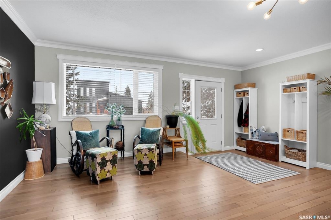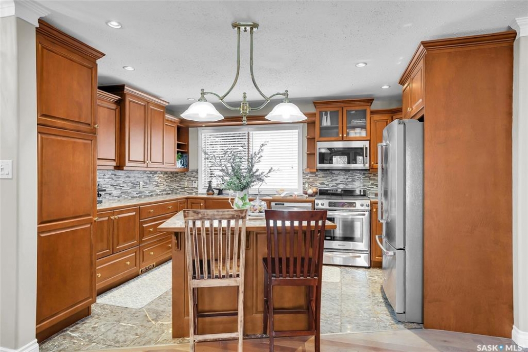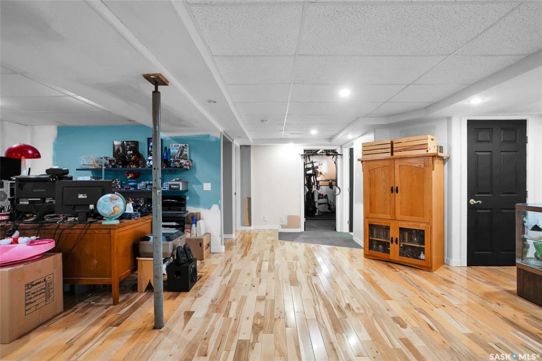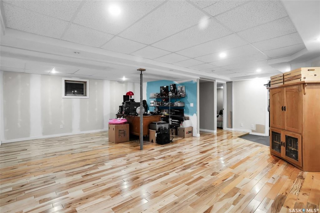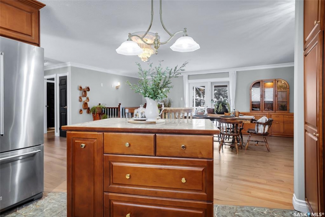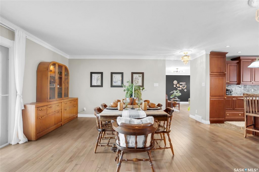 Welcome to 111 Norman Avenue in Aberdeen, where you get full on acreage energy without leaving town! Sitting on four lots wrapped in mature trees and privacy, this property feels like you're living at the lake, yet you're just minutes to Highway 11 for an easy commute to Warman, Saskatoon, or a quick escape north to Lakeland. This thoroughly updated bungalow brings the vibe with hardwood throughout the main floor, a bright modern 4-piece bath with updated plumbing (2025), and a primary bedroom that honestly feels like a boutique retreat — vaulted ceilings, skylight, built-in speakers, patio doors (replaced 2015) leading to the deck, plus a dreamy ensuite with soaker tub and your own dry sauna. The oversized living room (converted from the original attached garage) gives you that open, flexible space perfect for hosting, creating, or just spreading out, while the basement is wired for a projector so movie nights hit different. Major upgrades bring peace of mind: shingles redone in 2024, sewer line replaced from the town to the house (cost shared between seller and town), attic insulation topped up in 2022, plumbing updated in the kitchen in 2025, furnace tuned up with parts replaced in 2025, and appliances replaced in 2014 (fridge updated in 2016). With central air and thoughtful improvements throughout, this home is truly move-in ready….but the real flex? Two detached garages (single and double), with 220 power in the single garage, two driveways, nine off-street parking spots, RV parking, and endless room for hobbies, side hustles, car builds, boats, trailers, and all the toys. The massive back deck and private yard make everyday life feel like a weekend getaway. If you've been craving space, freedom, and a slower pace without sacrificing connection, this is that rare small-town lifestyle upgrade that just makes sense.