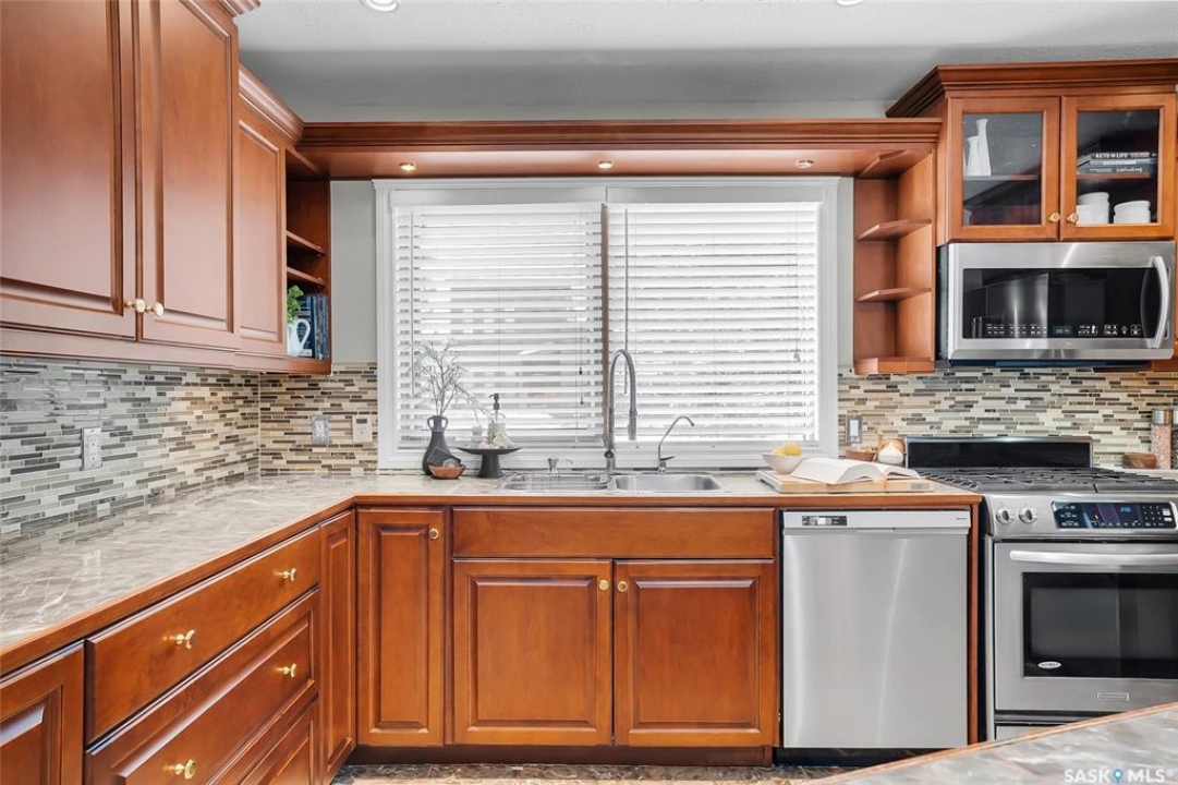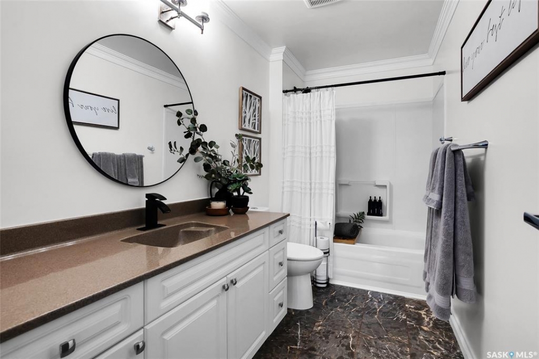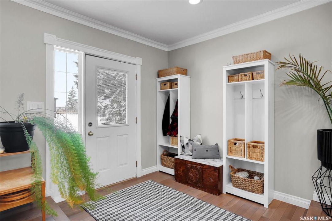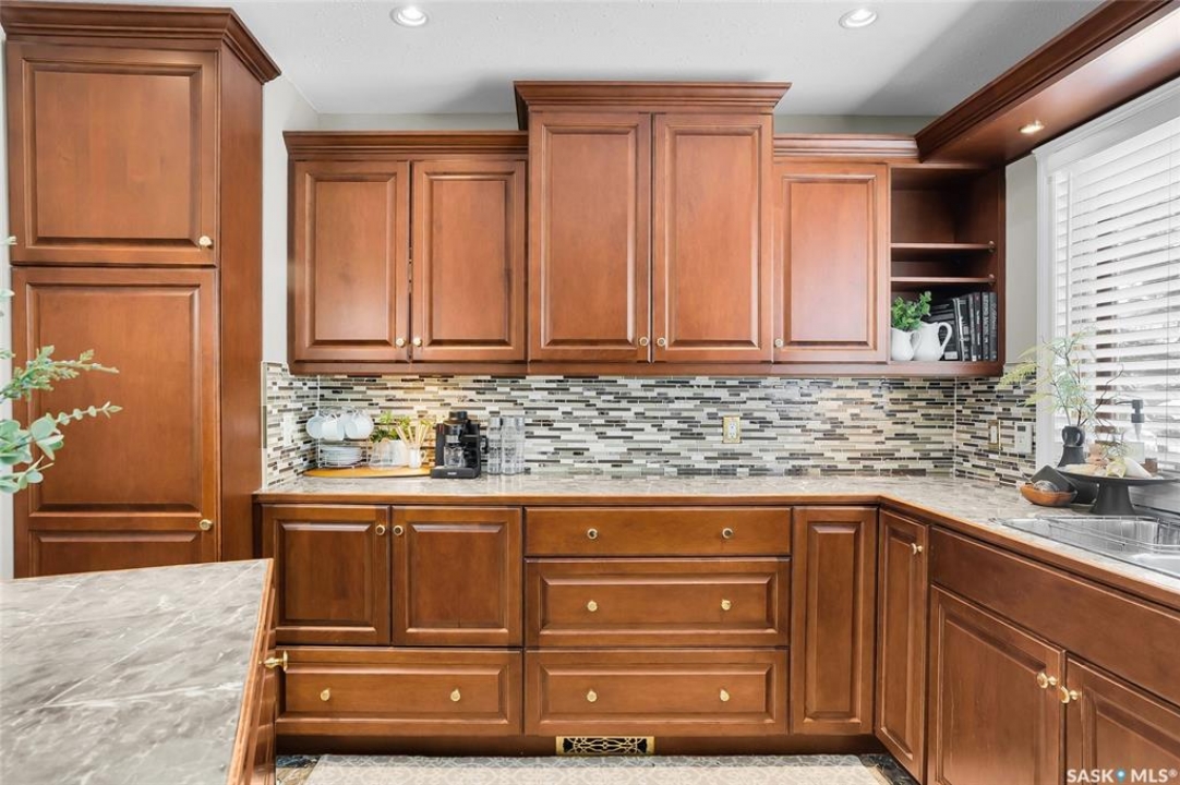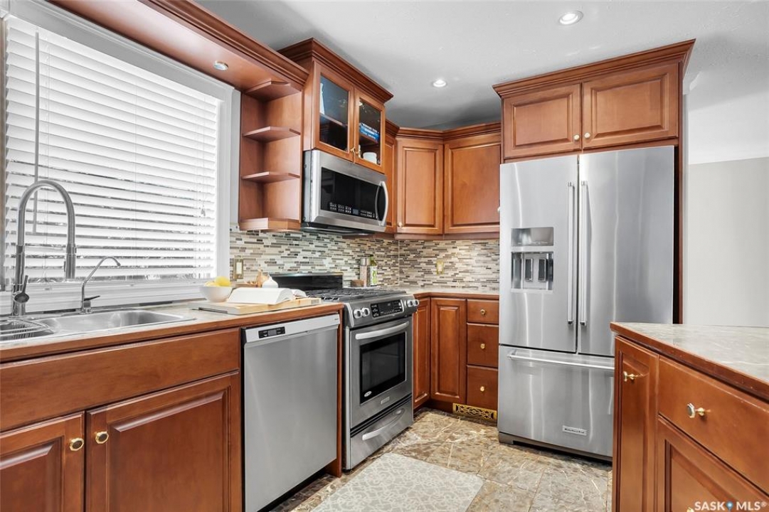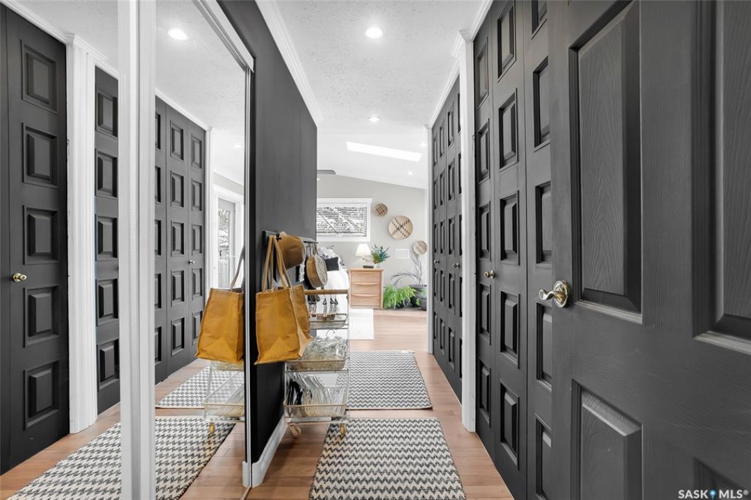 Welcome to 111 Norman Avenue in Aberdeen, where you get full on acreage energy without leaving town! Sitting on four lots wrapped in mature trees and privacy, this property feels like you're living at the lake, yet you're just minutes to Highway 11 for an easy commute to Warman, Saskatoon, or a quick escape north to Lakeland. This thoroughly updated bungalow brings the vibe with hardwood throughout the main floor, a bright modern 4-piece bath with updated plumbing (2025), and a primary bedroom that honestly feels like a boutique retreat — vaulted ceilings, skylight, built-in speakers, patio doors (replaced 2015) leading to the deck, plus a dreamy ensuite with soaker tub and your own dry sauna. The oversized living room (converted from the original attached garage) gives you that open, flexible space perfect for hosting, creating, or just spreading out, while the basement is wired for a projector so movie nights hit different. Major upgrades bring peace of mind: shingles redone in 2024, sewer line replaced from the town to the house (cost shared between seller and town), attic insulation topped up in 2022, plumbing updated in the kitchen in 2025, furnace tuned up with parts replaced in 2025, and appliances replaced in 2014 (fridge updated in 2016). With central air and thoughtful improvements throughout, this home is truly move-in ready….but the real flex? Two detached garages (single and double), with 220 power in the single garage, two driveways, nine off-street parking spots, RV parking, and endless room for hobbies, side hustles, car builds, boats, trailers, and all the toys. The massive back deck and private yard make everyday life feel like a weekend getaway. If you've been craving space, freedom, and a slower pace without sacrificing connection, this is that rare small-town lifestyle upgrade that just makes sense.