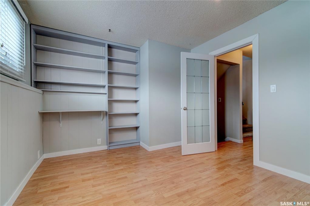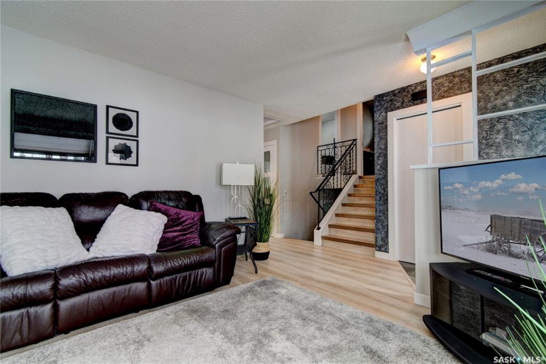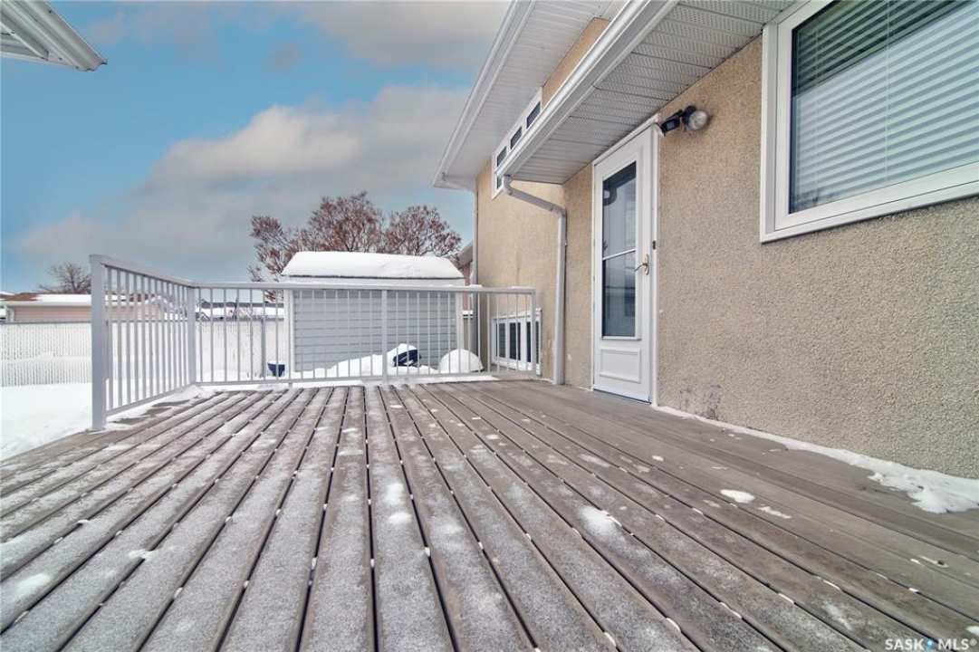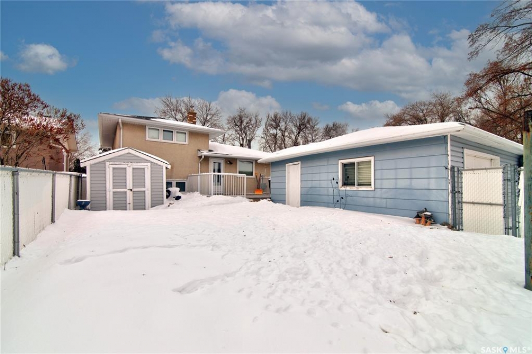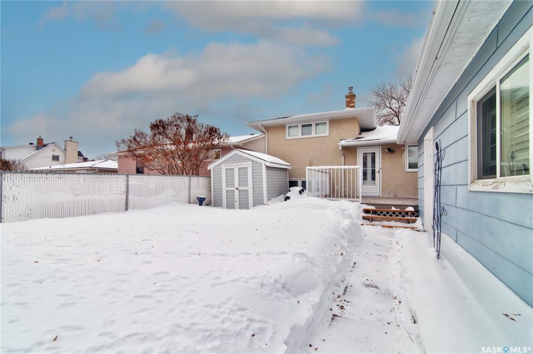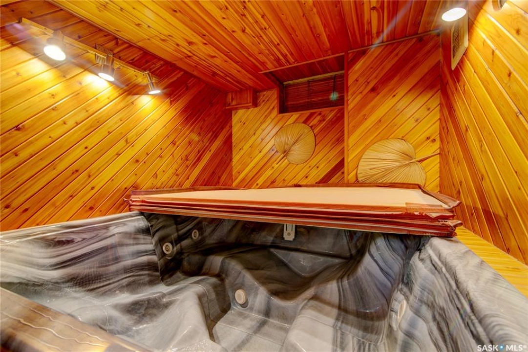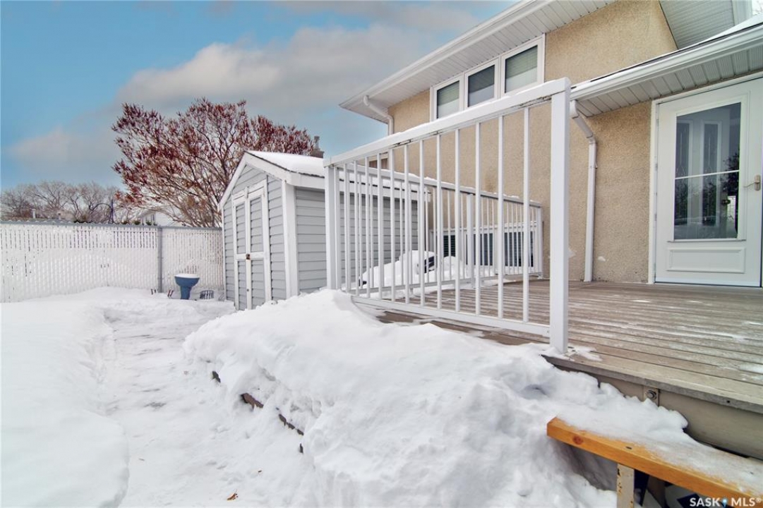 Don't miss the opportunity to own this well cared for 4 level split level with many upgrades/updates. The main floor offers spacious living room with a fireplace & laminate flooring, kitchen with an abundance of cabinets, fridge, stove, dishwasher, microwave, built-in oven (osmosis water system under the sink which is rented from Nimbus and can be removed or new owner can take over the contract) nice sized eating area and access to the maintenance free deck. On the second level there are two spacious bedrooms with laminate flooring and 4 piece bathroom. 3rd level offers two more bedrooms and 3 piece bathroom. There is a family room on the 4th level with a dry bar plus a hot tub room with exhaust fan (the hot tub needs new plumbing and the sellers have not used it for many years). Concrete crawl space, great for extra storage. Upgrades include: most flooring, baseboards & casings, interior doors, front and back doors, triple glazed windows. Part of the double garage was converted to office space and is insulated, drywalled, heated and has air conditioning. Another portion of the garage is used as a storage shed with a separate door. The original overhead door remains at the back of the garage. Could be converted back to a double garage. Great Walsh Acres location with close proximity to schools, greenspace, restaurants, shopping and all other north end amenities. Convenient access to the ring road and the Levan.