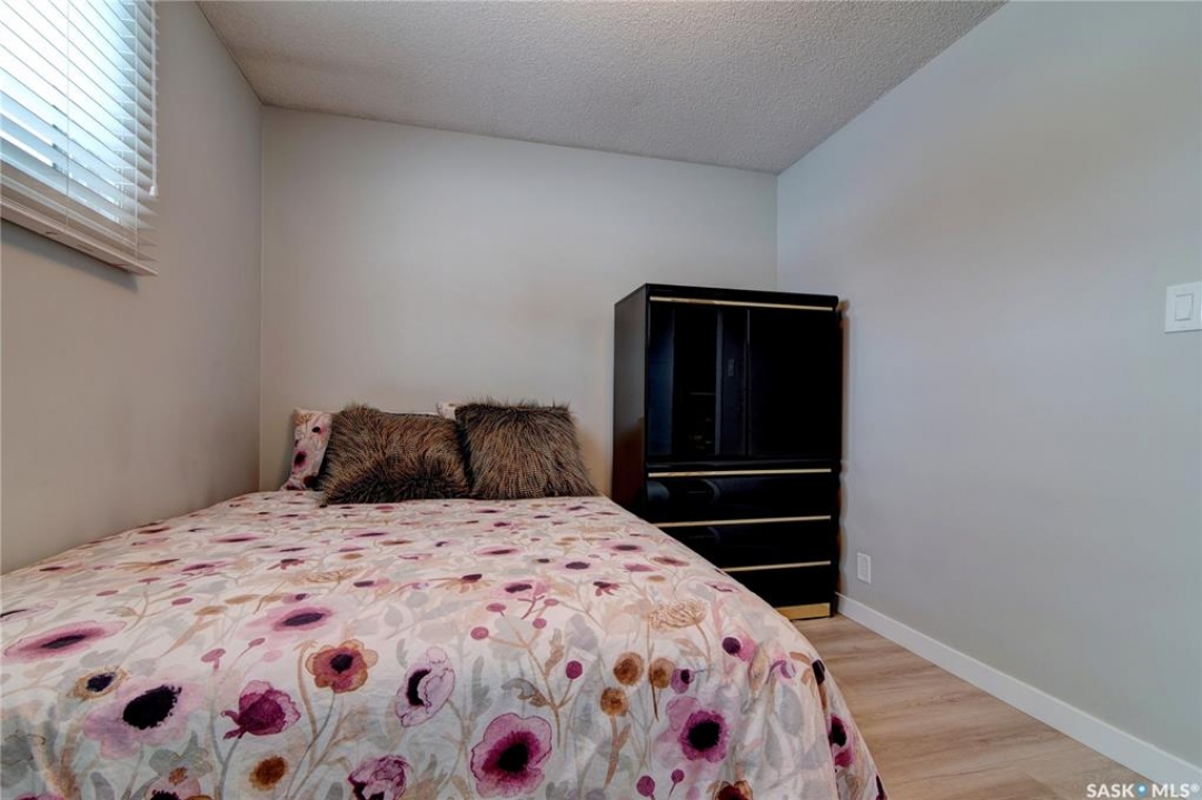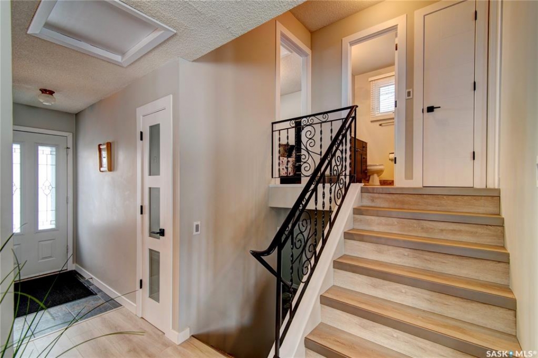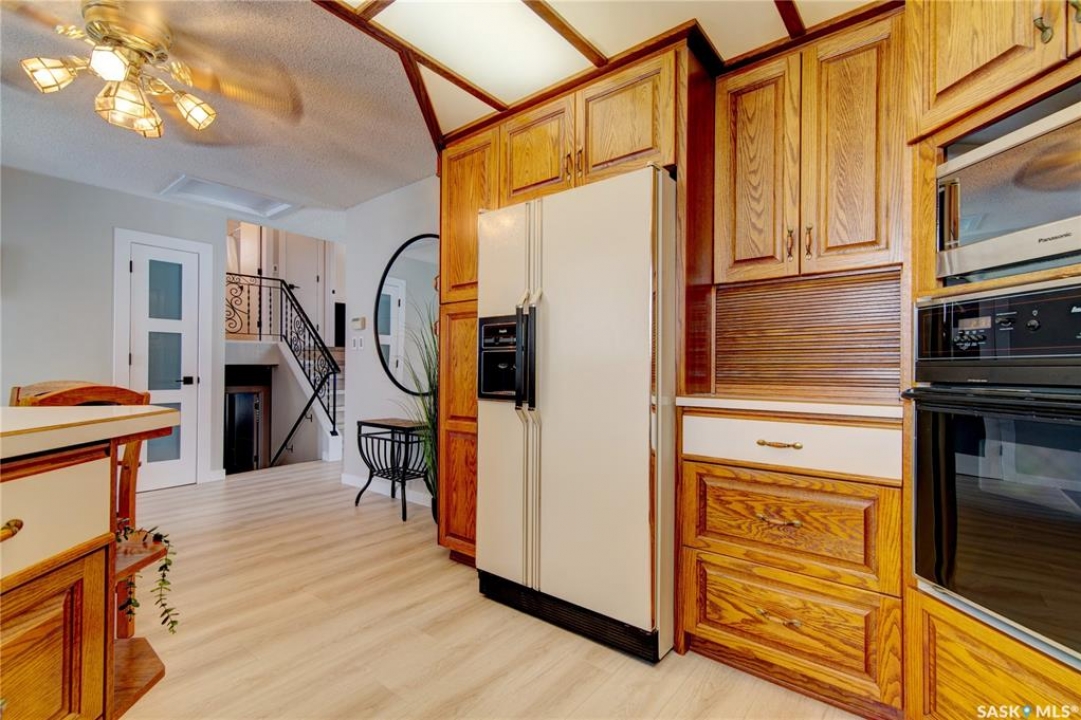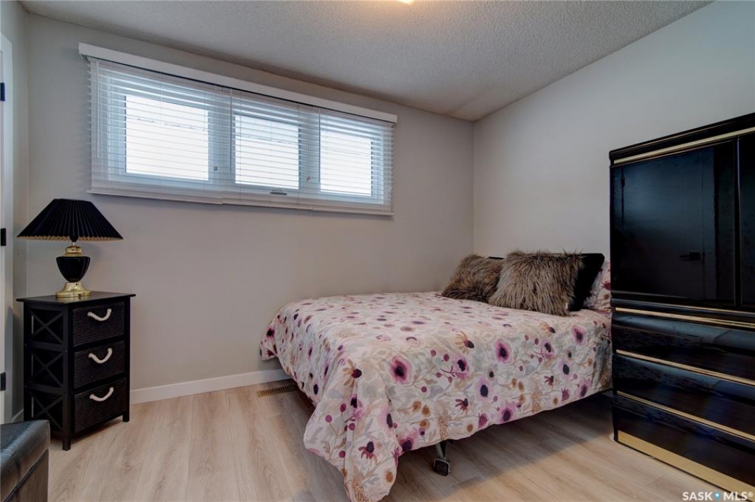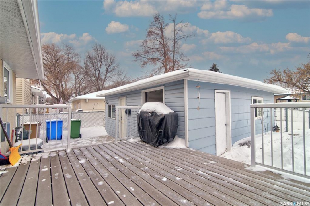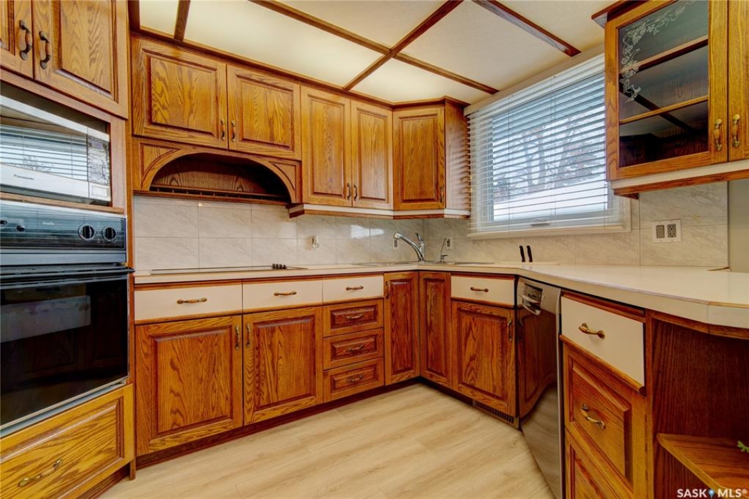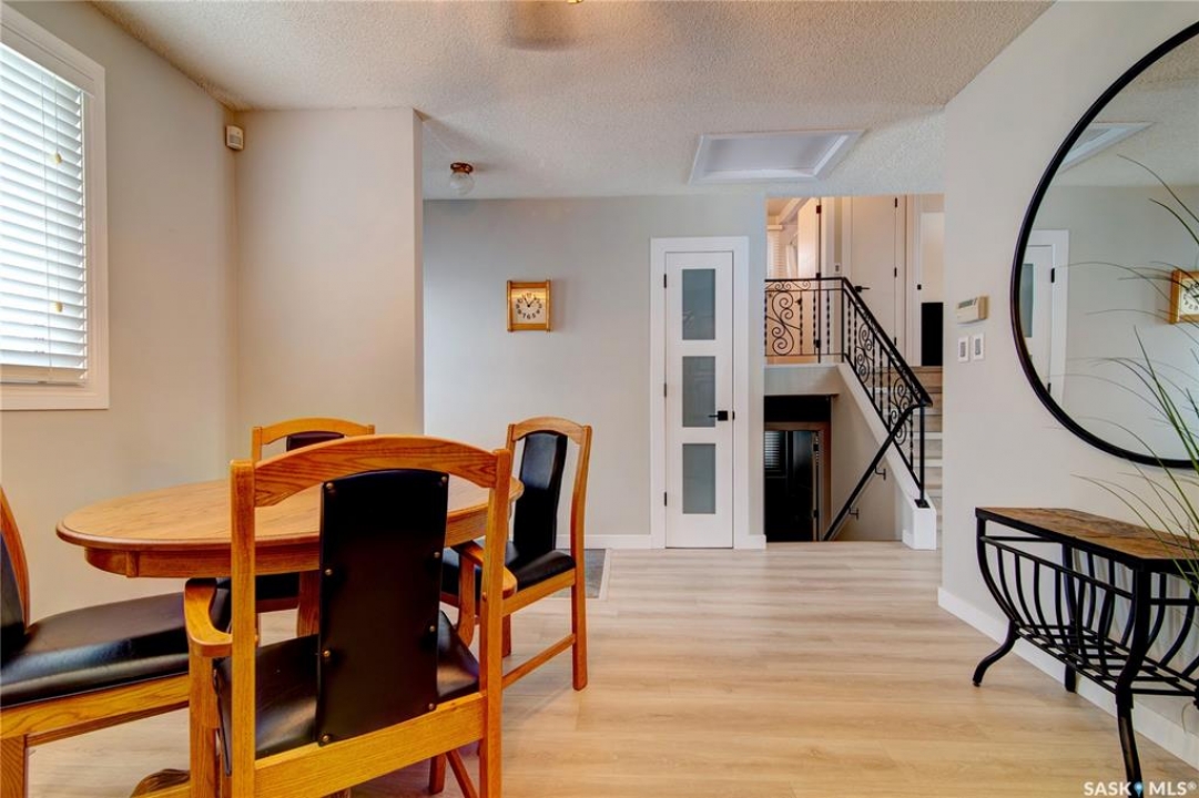 Don't miss the opportunity to own this well cared for 4 level split level with many upgrades/updates. The main floor offers spacious living room with a fireplace & laminate flooring, kitchen with an abundance of cabinets, fridge, stove, dishwasher, microwave, built-in oven (osmosis water system under the sink which is rented from Nimbus and can be removed or new owner can take over the contract) nice sized eating area and access to the maintenance free deck. On the second level there are two spacious bedrooms with laminate flooring and 4 piece bathroom. 3rd level offers two more bedrooms and 3 piece bathroom. There is a family room on the 4th level with a dry bar plus a hot tub room with exhaust fan (the hot tub needs new plumbing and the sellers have not used it for many years). Concrete crawl space, great for extra storage. Upgrades include: most flooring, baseboards & casings, interior doors, front and back doors, triple glazed windows. Part of the double garage was converted to office space and is insulated, drywalled, heated and has air conditioning. Another portion of the garage is used as a storage shed with a separate door. The original overhead door remains at the back of the garage. Could be converted back to a double garage. Great Walsh Acres location with close proximity to schools, greenspace, restaurants, shopping and all other north end amenities. Convenient access to the ring road and the Levan.