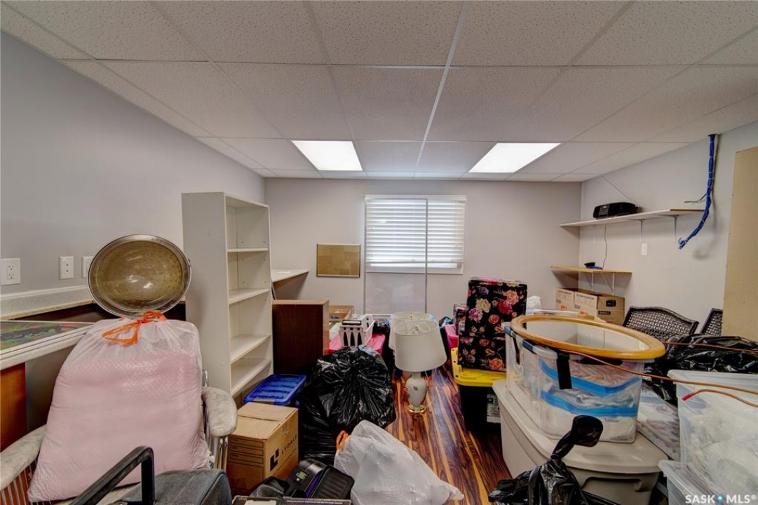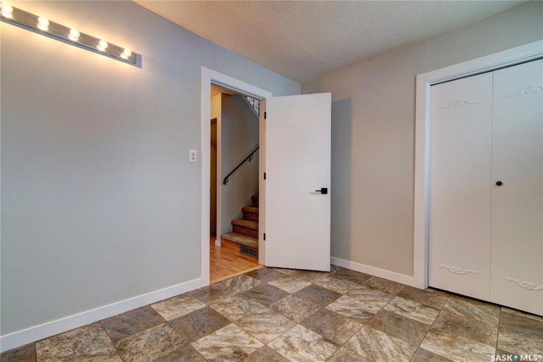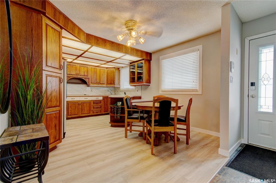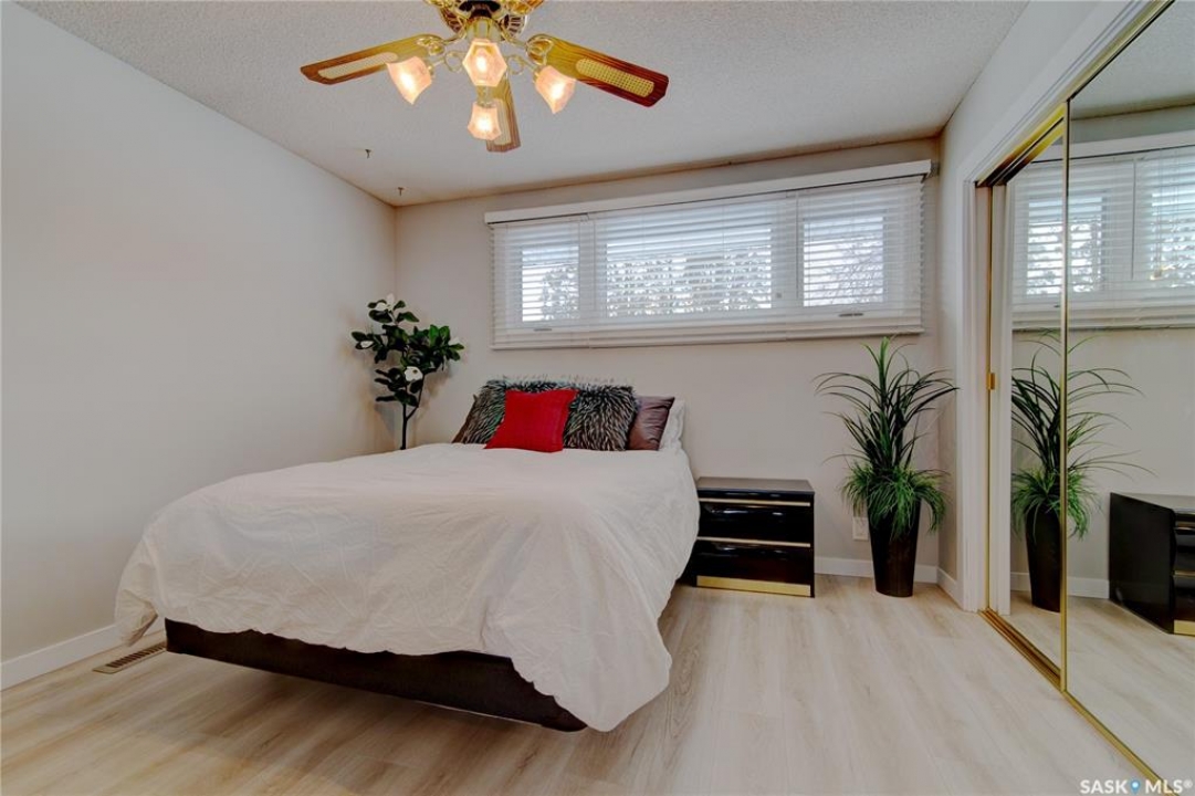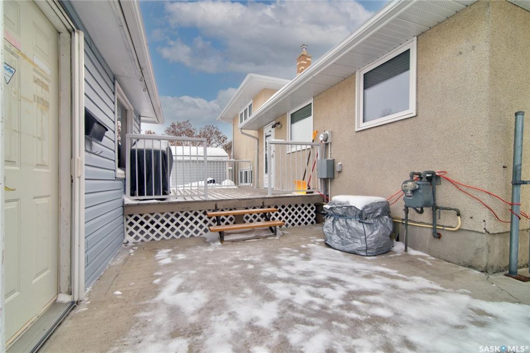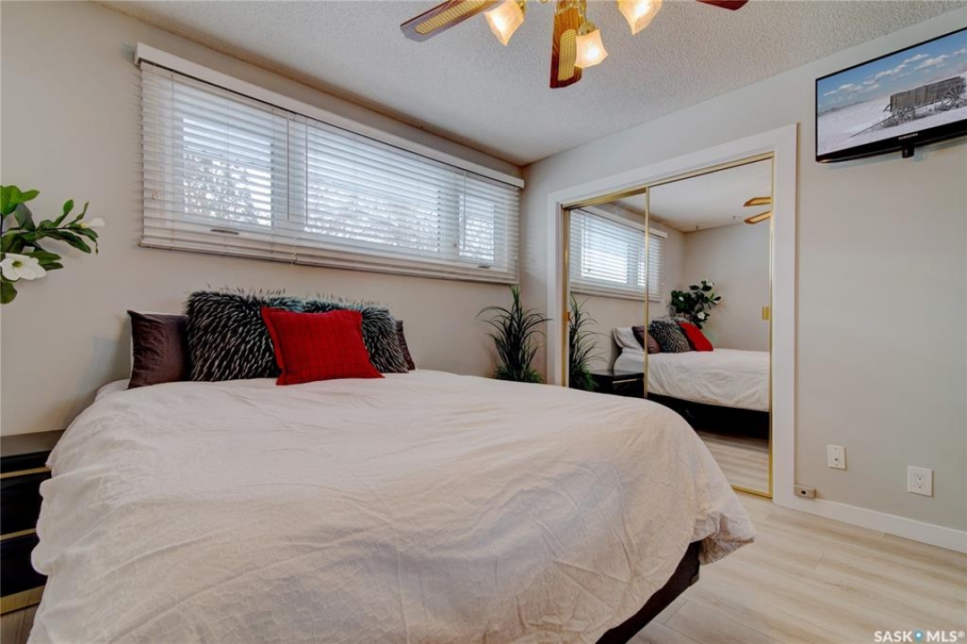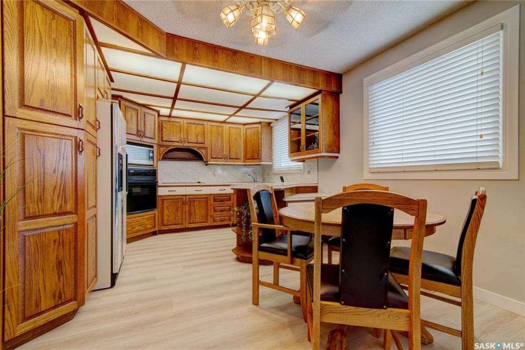 Don't miss the opportunity to own this well cared for 4 level split level with many upgrades/updates. The main floor offers spacious living room with a fireplace & laminate flooring, kitchen with an abundance of cabinets, fridge, stove, dishwasher, microwave, built-in oven (osmosis water system under the sink which is rented from Nimbus and can be removed or new owner can take over the contract) nice sized eating area and access to the maintenance free deck. On the second level there are two spacious bedrooms with laminate flooring and 4 piece bathroom. 3rd level offers two more bedrooms and 3 piece bathroom. There is a family room on the 4th level with a dry bar plus a hot tub room with exhaust fan (the hot tub needs new plumbing and the sellers have not used it for many years). Concrete crawl space, great for extra storage. Upgrades include: most flooring, baseboards & casings, interior doors, front and back doors, triple glazed windows. Part of the double garage was converted to office space and is insulated, drywalled, heated and has air conditioning. Another portion of the garage is used as a storage shed with a separate door. The original overhead door remains at the back of the garage. Could be converted back to a double garage. Great Walsh Acres location with close proximity to schools, greenspace, restaurants, shopping and all other north end amenities. Convenient access to the ring road and the Levan.