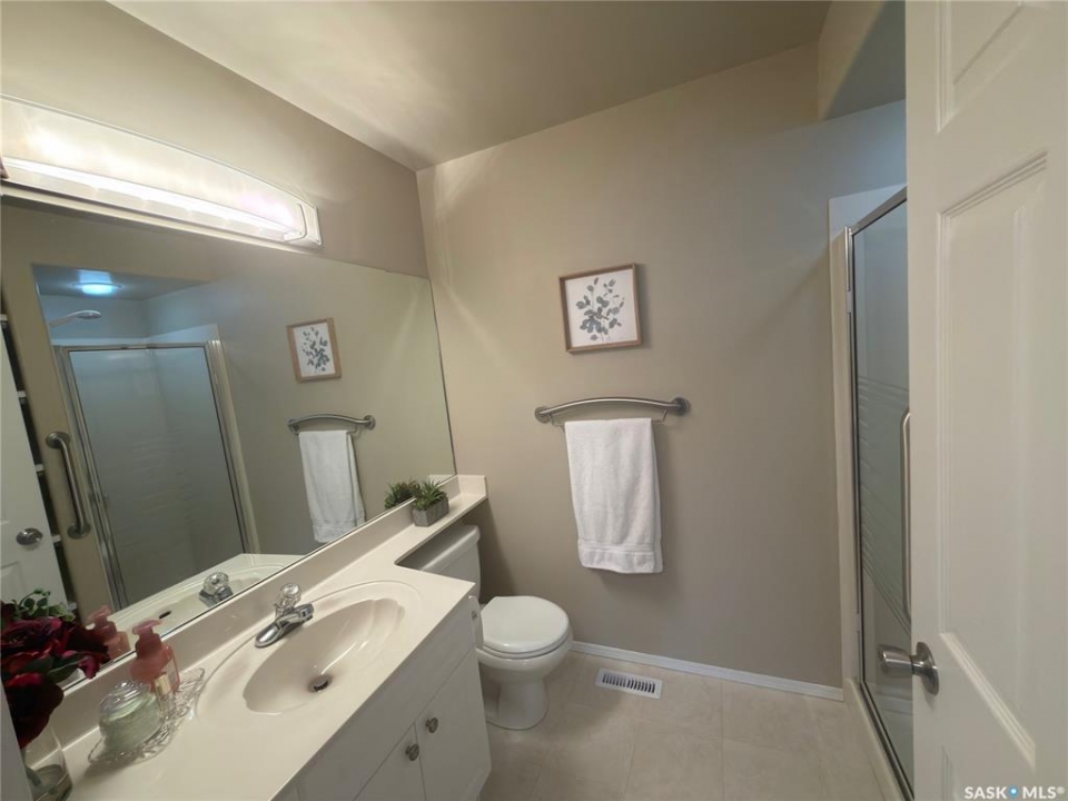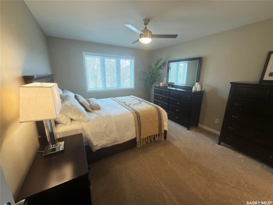 Welcome to ArborGlen Estates — Peaceful Living Backing Arbor Creek Park Unit 27 is the perfect place to begin your next chapter. Located in a gated community with minimal yard maintenance (handled by the HOA), this 1,198 sq ft bungalow offers comfort, quality, and convenience in the heart of Arbor Creek. Inside, you'll find a bright, open-concept layout with vinyl plank flooring flowing from the foyer into the spacious kitchen and dining areas. The kitchen features soft-close cabinetry and high-end stainless steel appliances — stove, fridge, built-in dishwasher, and microwave exhaust fan. A large pantry includes laundry hookups for those who prefer main floor laundry. The living room is filled with natural light thanks to multiple windows and garden doors that lead to a private deck backing green space. The deck is built with composite decking, acrylic glass panels, regal railing, and a natural gas BBQ hookup — perfect for relaxing or entertaining. The primary bedroom easily fits a king-sized bed and includes dual closets and a 3-piece ensuite with a spacious vanity. A second bedroom on the main floor is ideal for guests. From the front foyer, enjoy direct access to a 20' x 22' heated double attached garage, adding everyday convenience. Downstairs, the fully developed lower level offers a large family room, a den/office, a stylish 3-piece bath, ample storage, and a utility room with a newer furnace, hot water heater, and air exchanger. Additional Highlights: • Central air conditioning • Central vacuum • Quick access to Arbor Creek walking paths • Close to University Heights and Brighton amenities • Recent upgrades: shingles, furnace, water softener, flooring, garage overhead natural gas heater This one-owner home has been meticulously maintained and thoughtfully updated. A rare opportunity in ArborGlen Estates — turn-key ready for you to move in and enjoy.