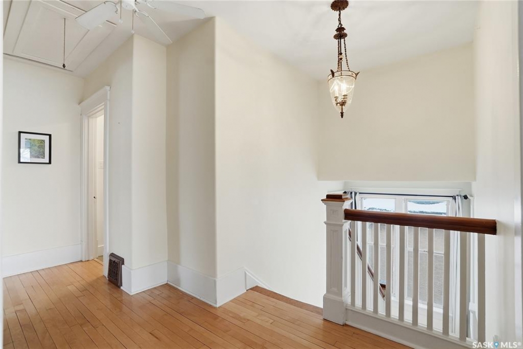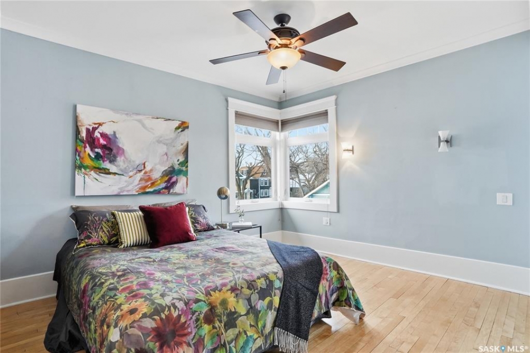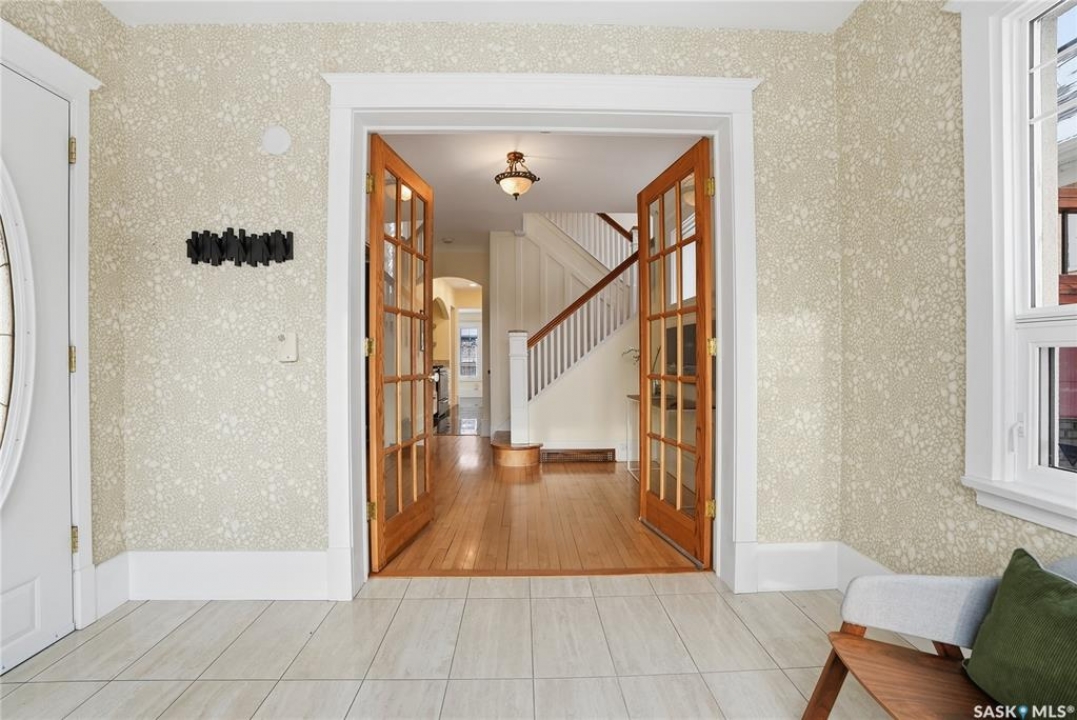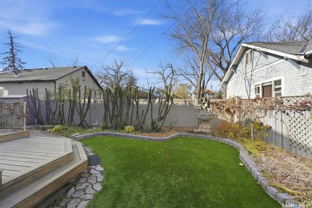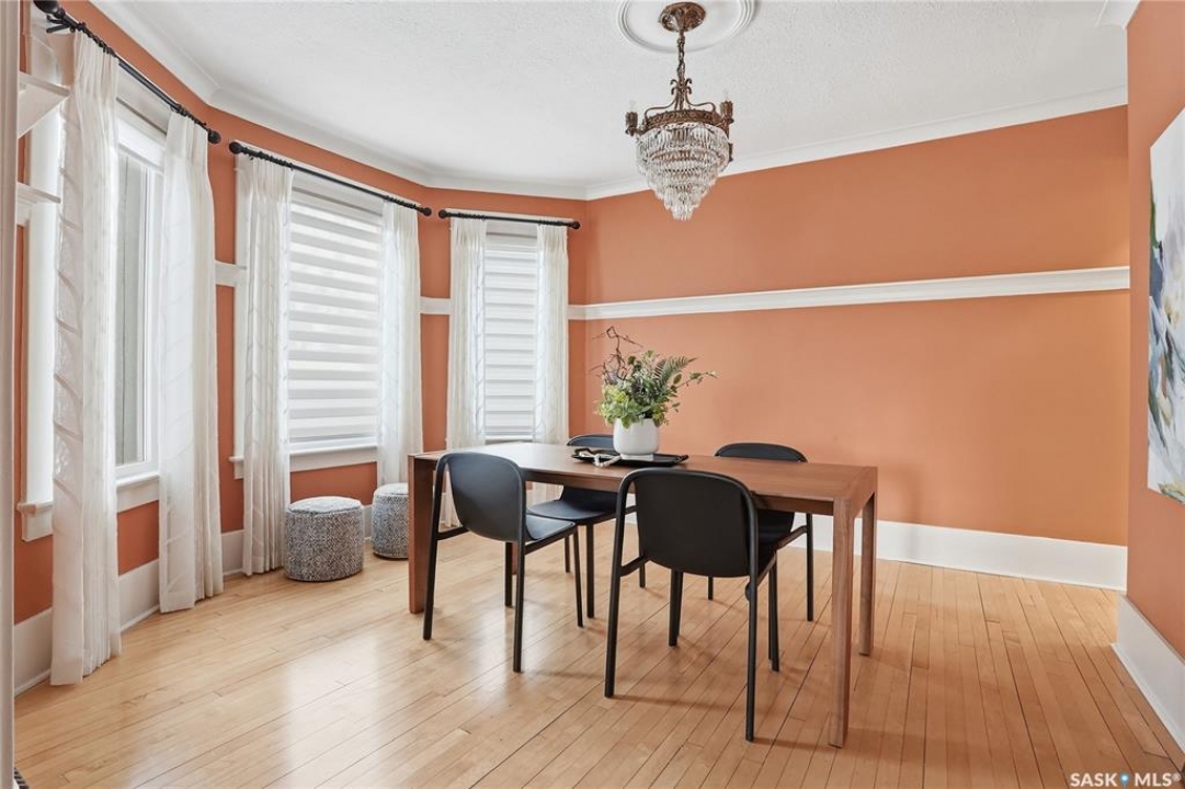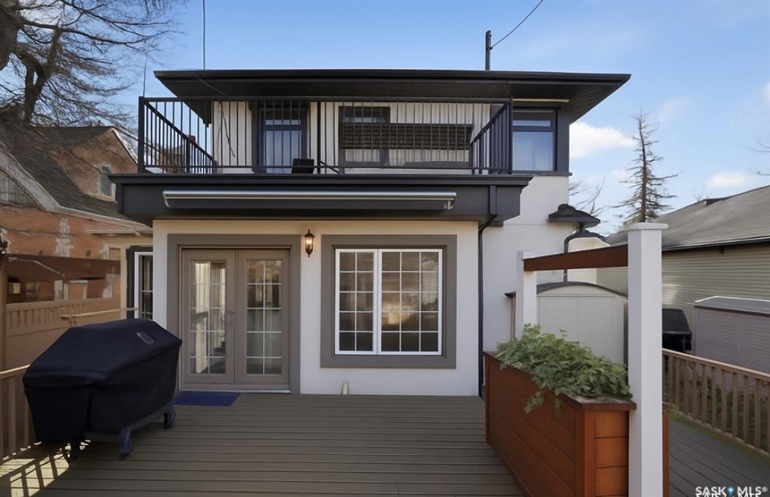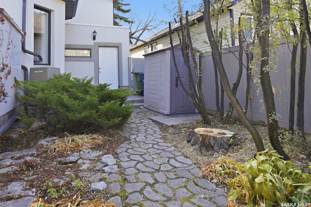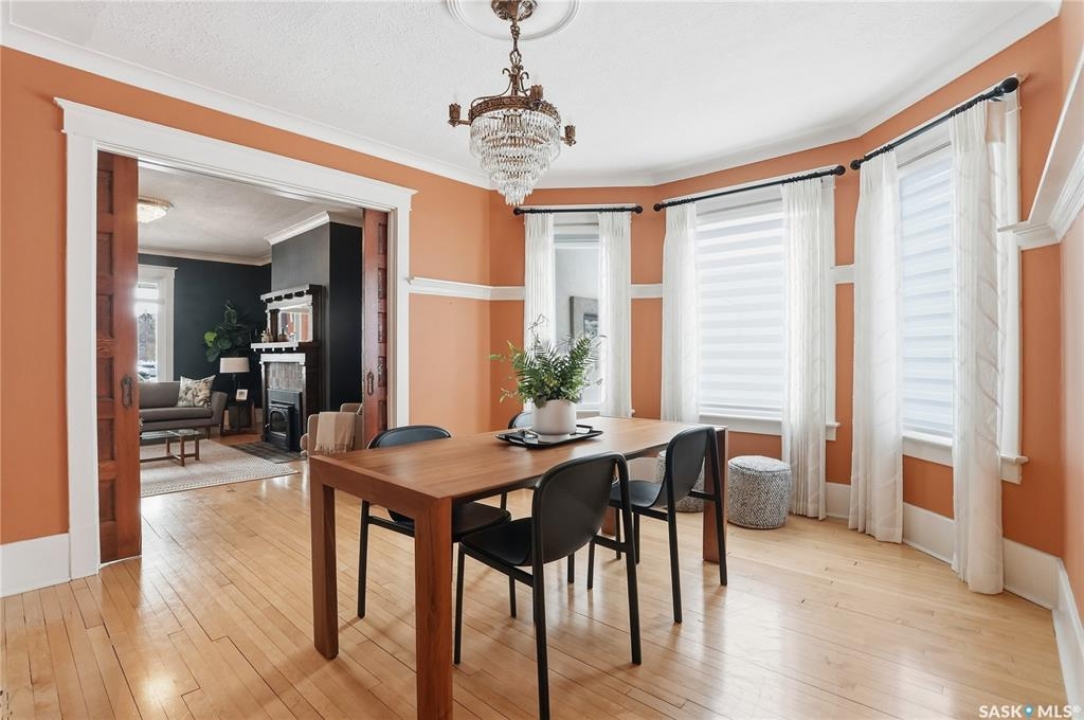 Don't miss this INCREDIBLE character home in one of Saskatoon's most desirable neighbourhoods! A stately family home with a fully developed basement with separate entry. This property exudes pride of ownership with charm and professional updates throughout. Enter into the main floor to find a welcoming sunroom and foyer, living room with wood burning fireplace, and a formal dining with a bay window. At the heart of the home is a chef's DREAM KITCHEN- spacious and beautifully appointed with quartz countertops, stainless appliances, and a sit-up eating area that opens onto a sitting room, overlooking a large deck and private yard. A 2-pc bath completes the main. Upstairs, you'll find 3 bedrooms: a primary suite with an ensuite and a charming private deck of the master. Two additional lrg bedrooms and a newly renovated 3-piece bathroom complete 2nd flr. Large windows flood every room with natural light, highlighting the significant character. Extensive renovations and upgrades have been meticulously completed recently, blending heritage with modern class. The unique dev basement offers a modern living room, lounge and 1 bed layout with a sep entrance, 4-pc bath, 2x laundry, kitchenette, and a family room w/ gas fireplace — ideal for additional cash flow. The oversized, heated att garage includes a large attic storage area above. The front yard is low maintenance with a stamped concrete driveway providing parking 3 vehicles. The private backyard will impress w/manicured grounds: a two-tiered deck, garden boxes, artificial turf, curbing, and climbing vines. In total, there are three decks, including a covered front deck and the private balcony off the master. Upgrades include: furnace, hot water heater, shingles, garage, decks, kitchen, two bathrooms, basement development, many new windows, updated exterior, and driveway — the list goes on! This gem is ideally situated within walking distance to the river, downtown, U of S, and all hospitals, the location is unbeatable!