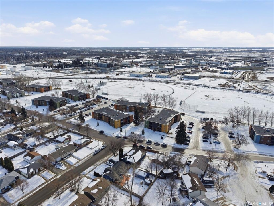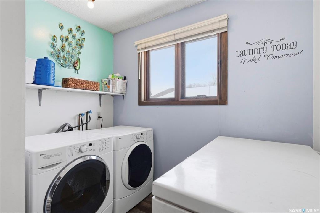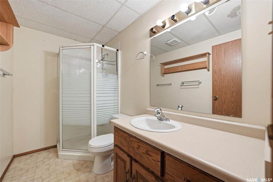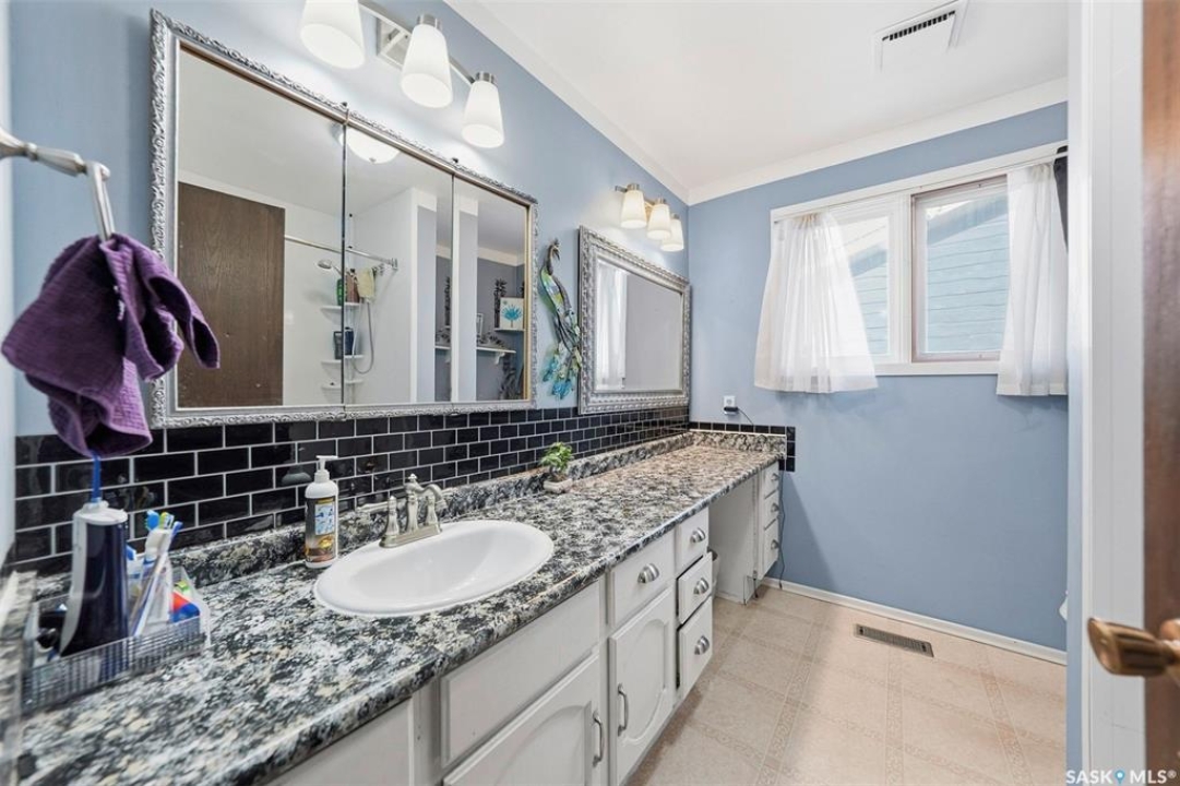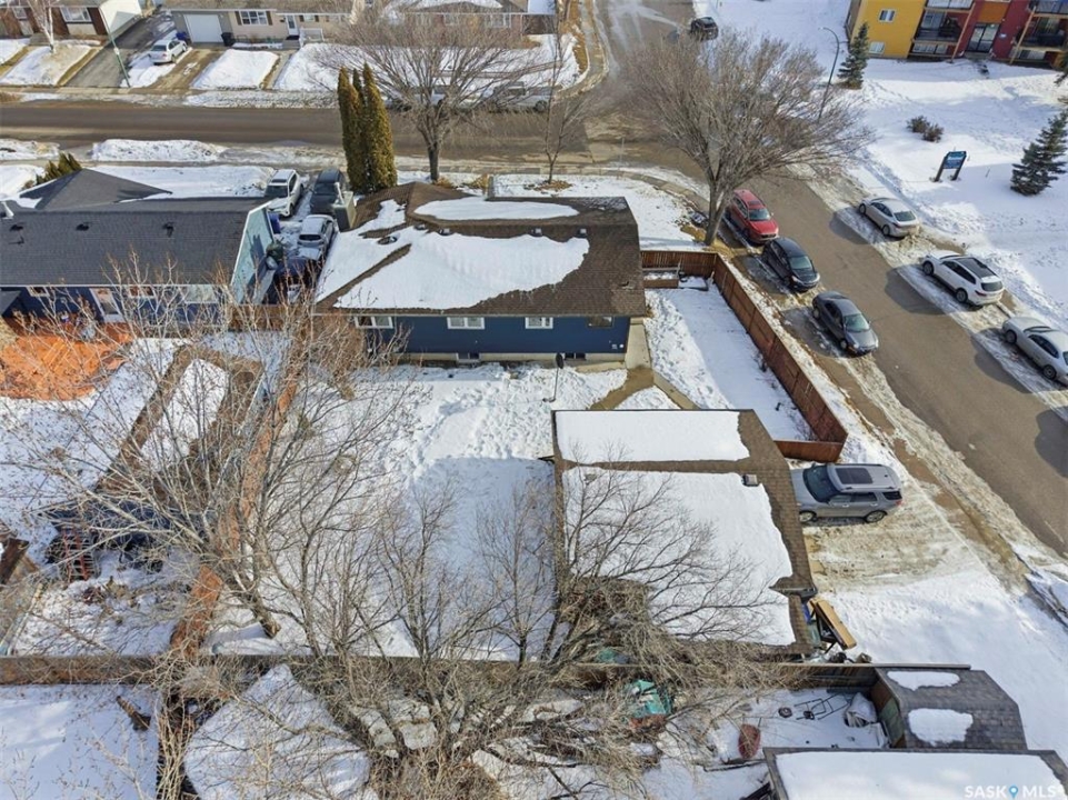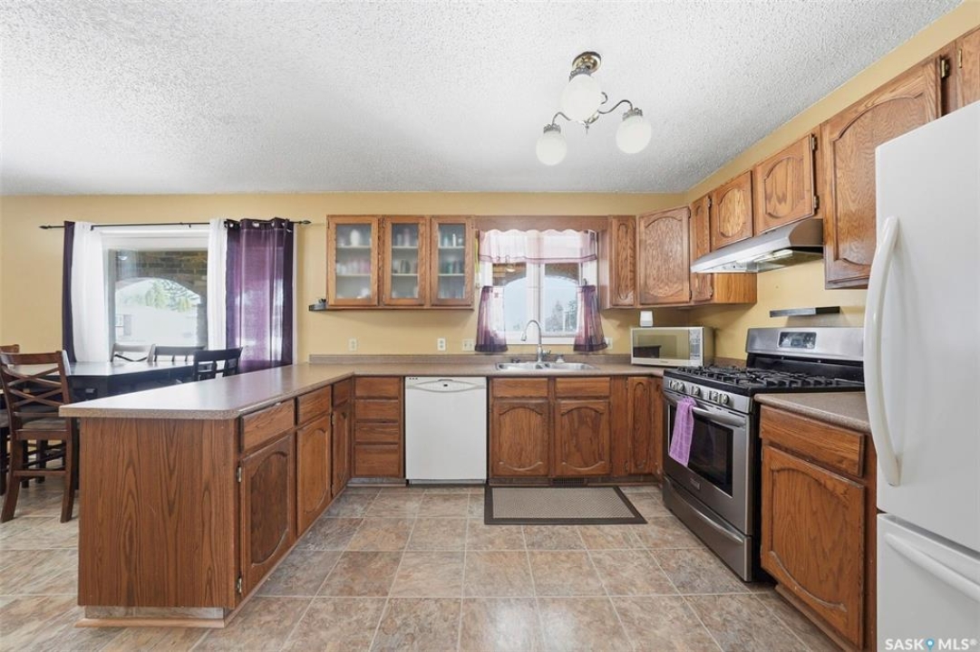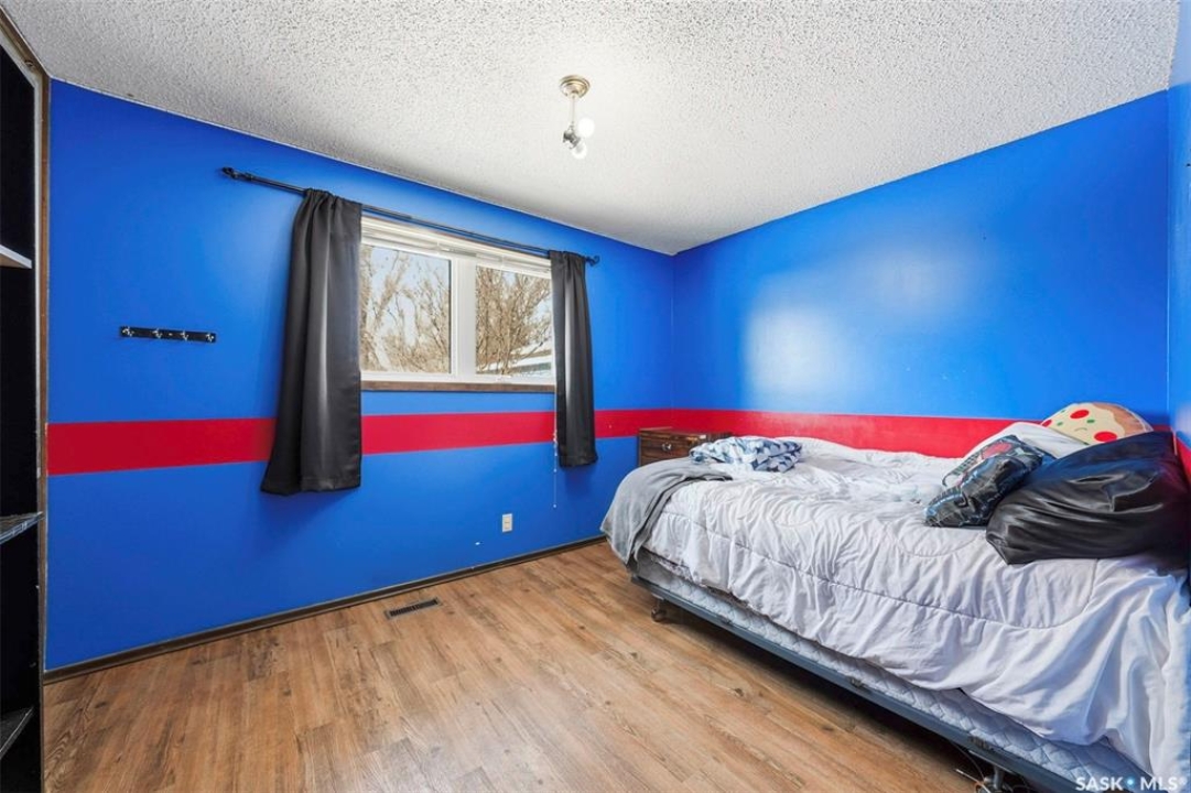 Located in Meadowgreen, Saskatoon, this 1,316 sq. ft. family home sits on a large corner lot and offers a functional layout with plenty of space throughout. The main floor features a sunken living room with vaulted ceilings, large windows for natural light, and a fireplace. There are three bedrooms on this level along with a four-piece bathroom. The kitchen offers good workspace, and the main floor also includes a separate laundry room and coat/storage area. There is ample storage throughout the home with multiple closets and well-planned spaces. The basement is spacious and includes a built-in bar area, additional built-in shelving, two bedrooms, and a large utility/storage room. A covered patio-style front porch provides a nice sitting area overlooking the lawn. The backyard offers additional space with fruit trees, lawn area, and an insulated two car detached garage. Situated in an established Saskatoon neighbourhood, this property offers solid space and layout with room to make it your own.