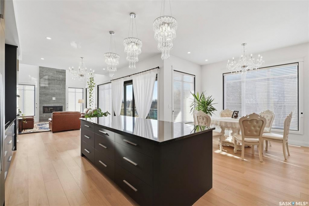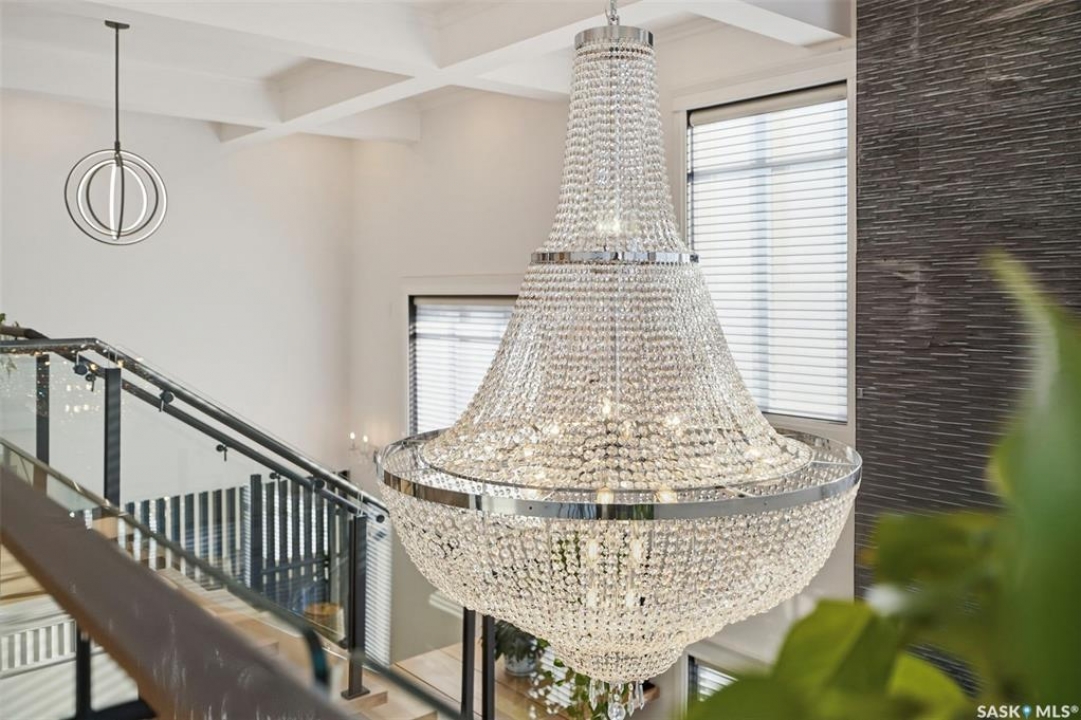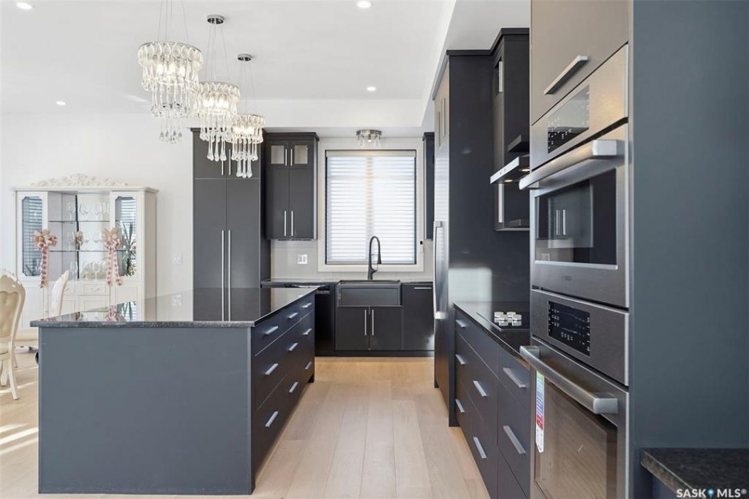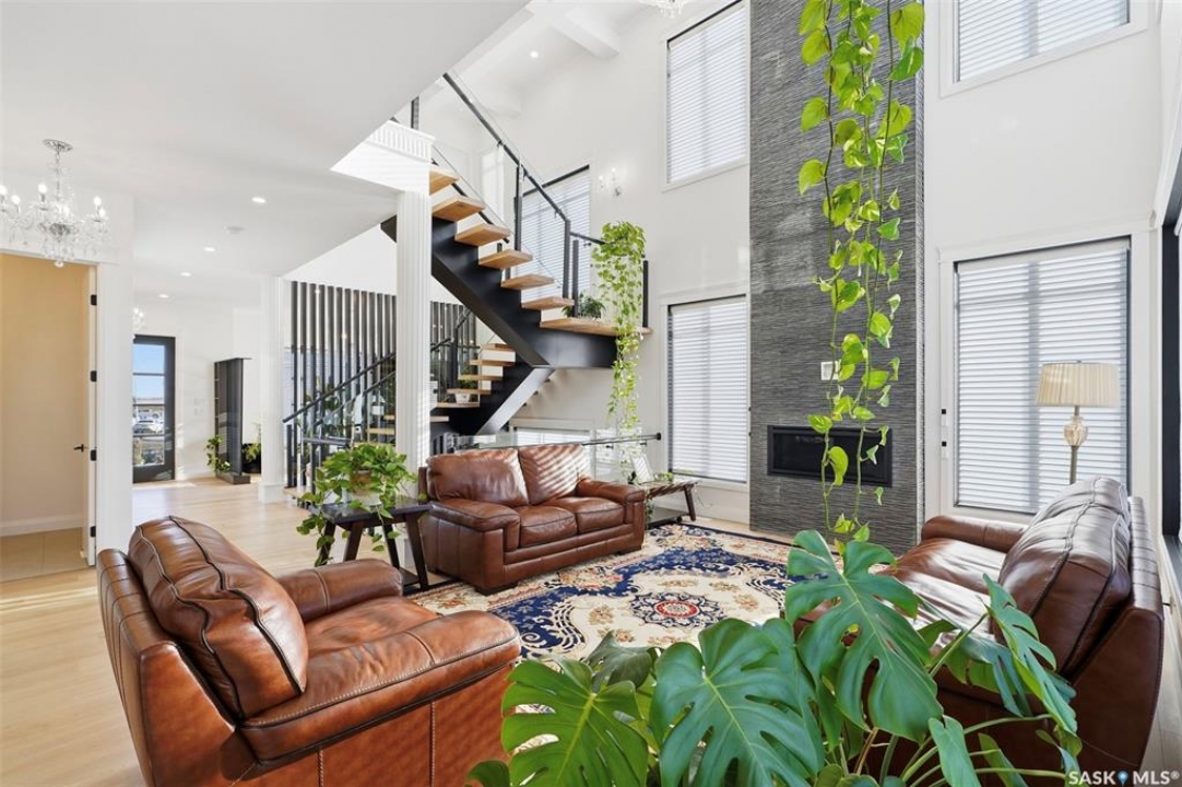 Welcome to 529 Greenbryre Bend—an exceptional walkout estate in prestigious Greenbryre Estates. Blending luxury, comfort, and modern design, this stunning home backs onto a private yard with breathtaking sunset views and abundant natural light. The main floor showcases 10-foot ceiling, expansive windows, and elegant open-concept layout. A spacious foyer leads to a den/office. The impressive living room features 22-foot soaring ceiling, gas fireplace, and panoramic views of the beautifully xeriscaped backyard. The chef's kitchen offers floor-to-ceiling custom cabinetry, marble countertops, tile backsplash, and premium built-in Bosch appliances, complemented by a fully equipped spice kitchen with gas stove. The generous dining area opens to a covered back deck. A custom wood floating staircase with solid oak treads and glass railing leads to the upper level, highlighted by 9-foot coffered ceilings. Three spacious bedrooms each include a walk-in closet and private ensuite. A bonus room and balcony add flexible living space. The primary suite is a private retreat with electric fireplace, expansive walk-in closet with granite island, and luxurious 5-piece ensuite featuring a soaking tub, dual sinks, and premium finishes. The walkout basement offers abundant natural light, a spacious family room, luxury wine cellar, two additional bedrooms, and a spa-inspired bathroom with sauna. Premium engineered flooring and in-floor heating enhance comfort. The low-maintenance backyard features a patio and artificial turf for year-round enjoyment. Additional highlights include marble tile at the entry, marble feature walls, in-floor heating in basement and garage, triple attached garage with 5–7 car driveway, motorized blinds, custom full-height tiled bathrooms, designer lighting with crystal chandeliers, and natural Golden Sesame granite with custom stone exterior coping. This extraordinary home showcases exceptional craftsmanship, thoughtful design, and luxury finishes throughout.