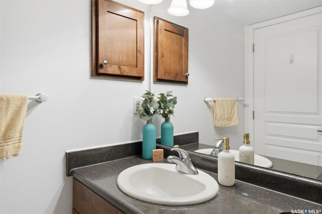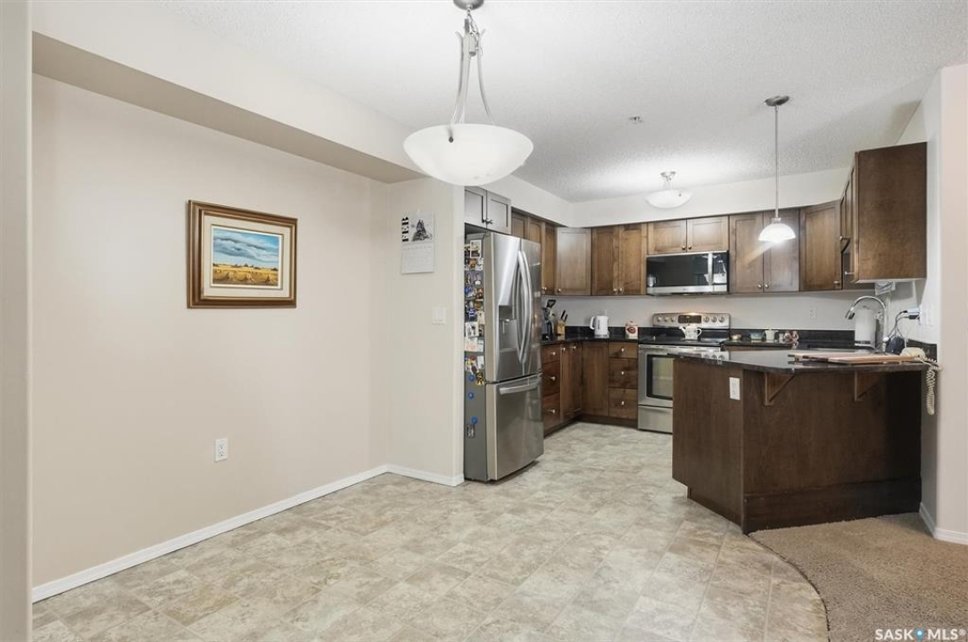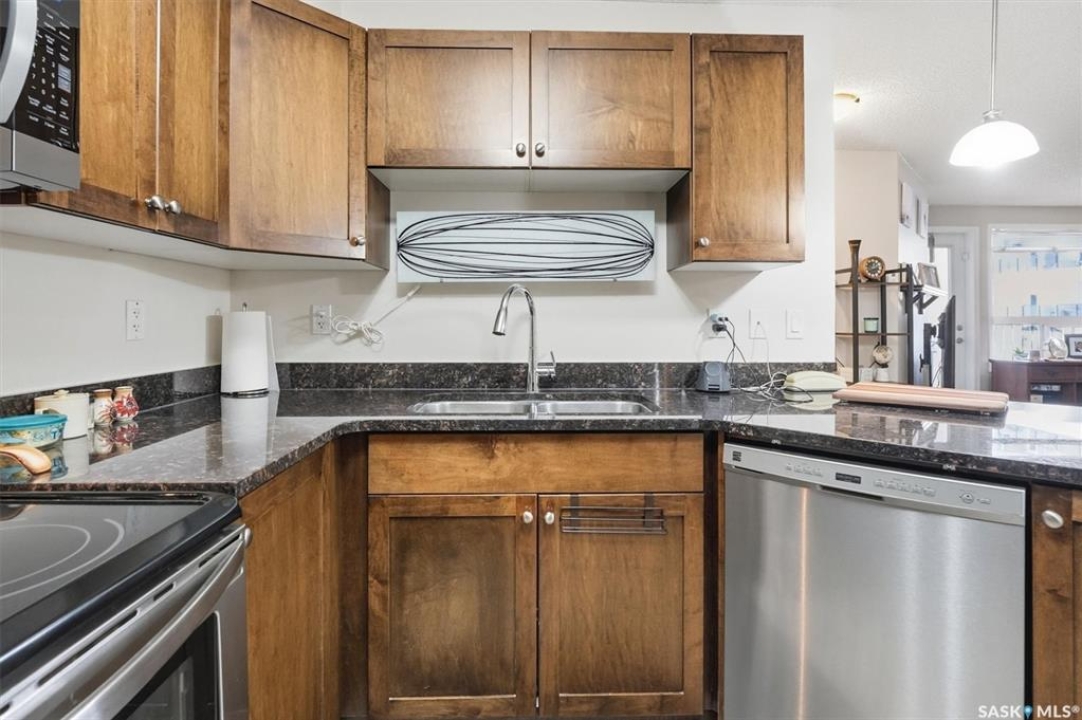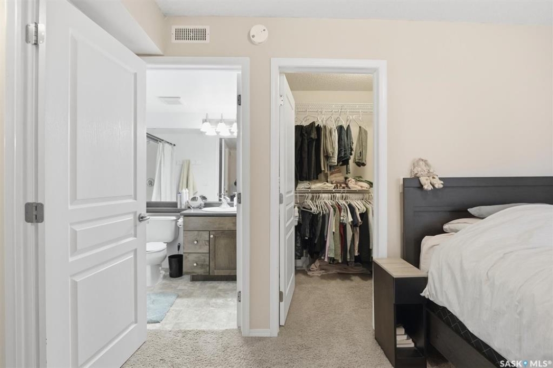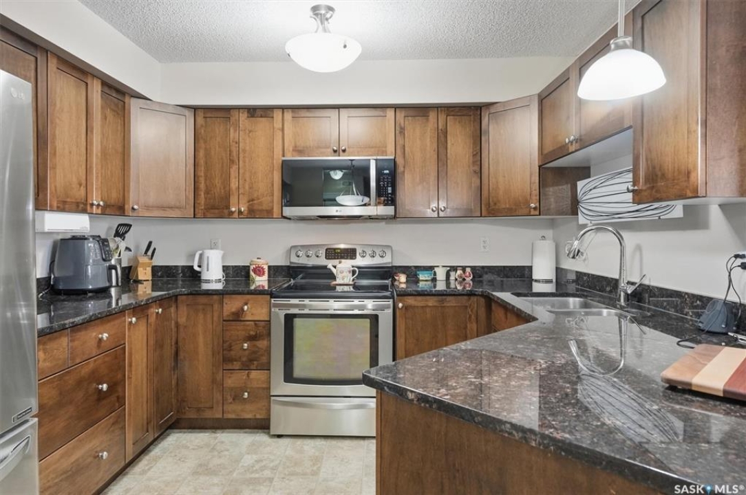 Welcome to this beautifully designed 979 sq. ft. condo located in the sought after Lakewood neighbourhood. This well appointed 2 bedroom, 2 bathroom unit offers a perfect blend of comfort, functionality, and modern convenience. The open concept layout features a stylish kitchen (microwave hood is new of Oct.2025) with granite countertops, ample cabinetry, and seamless flow into the dining and living areas. Ideal for both everyday living and entertaining. The bright and spacious primary bedroom includes a private ensuite, while the second bedroom is thoughtfully equipped with a Murphy bed and built in desk, making it an excellent option for guests, a home office, or flexible living space. Additional highlights include in suite laundry (new washer/dryer 2026), central air conditioning, and hot water in floor heating for year round comfort. The unit comes with two parking stalls, one underground and one above ground, offering both convenience and value. The well managed building boasts an impressive list of amenities, including a guest suite, exercise room, amenities room, two elevators, and ample guest parking. Ideally located close to shopping, walking paths, parks, and other Lakewood conveniences, this condo offers exceptional low maintenance living. An excellent opportunity for professionals, downsizers, or investors alike.